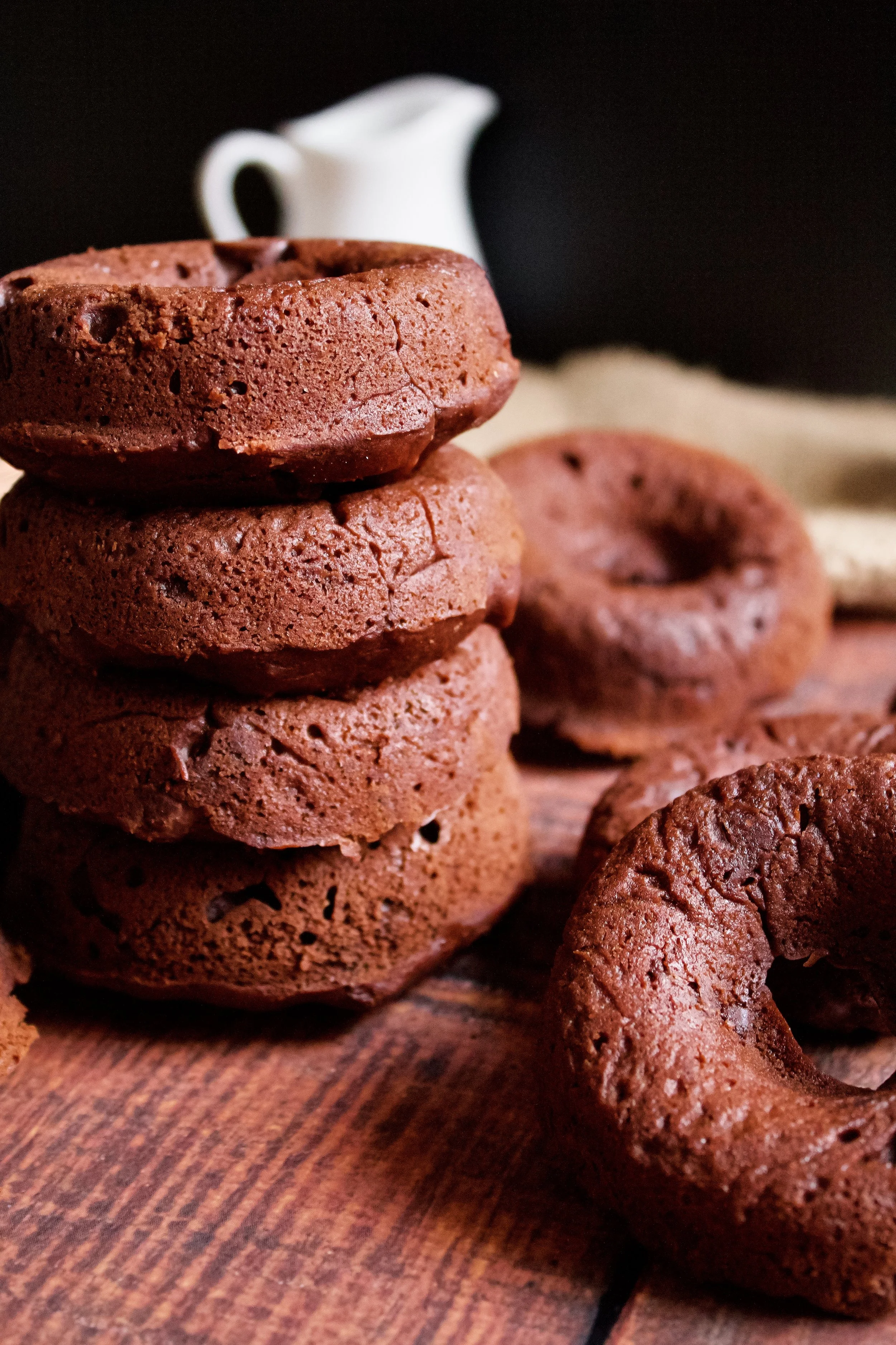 The pumpkin helps the donuts retain their moisture, but you can’t taste it with the cocoa powder! Luckily, pumpkin provides moisture yet also a bit of lift, which is aided by the melted butter and the use of baking powder. So, while the donuts are very moist, they’re also still super fluffy and tender. They’re right there in that sweet spot of dense enough to be a donut without tasting dry.