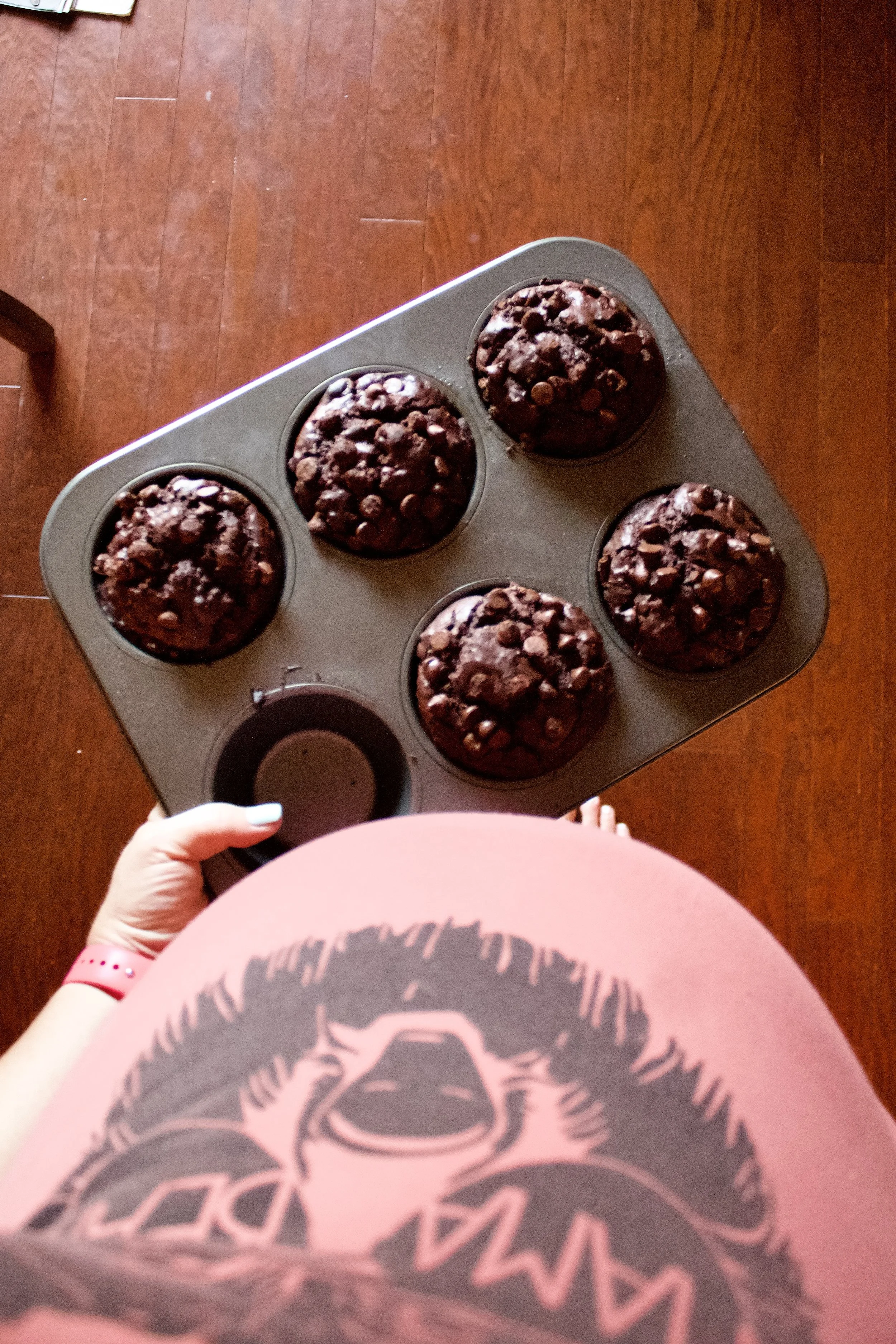 The advantage of this is that I now get to look back at how precious that time was and revel in getting to grow this miracle baby of mine. One day she was the size of a chocolate chip and the next she was the size of this entire tray of muffins stacked up. Now she’s bigger than TWO of these whole pans together!