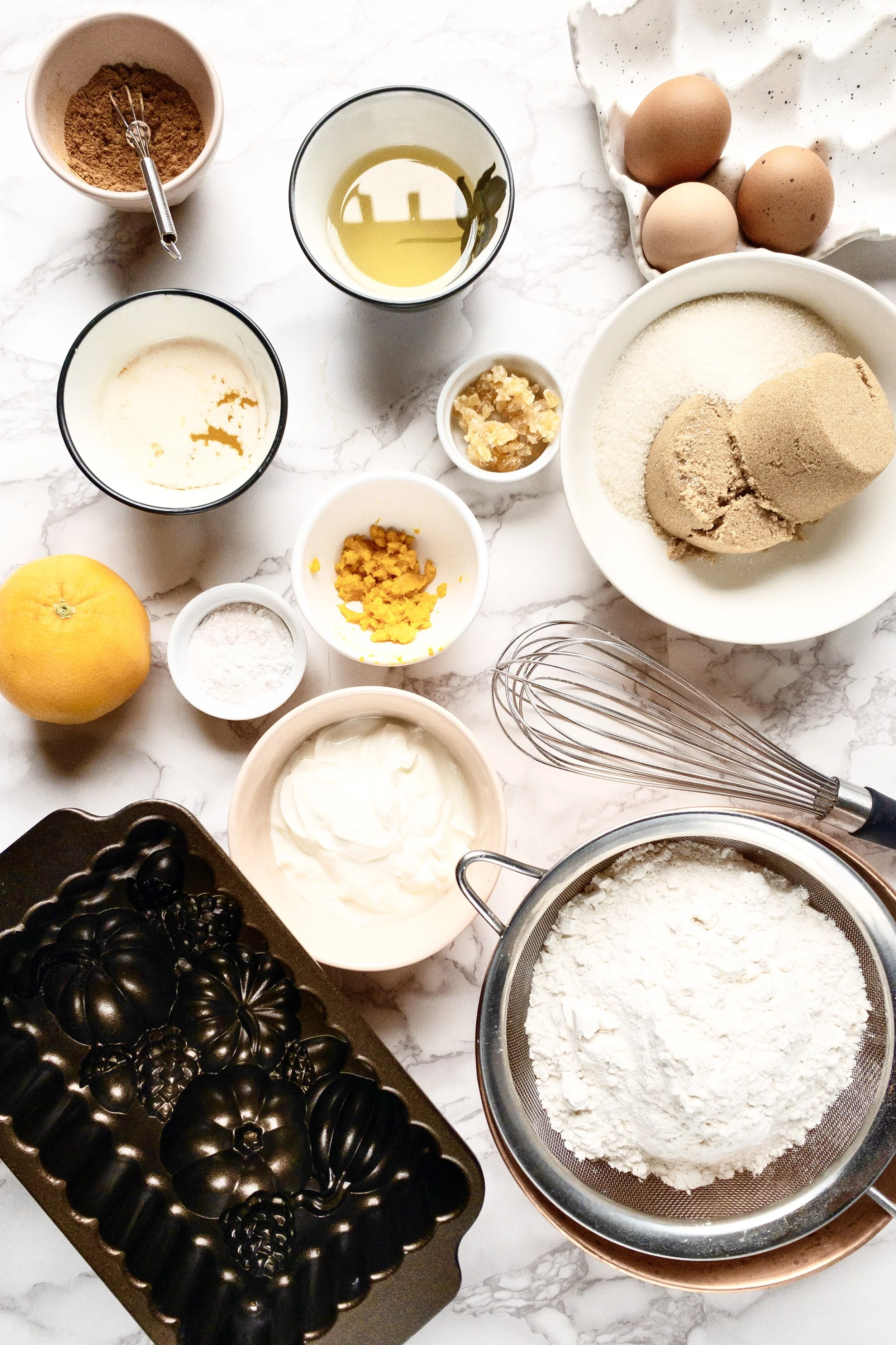 - Sift the flour, baking powder, salt, and spices together. Whisk in both sugars and the orange zest, until the zest is fragrant. Set aside.