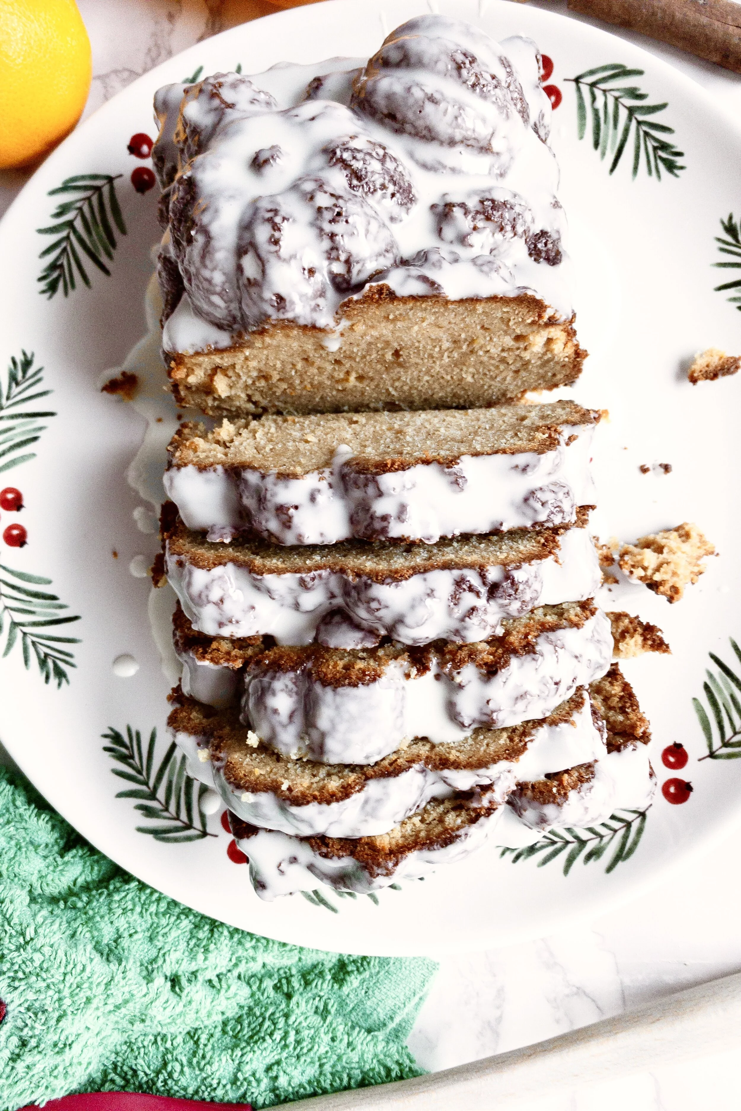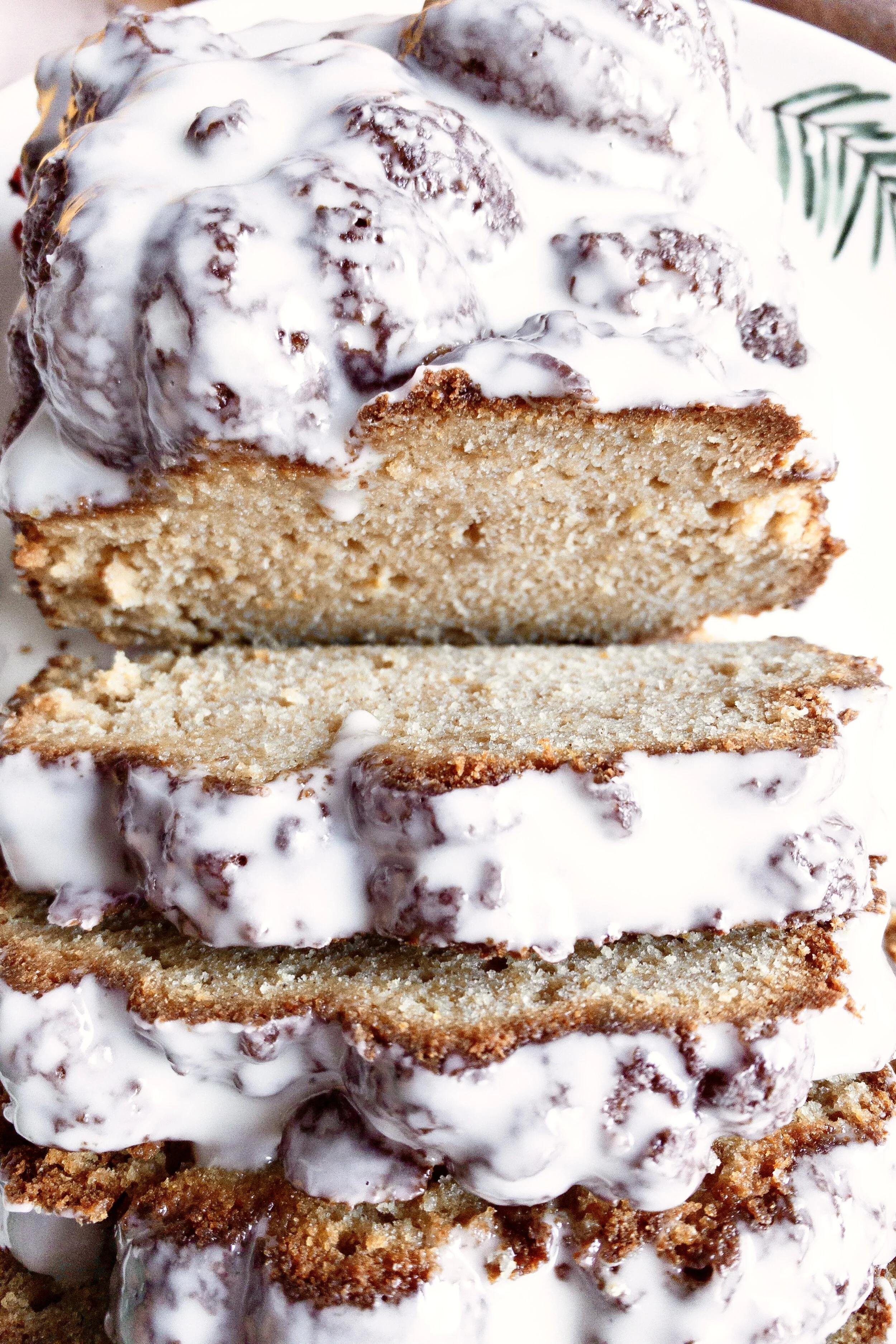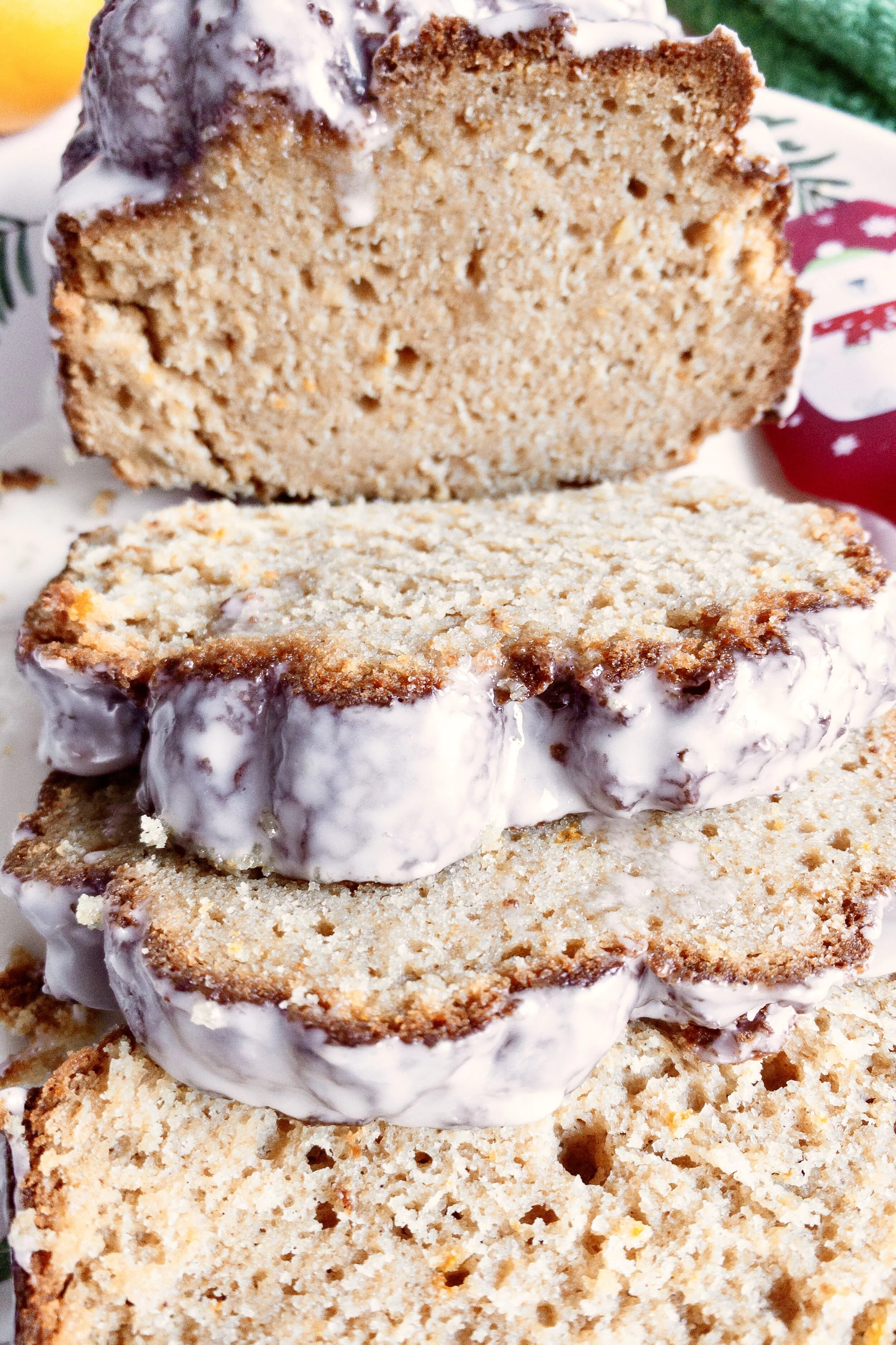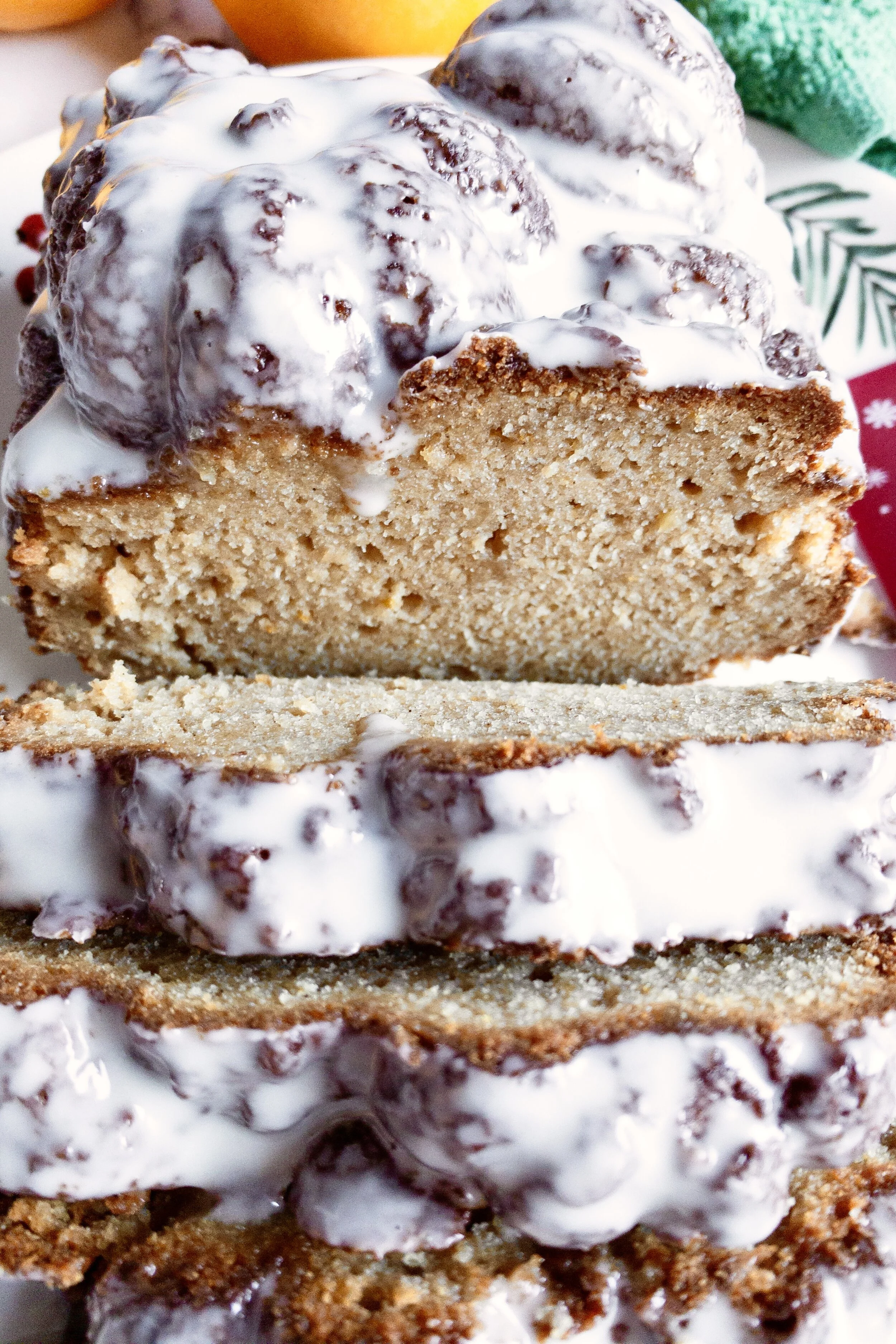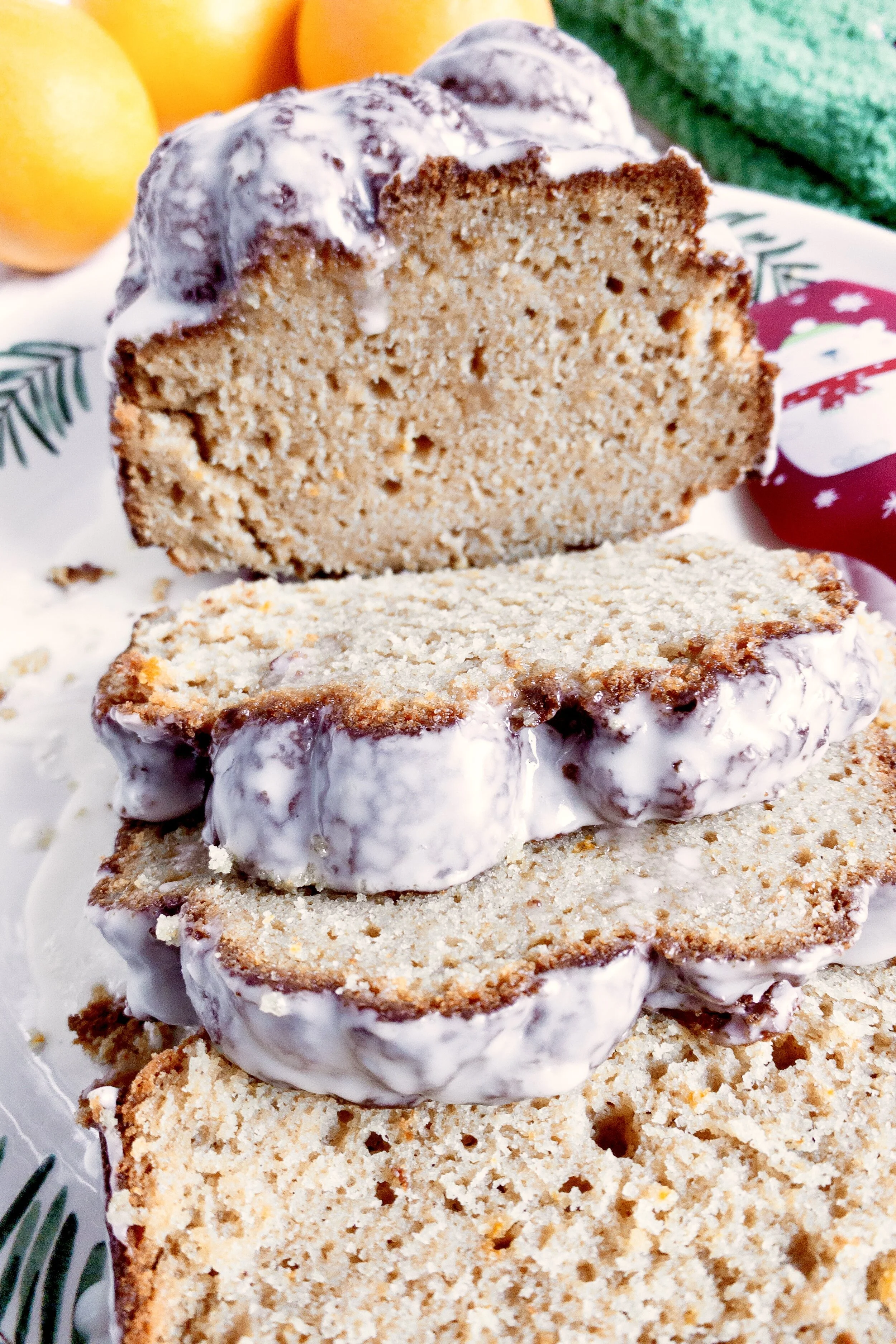 - While the loaf cools, make the glaze by whisking the powdered sugar and orange juice until smooth. You can adjust the ratios until you’re happy with the consistency. I wanted a thicker glaze, which you can see in the above photos. A thinner glaze can be applied in layers as well, if desired. Pour over cooled (or slightly still warm) loaf, either in the pan or on a place or cooling rack. Slice and serve.