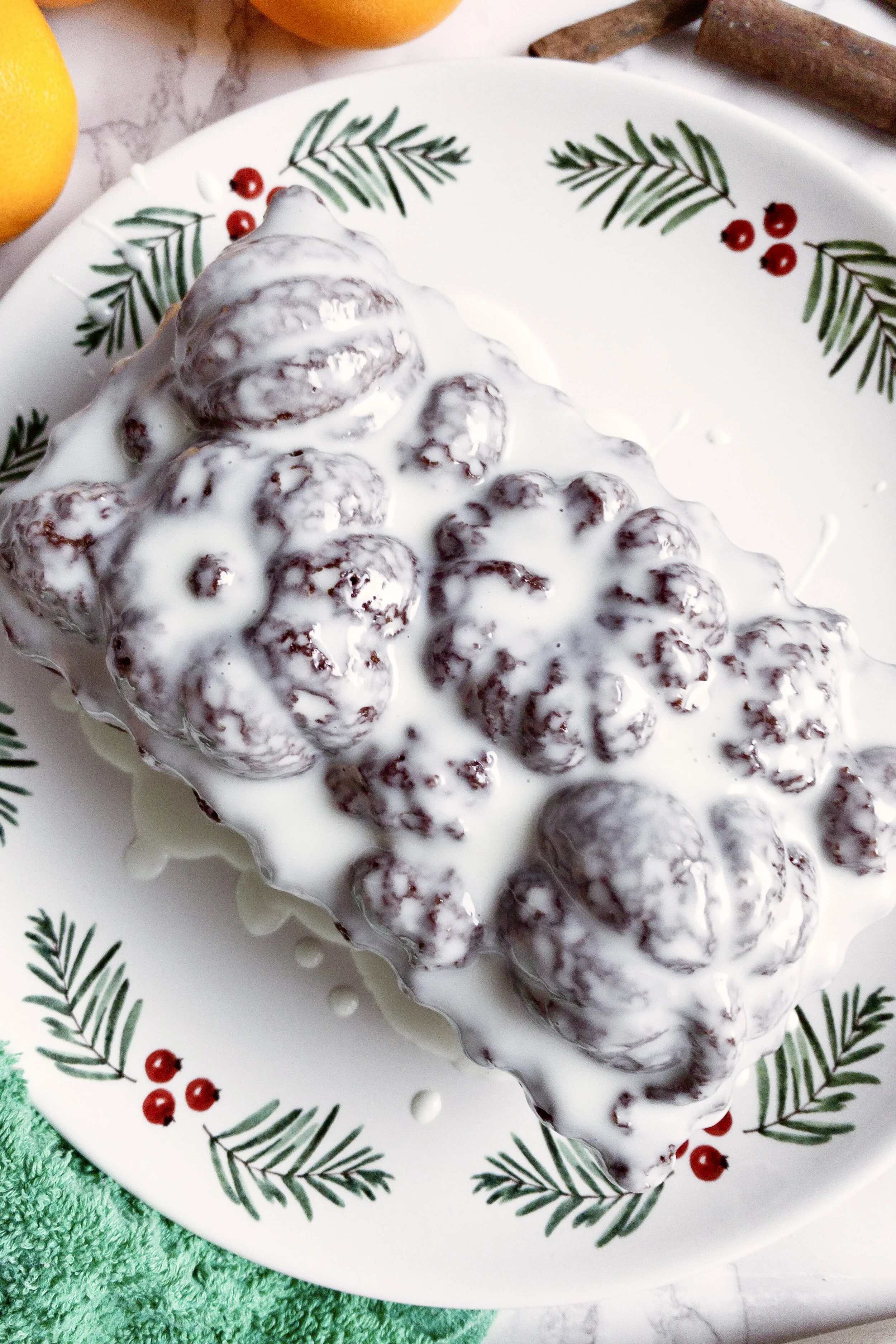 Tender loaf cake with a balance of orange and spice, complemented by candied ginger and an orange glaze. This is the perfect winter coffee treat!