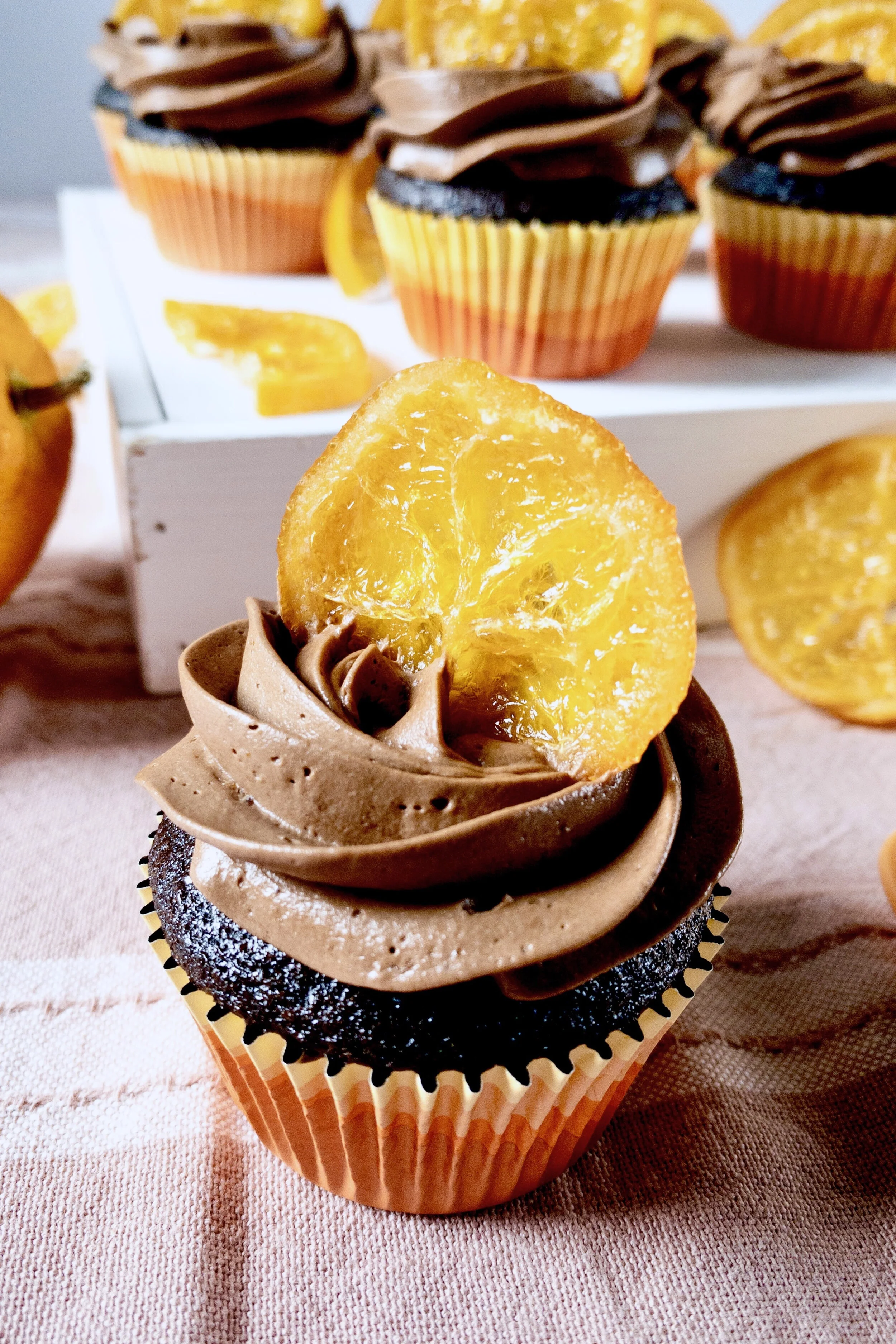 I used homegrown oranges that had been given to me a few weeks prior. While I’d kept them in the fridge, they still had become somewhat soft (though they were still perfectly safe to eat). This made it so hard to slice them! The actual fruit part will shrivel up during simmering, which may be fine depending on your plan for these. You can dice the peel if that’s all that’s left and use it in or on things like this orange spice loaf cake. I wanted them to go on top of cupcakes, so I had no use for diced candied oranges. So…learn from my mistakes and use fresh oranges!