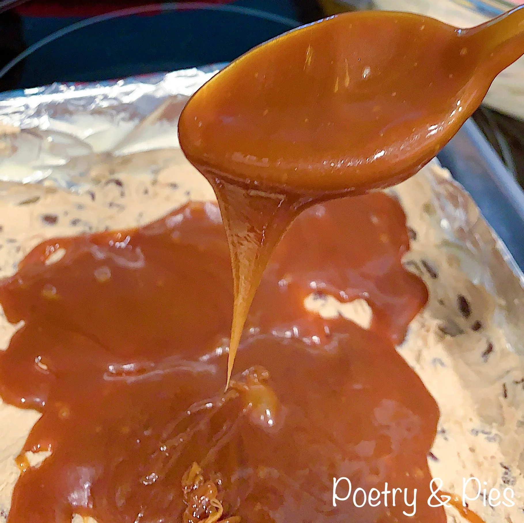 Anyway, turns out jarred caramel sauce reacts VERY differently when baked than sauces made from condensed milk and soft caramels. There’s a whole science of cooking temperatures and viscosity and such, but basically my experiment did not go as planned.