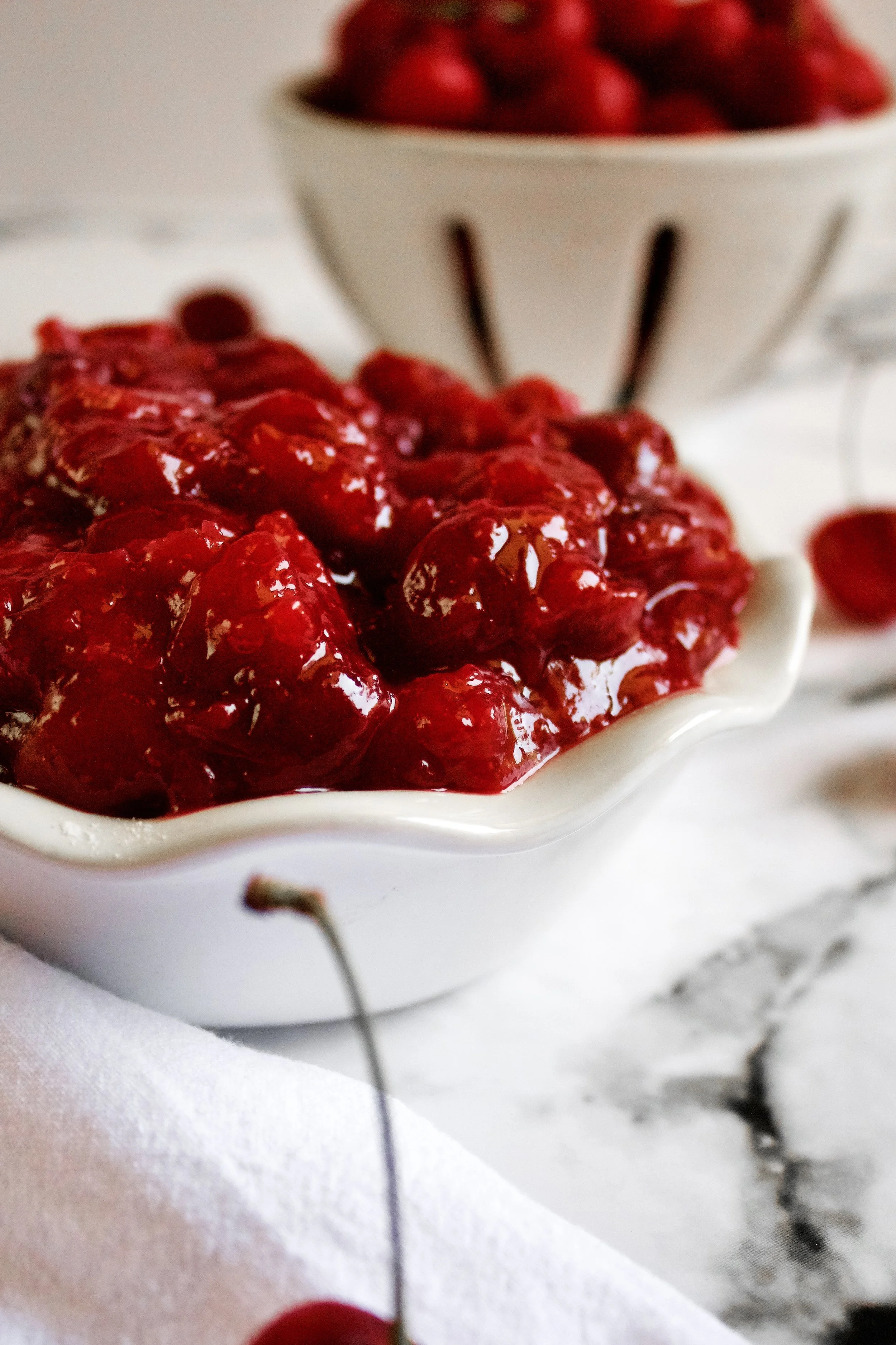 Perfectly tart and sweet cherry pie filling to use up those late-summer cherries. This filling is luscious, packed with cherries, and lets that natural flavor shine. Use this in a pie, Black Forest cake or trifle. Or, store it for later so none of those delicious, freshly picked cherries go to waste!