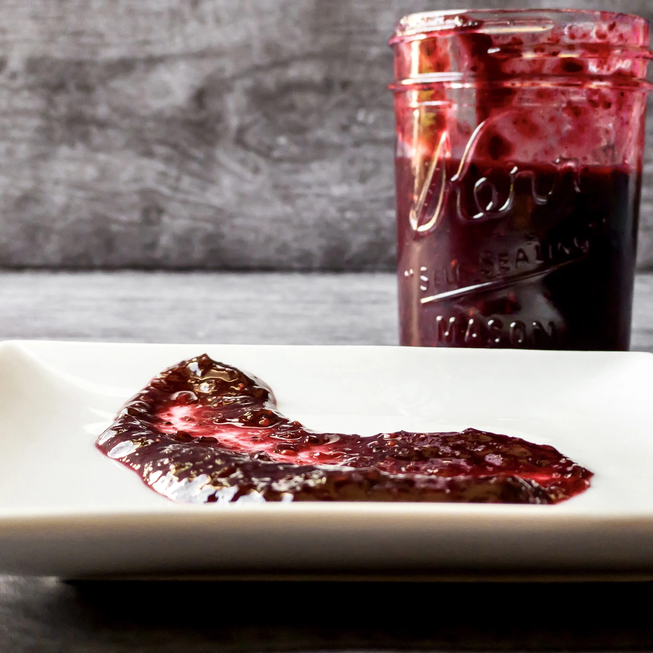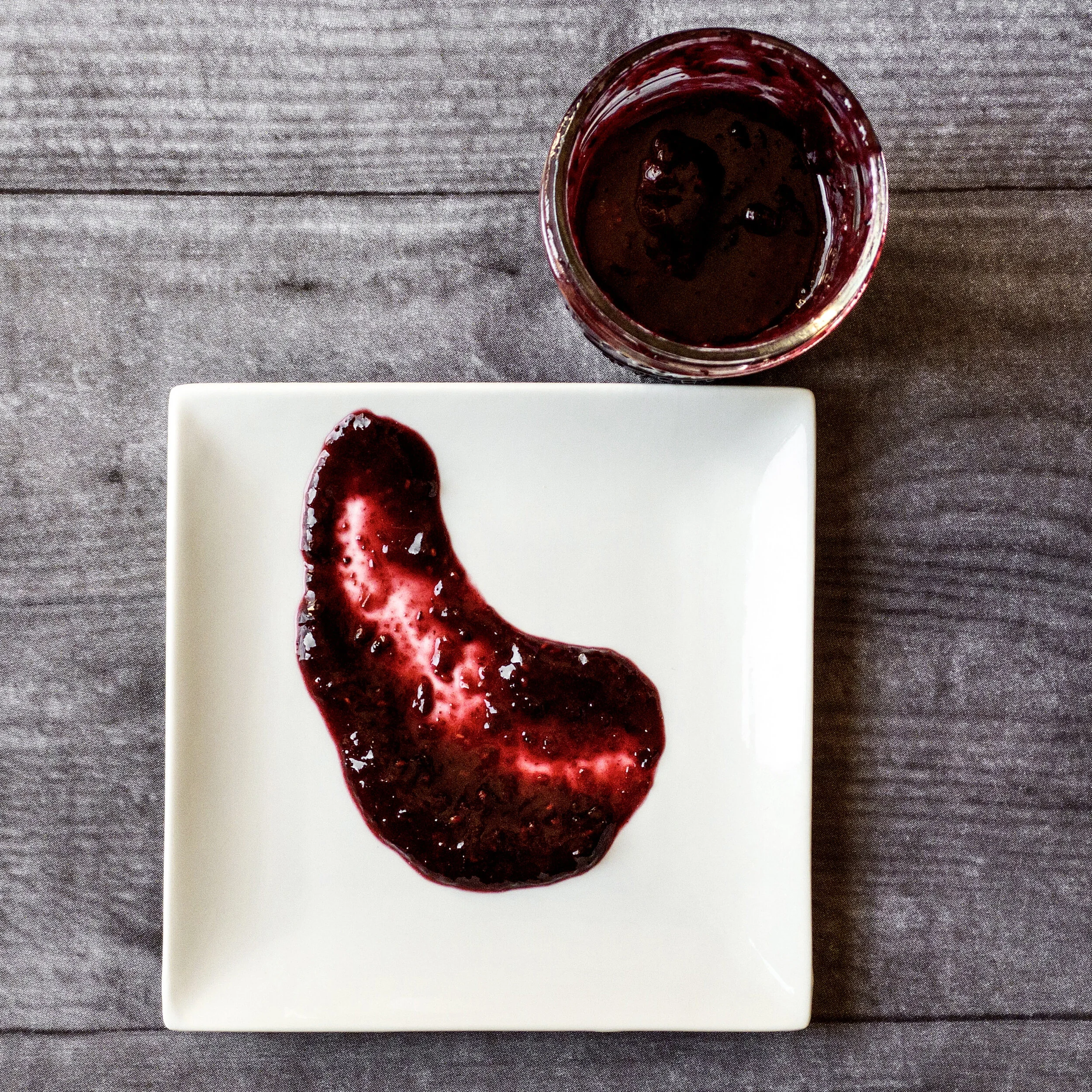 I did opt for a thicker consistency, but you can amend this by a shorter cooking time, adding more liquid, or straining the seeds. Tbh, I was mostly going for what would look cute, and that teeny little 2oz. measuring cup is just to die for. The types of berries I used also made a thicker sauce, mostly because I used blueberries, which don’t break down as much as other berries.