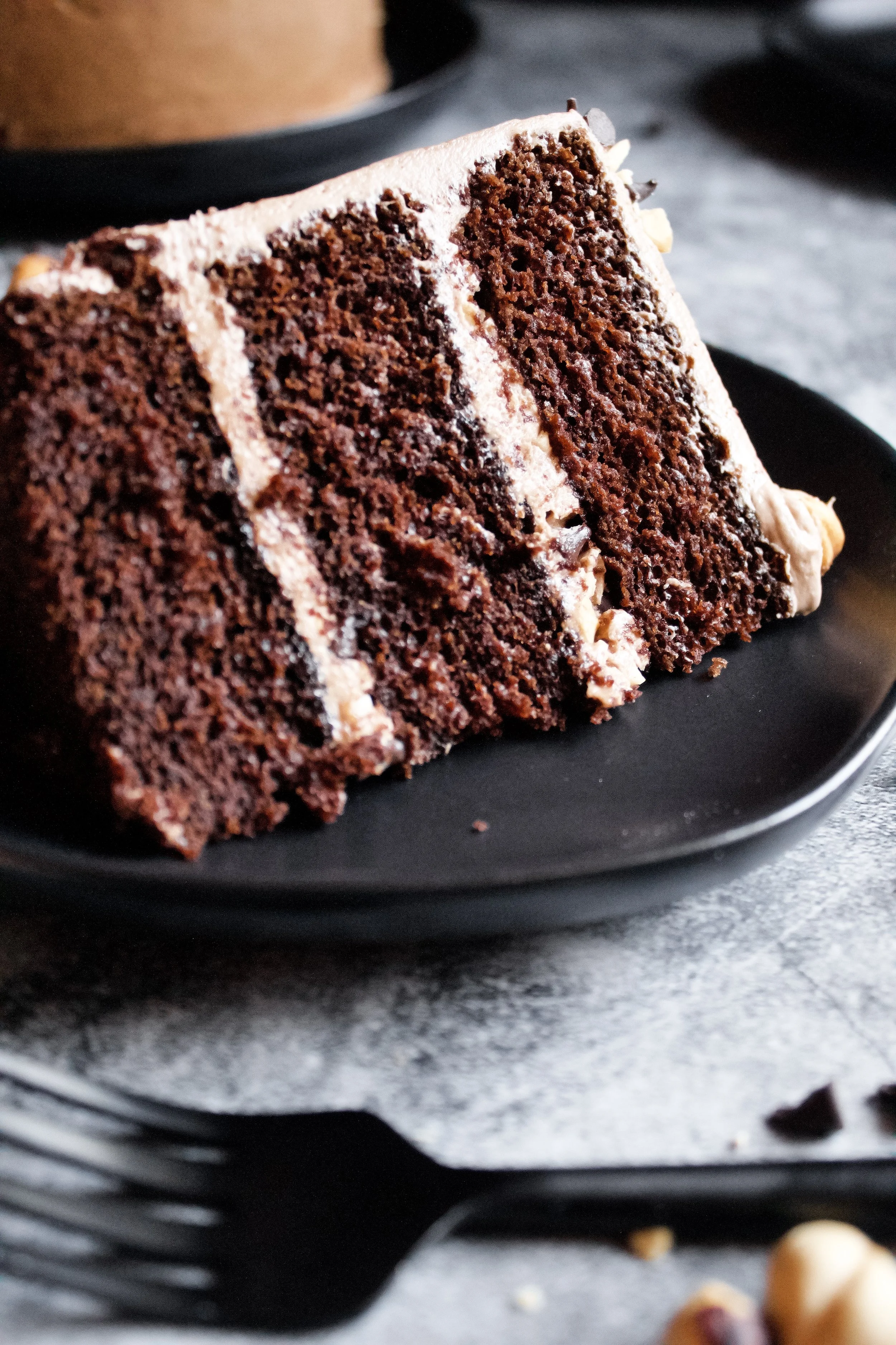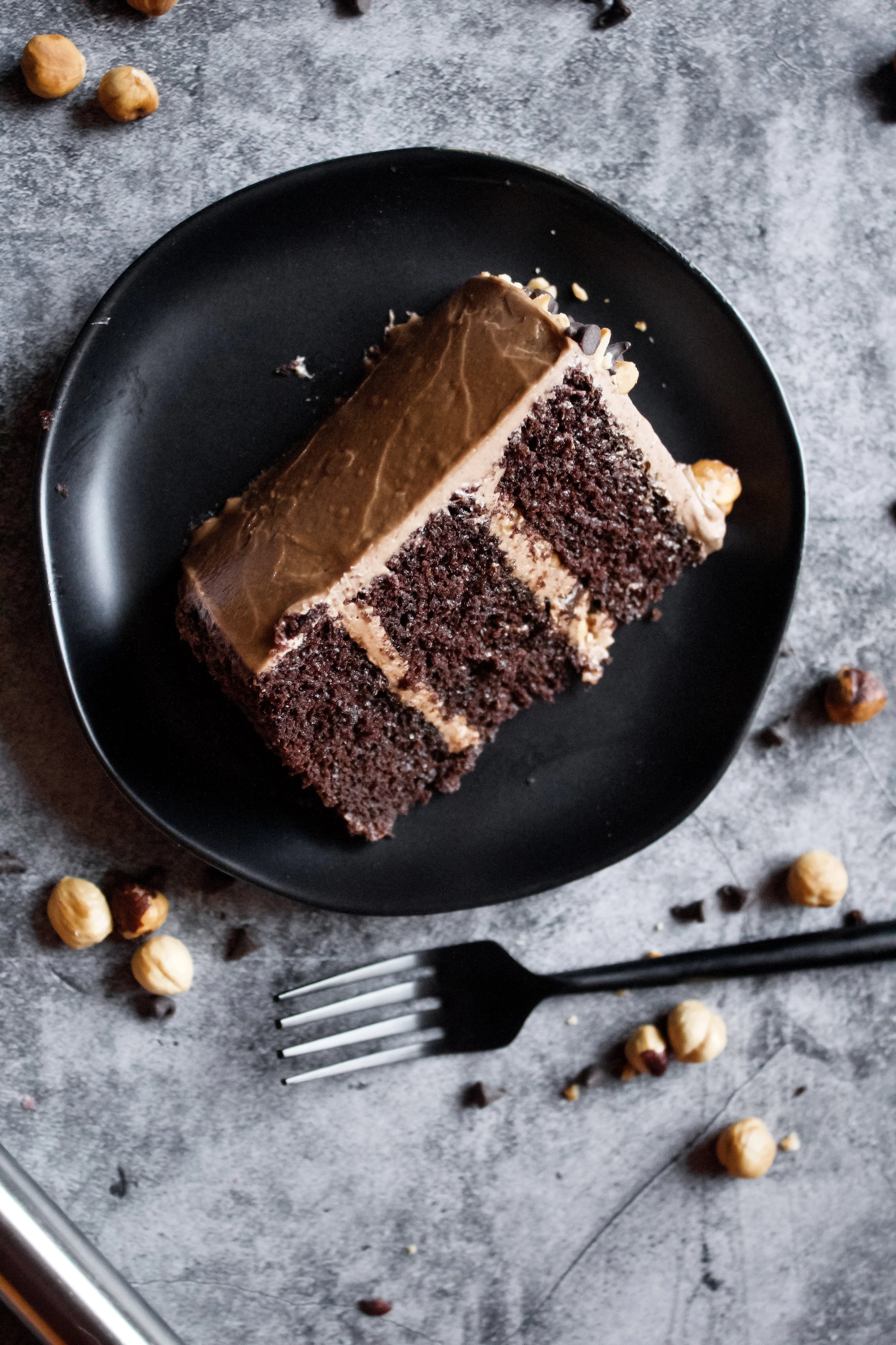 Chocolate hazelnut cake with chocolate hazelnut buttercream and freshly roasted hazelnuts. Simple to make, this cake is a Nutella lover’s dream!