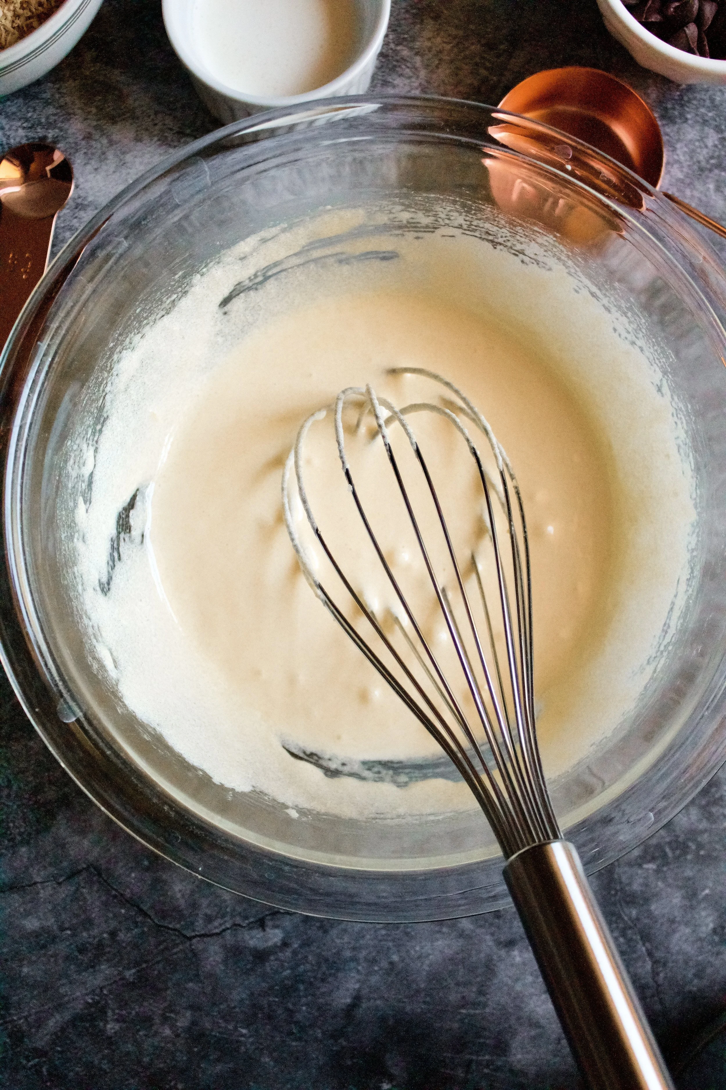 1. Whisk egg yolks and sugar until pale and fluffy. At first it’ll be goopy and lumpy and seem like it can’t be whisked. Just keep going and the sugar will melt then it’ll all turn fluffy and pale. You should be able to pull the whisk up and create ribbons that stay visible for a few seconds.