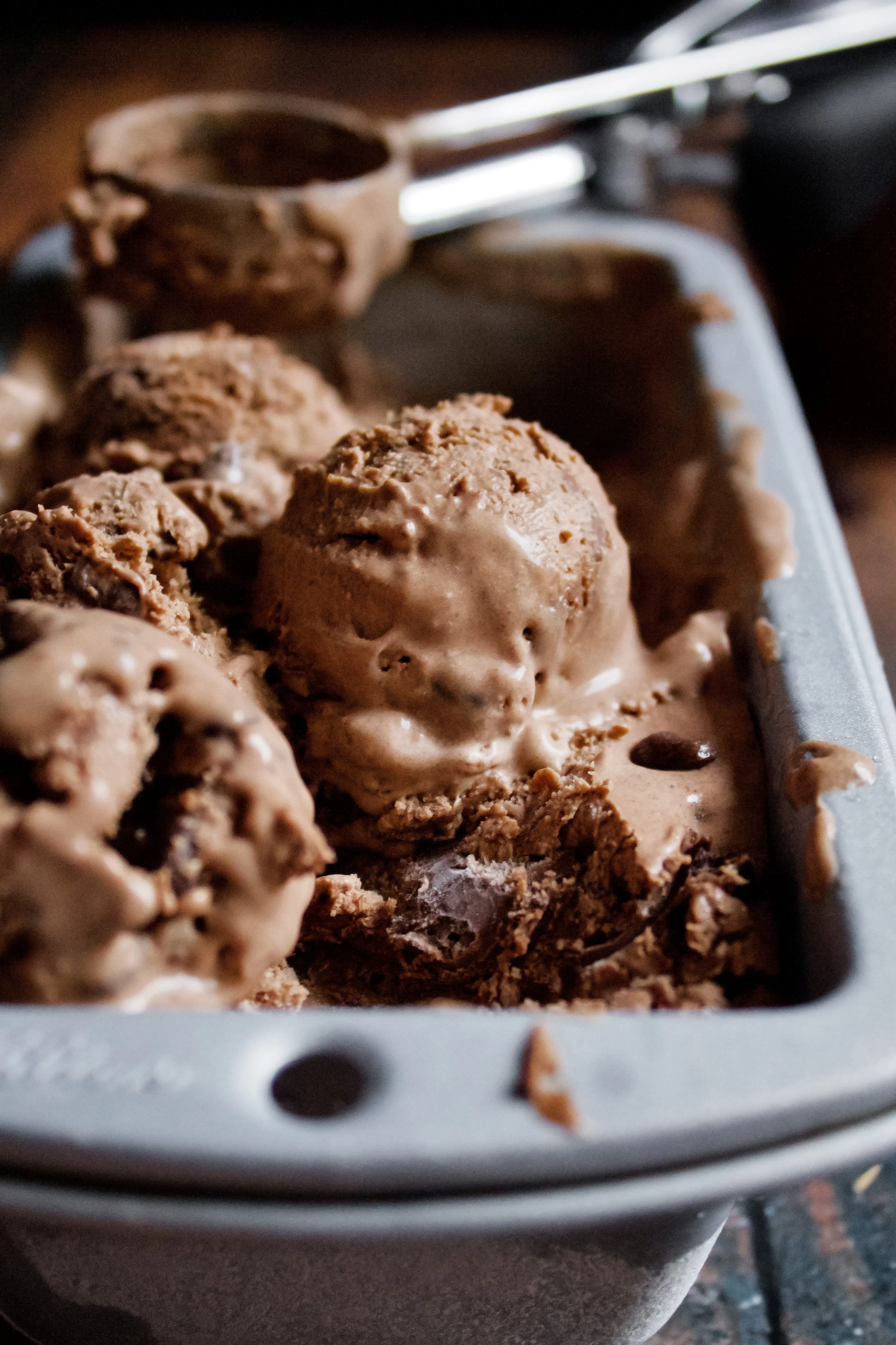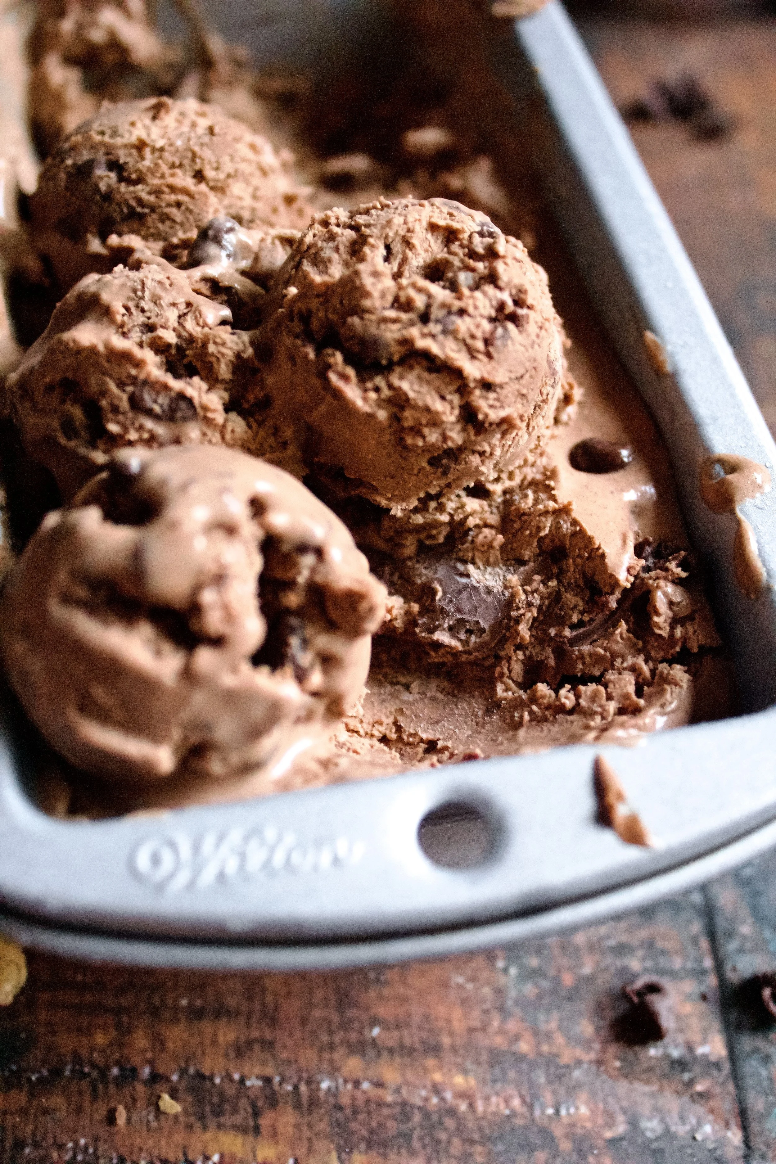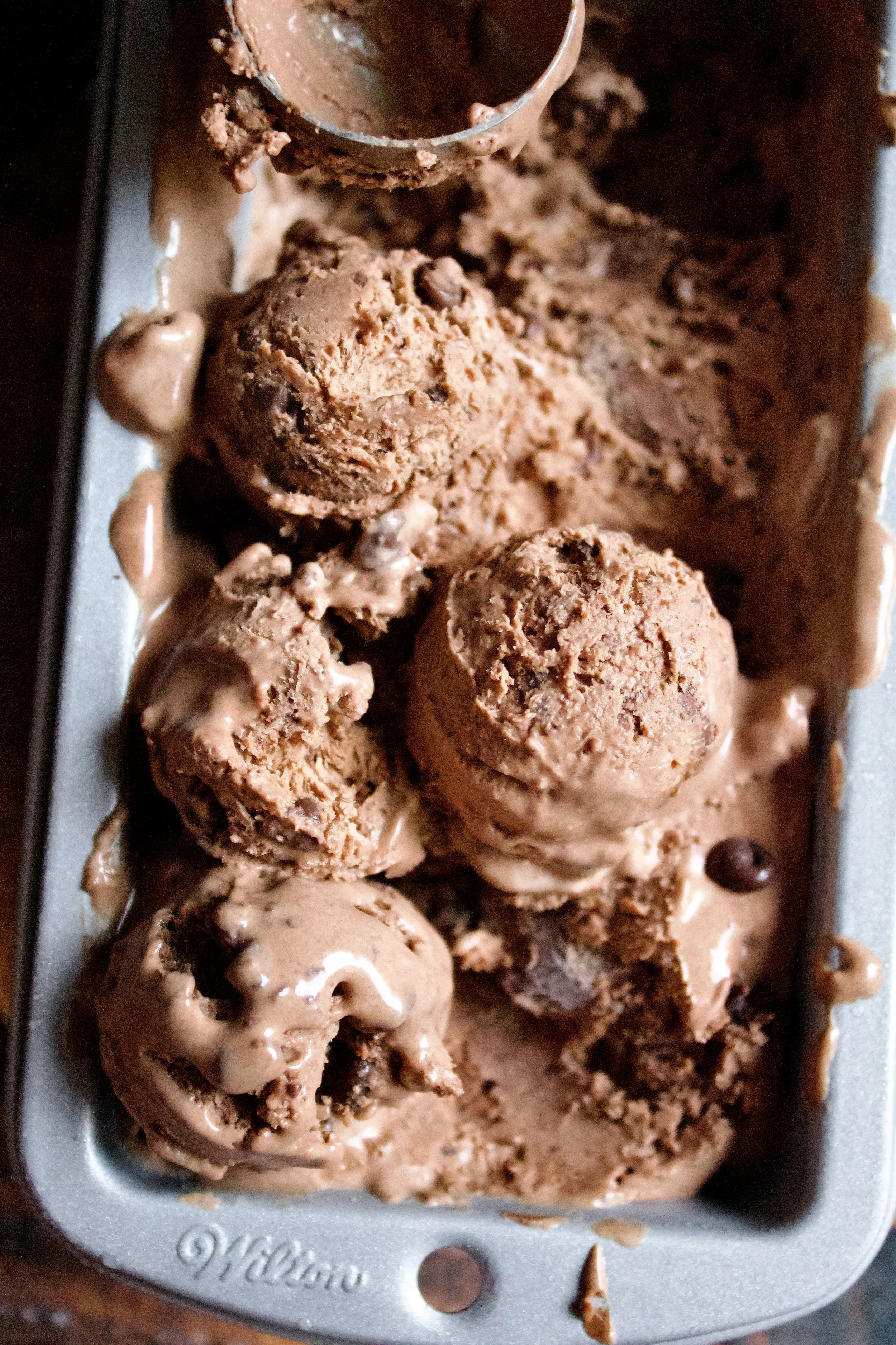 Rich, silky chocolate ice cream with fudge ribbons and chocolate chips. This triple chocolate ensemble is easy to make and is a chocolate lover’s dream!