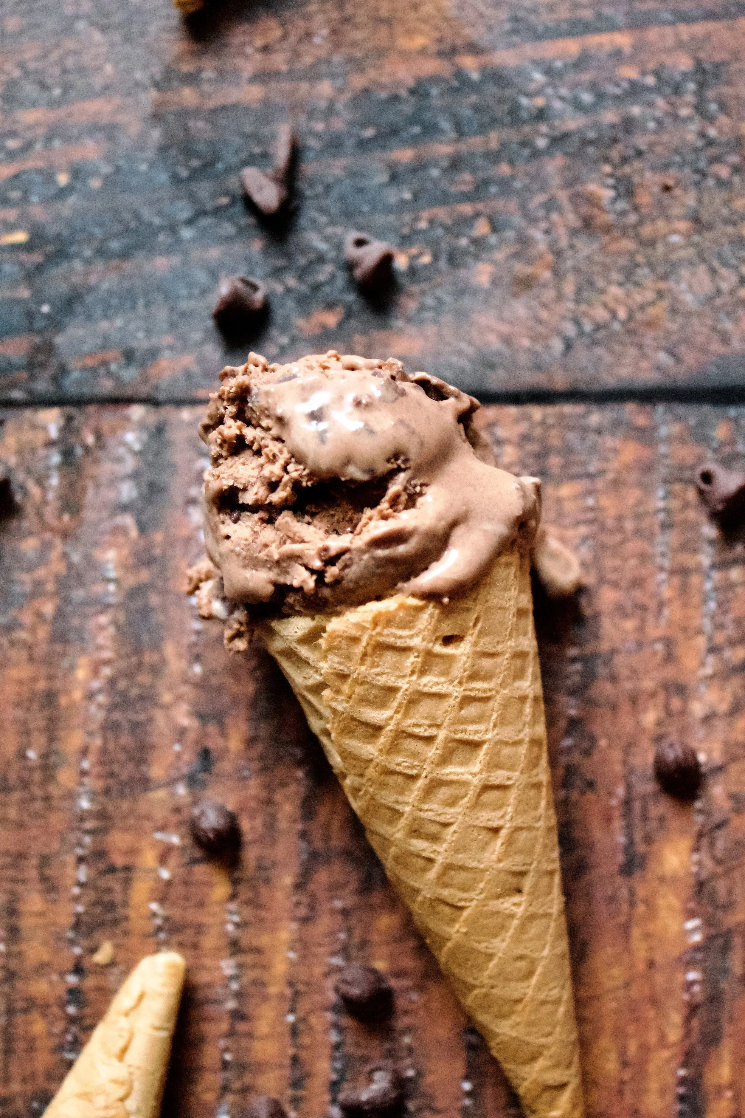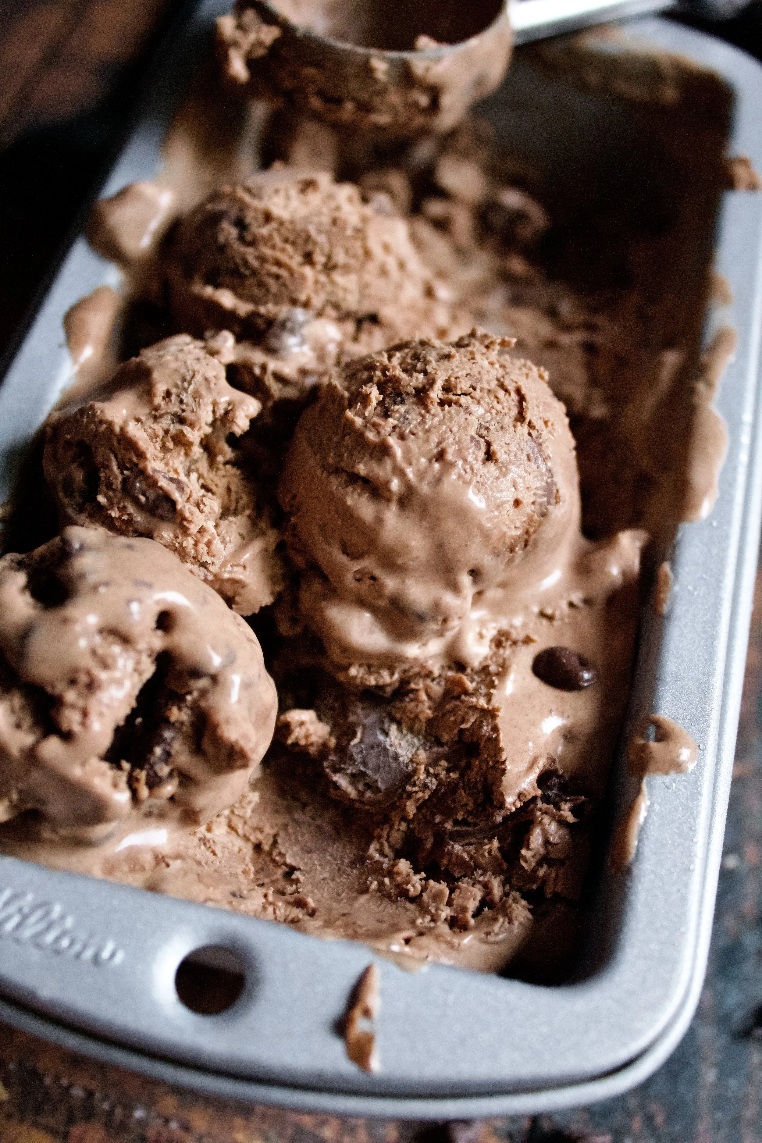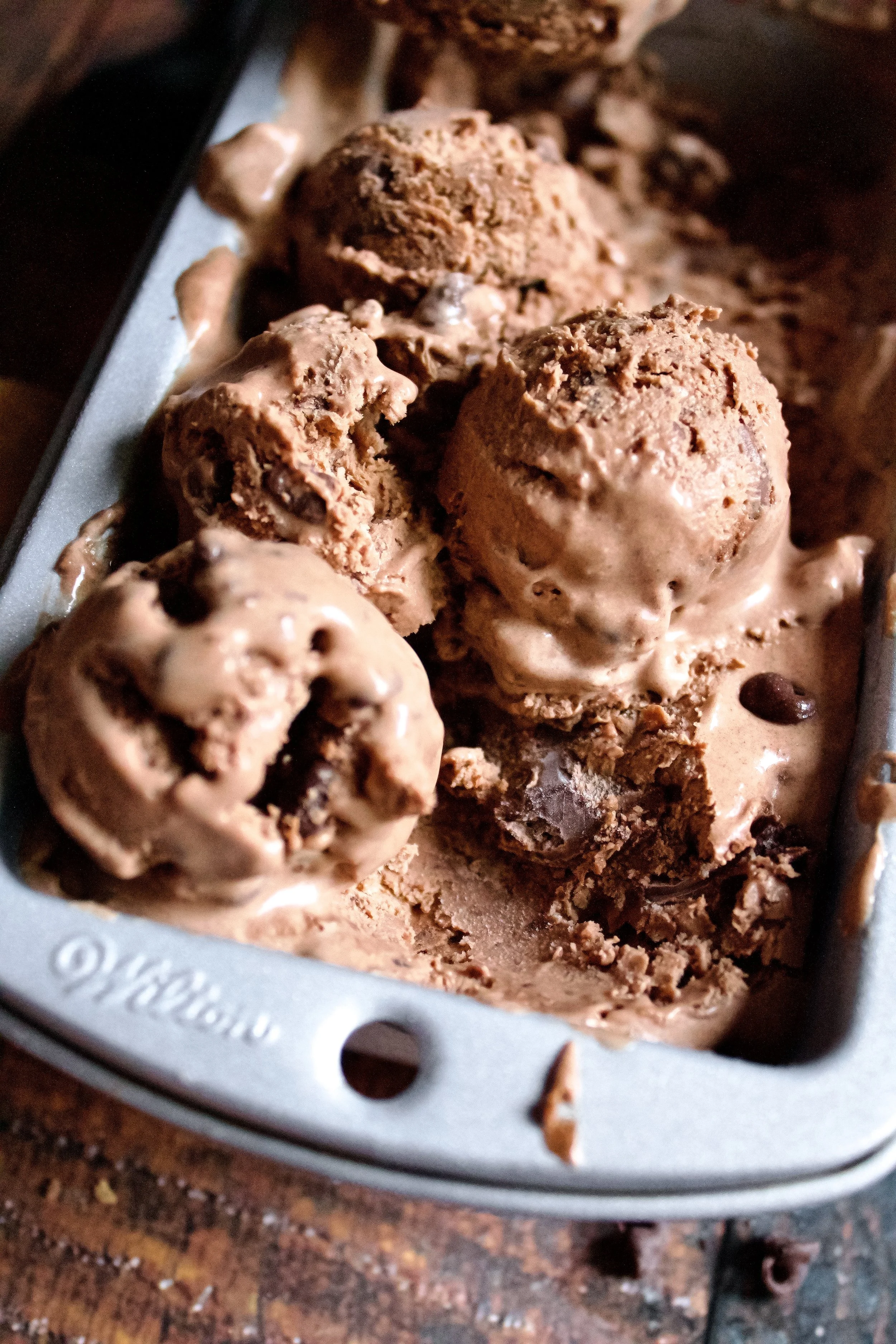 Yes! I personally prefer the taste of egg-based ice creams, but you can make this recipe by using one 14 ounce can of sweetened condensed milk instead of the egg yolks, milk, and sugar (so replacing the custard). You’ll simply melt the chocolate chips and let them cool slightly, the vanilla, and the cocoa powder into the sweetened condensed milk in a large mixing bowl. The replaces the custard, so you can then either add the heavy cream and churn with an ice cream maker or follow the no-churn option above.