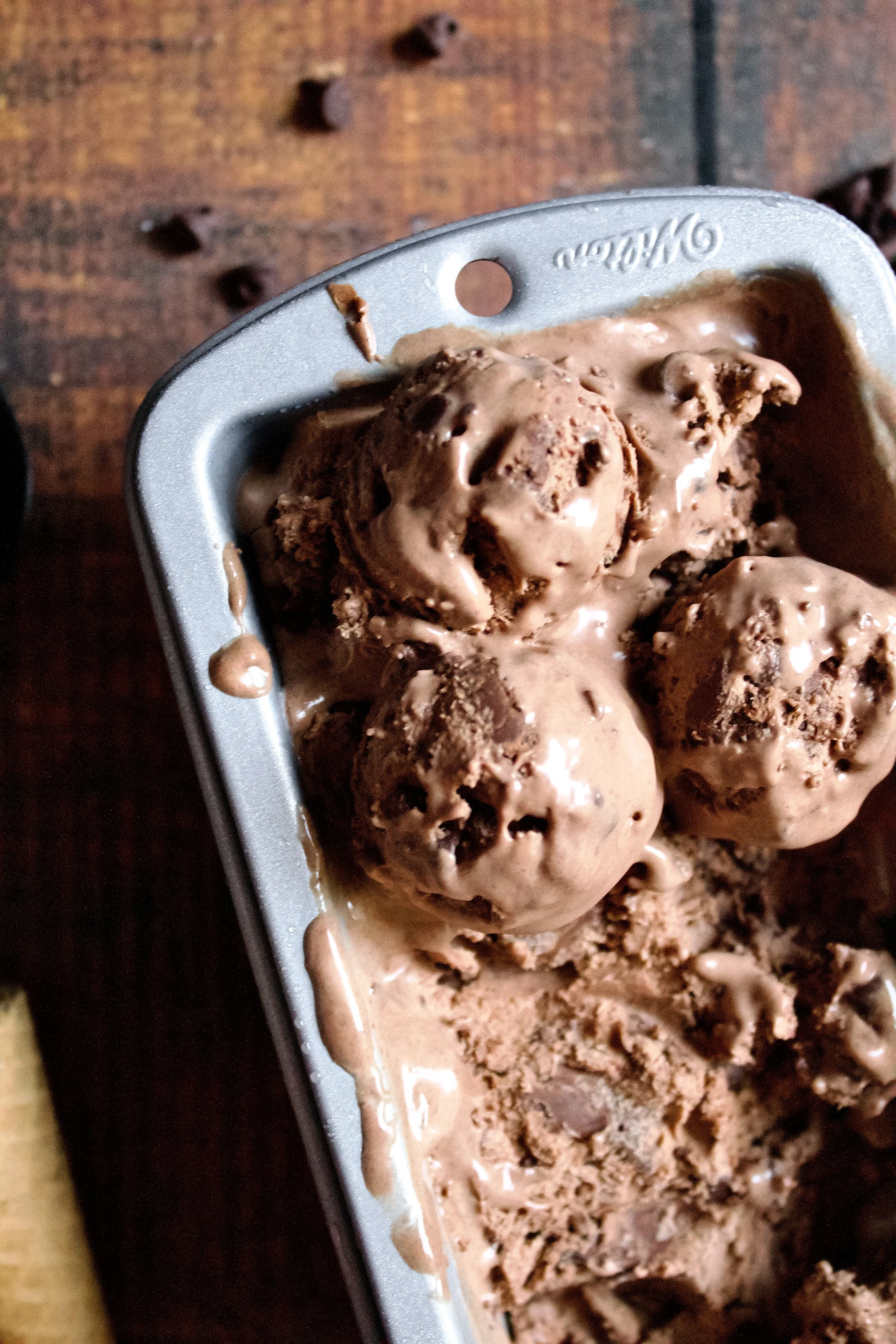 This ice cream is simple to make yet creamy and full of chocolate. In fact, the mini chocolate chips and fudge swirl help create a lovely combination of textures. Not too crunchy, but just enough.