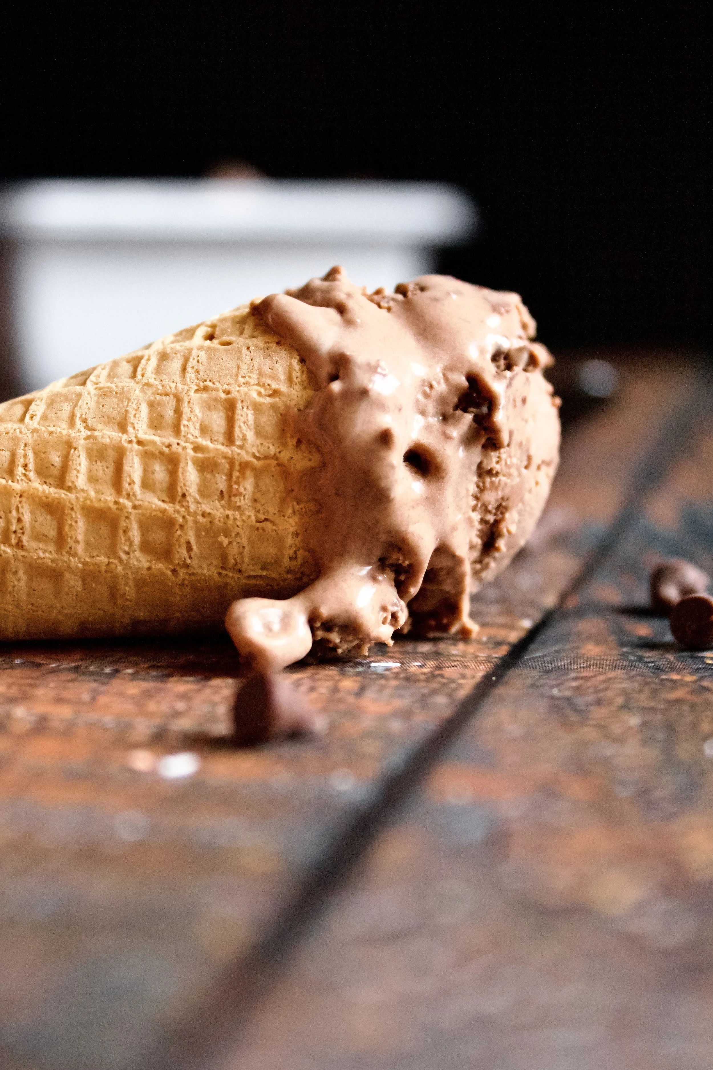 Personally, I don’t see this as a problem, since you now have teeny tiny flecks of chocolate in your ice cream. However, you can easily just strain it through a large fine mesh sieve to remove these bits. If you still see nearly whole chocolate chips or chunks, you probably need to heat it for longer to help those melt.