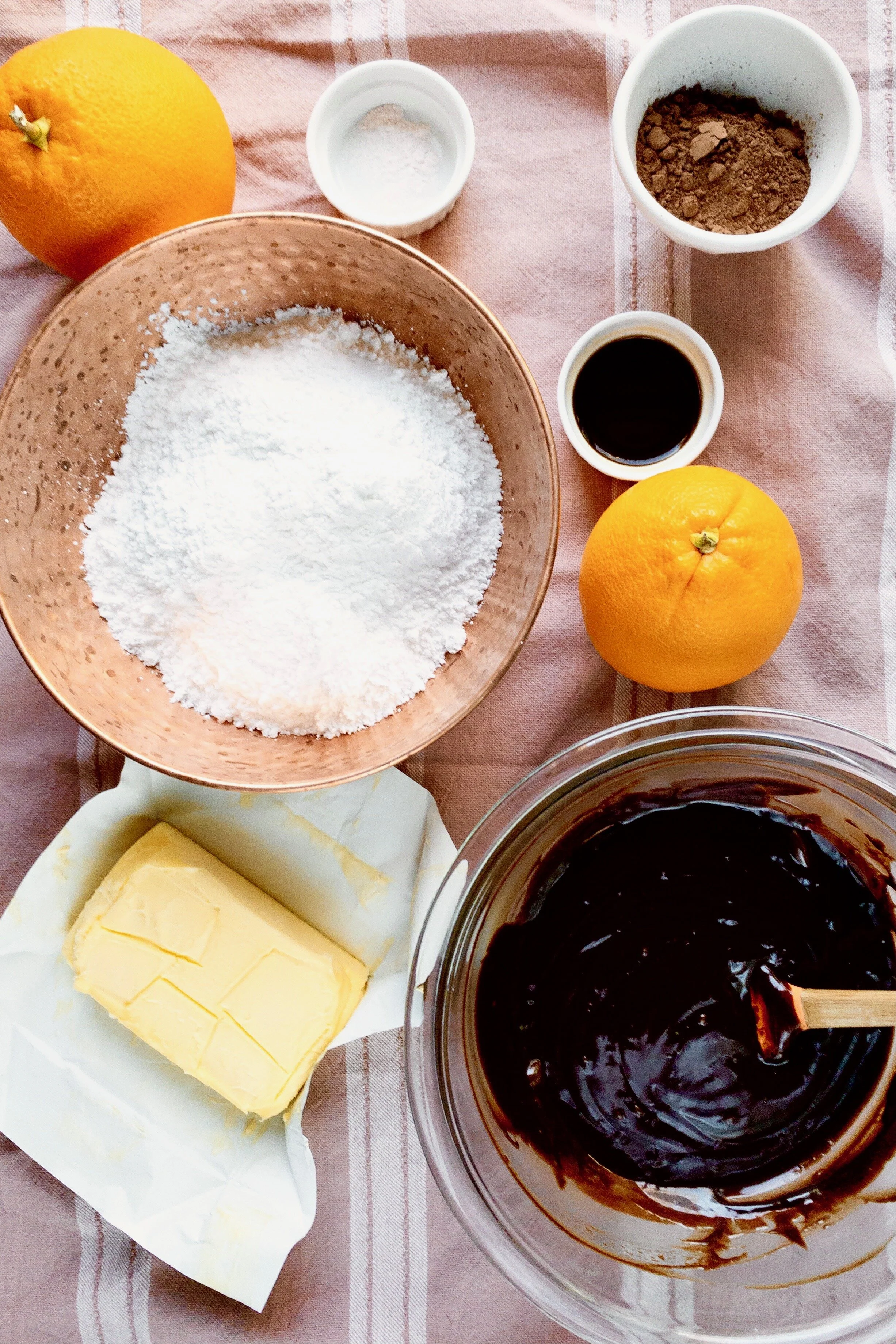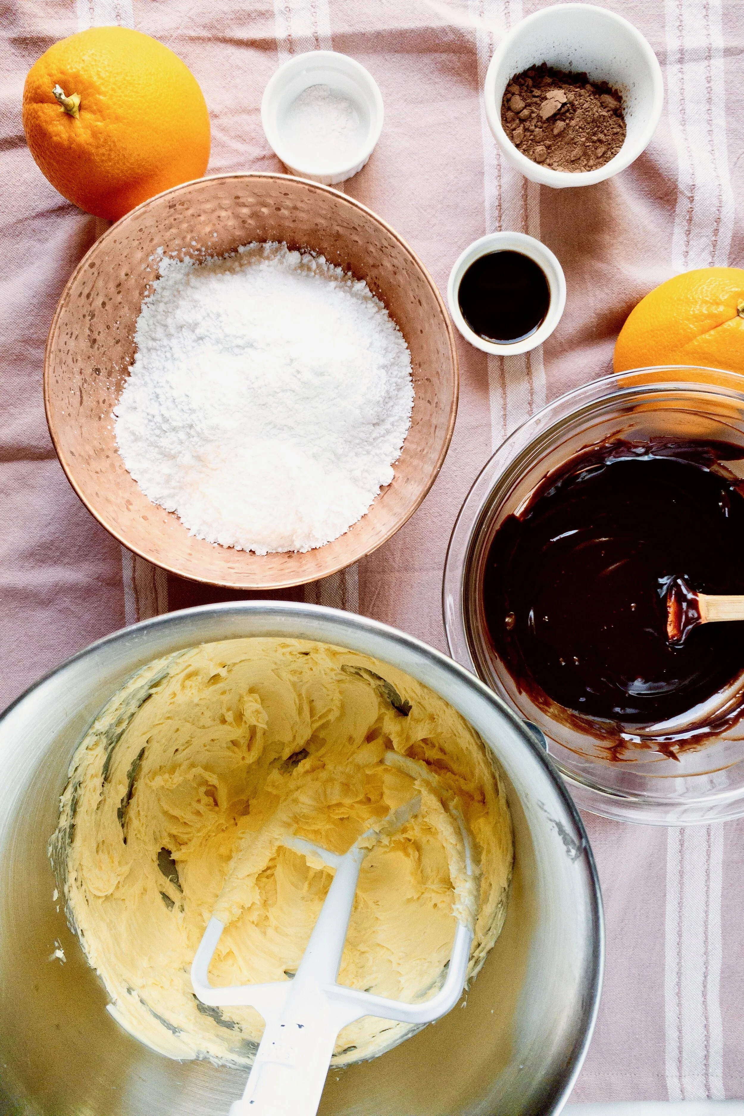 This citrus season, as multiple family members are pawning off their surplus oranges on us, I decided to try blending classic chocolate buttercream (which uses cocoa powder) with a variation of my chocolate sauce. It’s similar to my ganache buttercream, except the heavy cream is first steeped in orange peel.