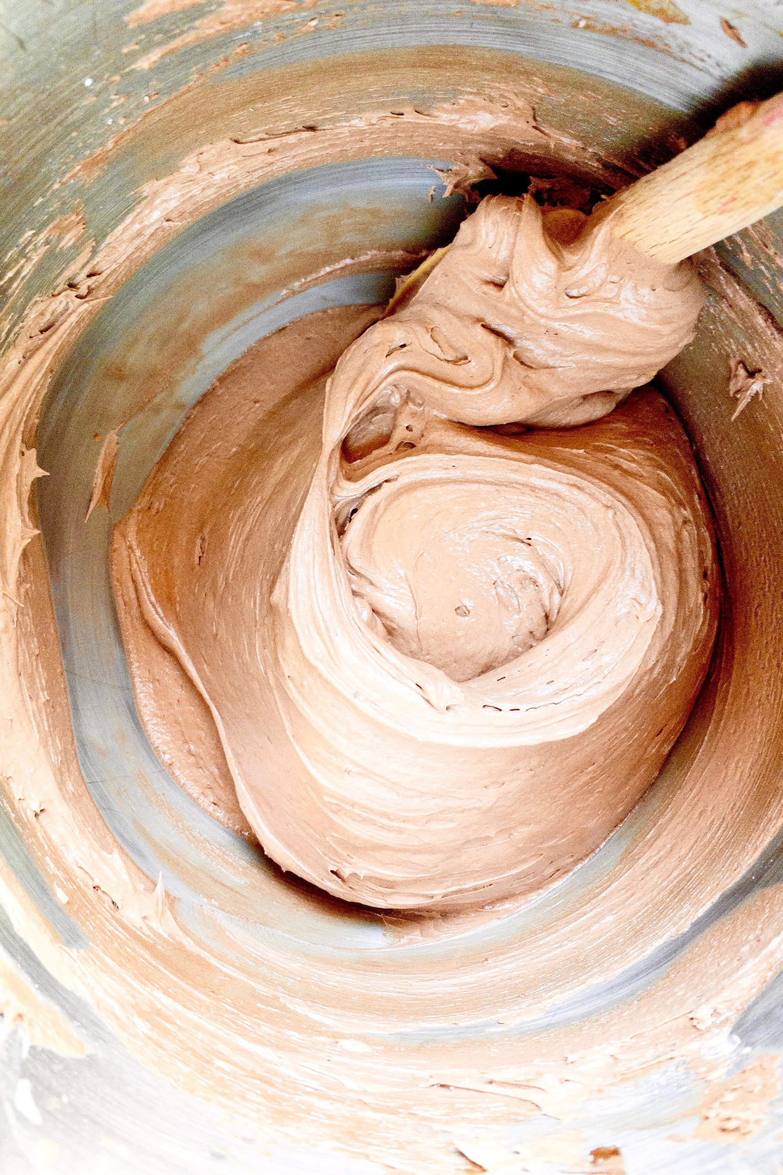 - Make the buttercream. In the bowl of a stand mixer fitted with the paddle attachment (or a large mixing bowl with a hand mixer), beat butter on high until smooth, about 30 seconds. Add the powdered sugar, one cup at a time, starting on low then increasing to high for about 30 seconds for each addition. Halfway through, scrape down the sides and bottom of your bowl.