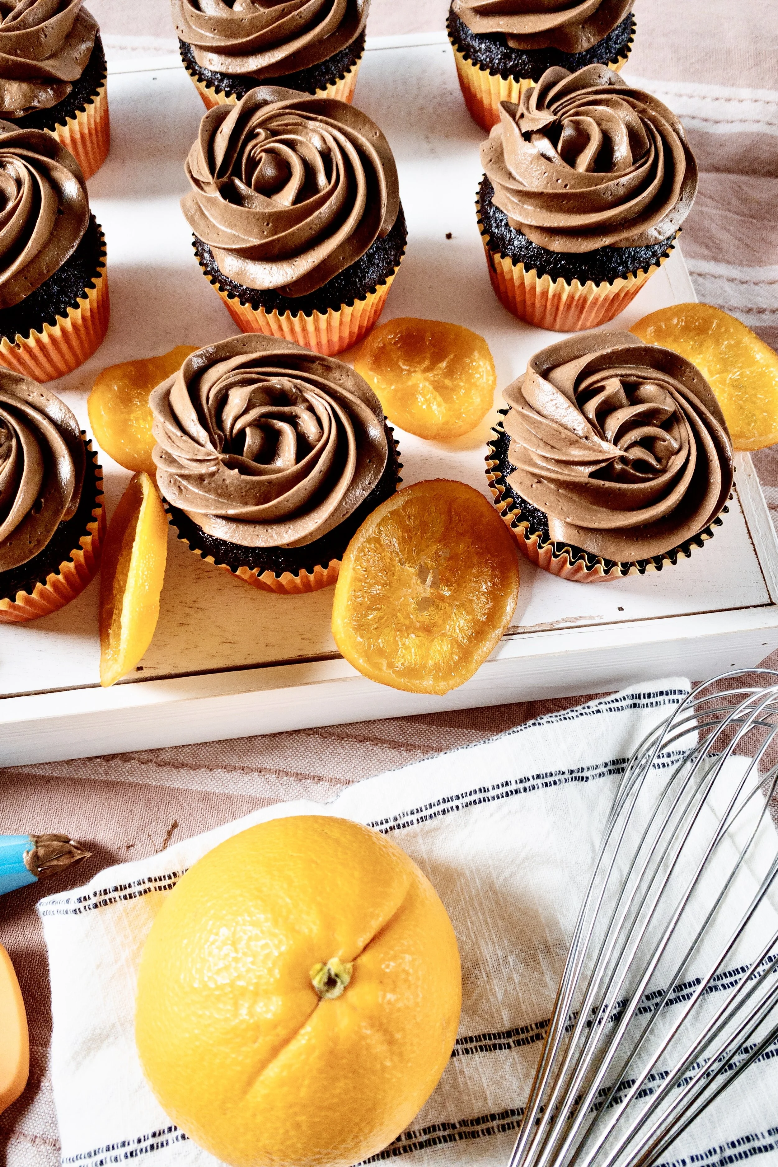 Hints of orange in a tender and rich chocolate cake frosted with a smooth chocolate orange buttercream and topped with a candied orange. These chocolate orange cupcakes the perfect way to use up some of those extra oranges. Citrus season will never be the same!
