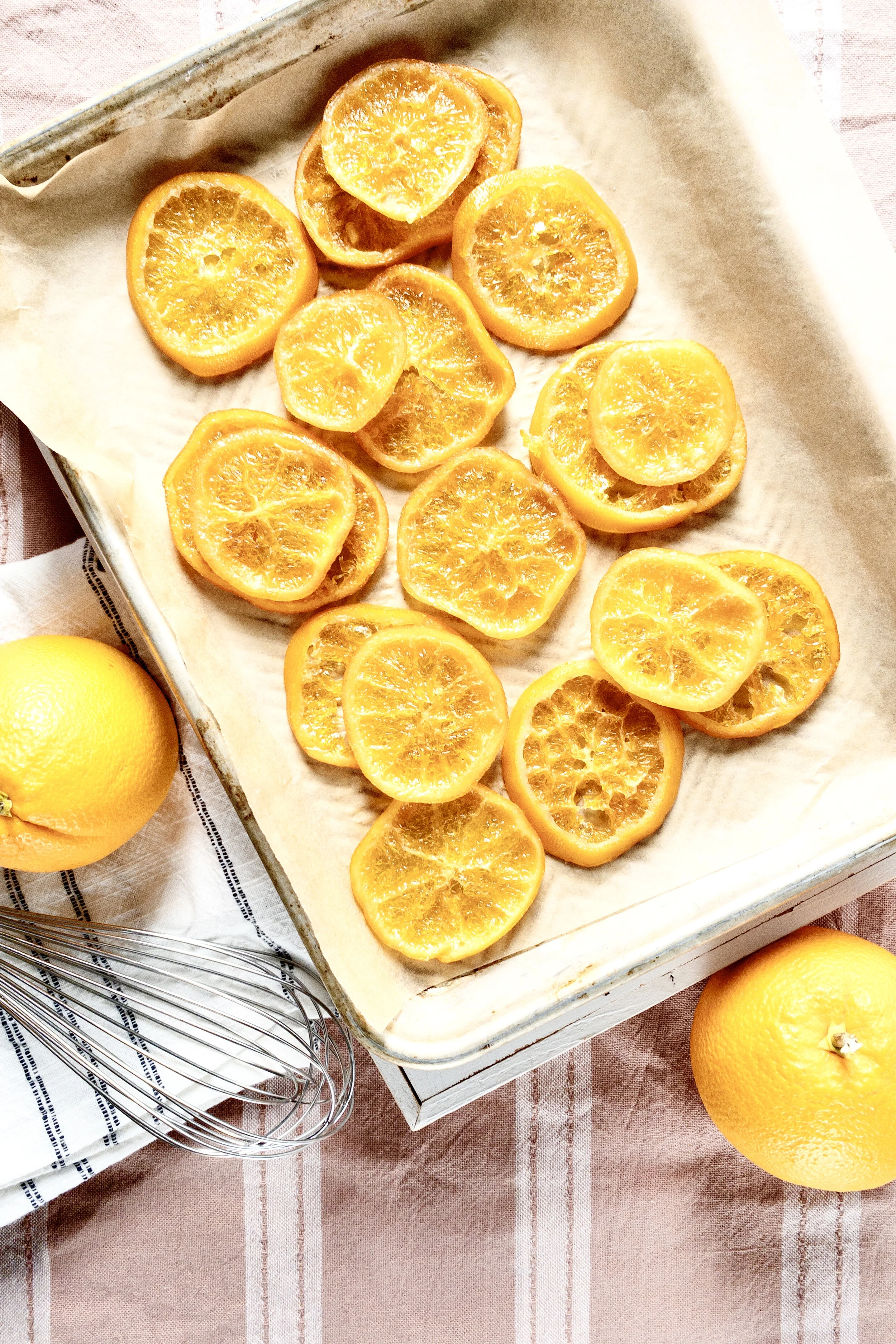- 1 batch candied orange slices (make the day before--optional but so fun!)