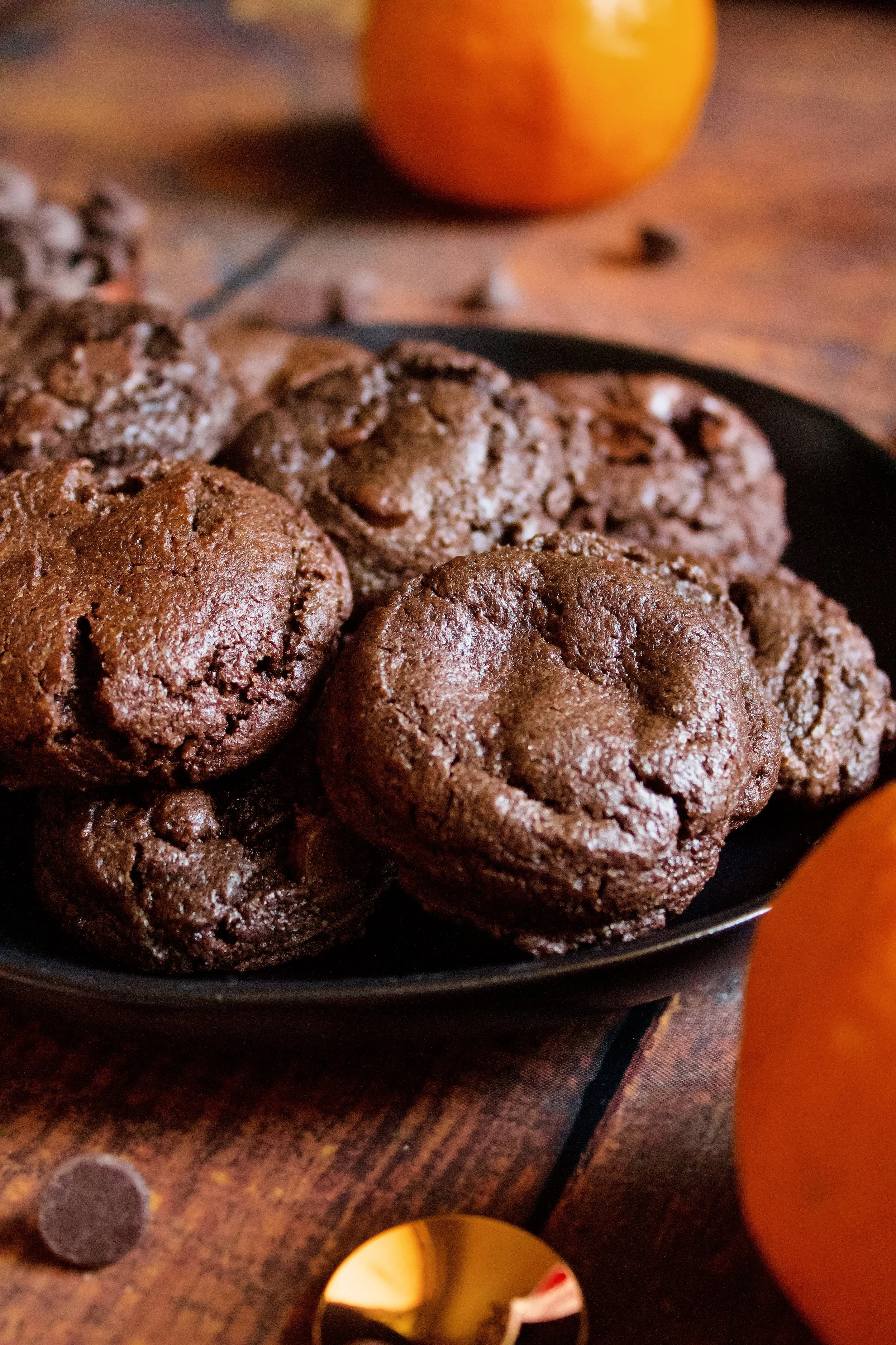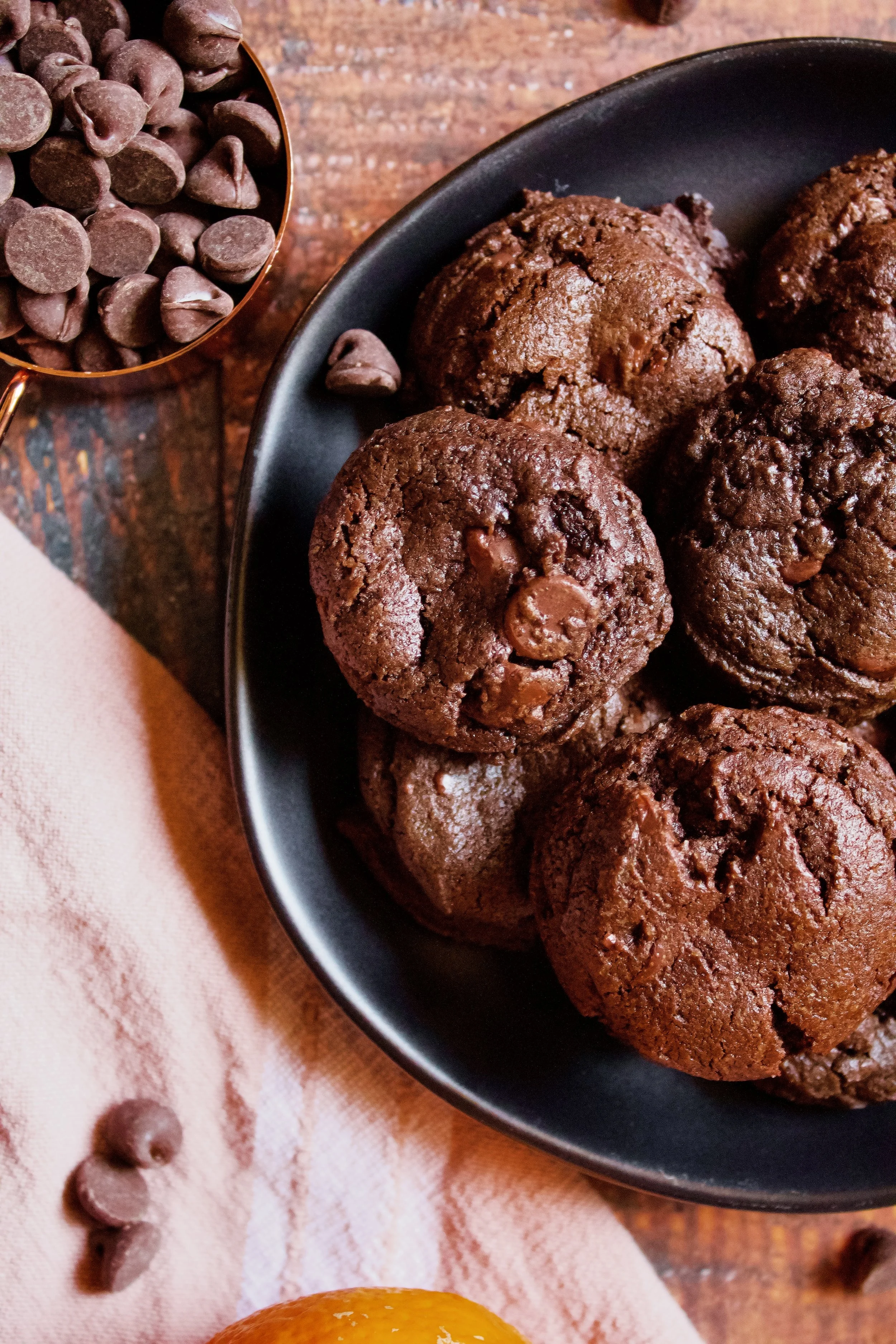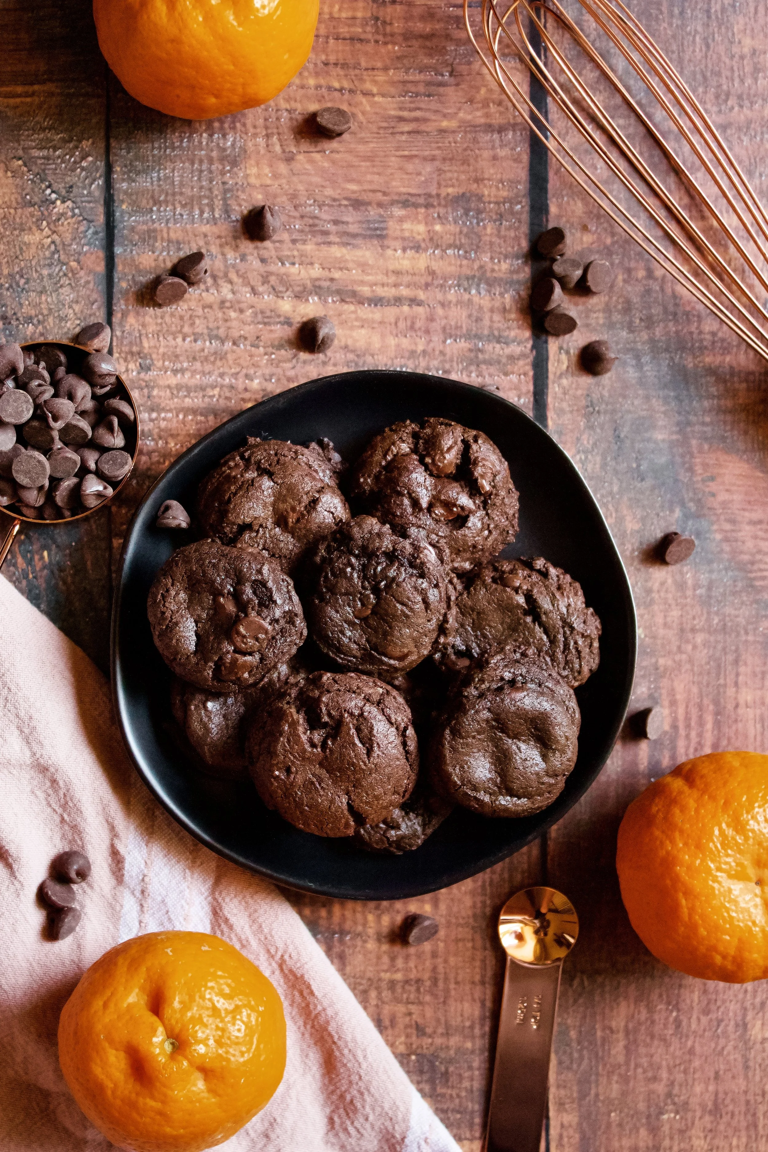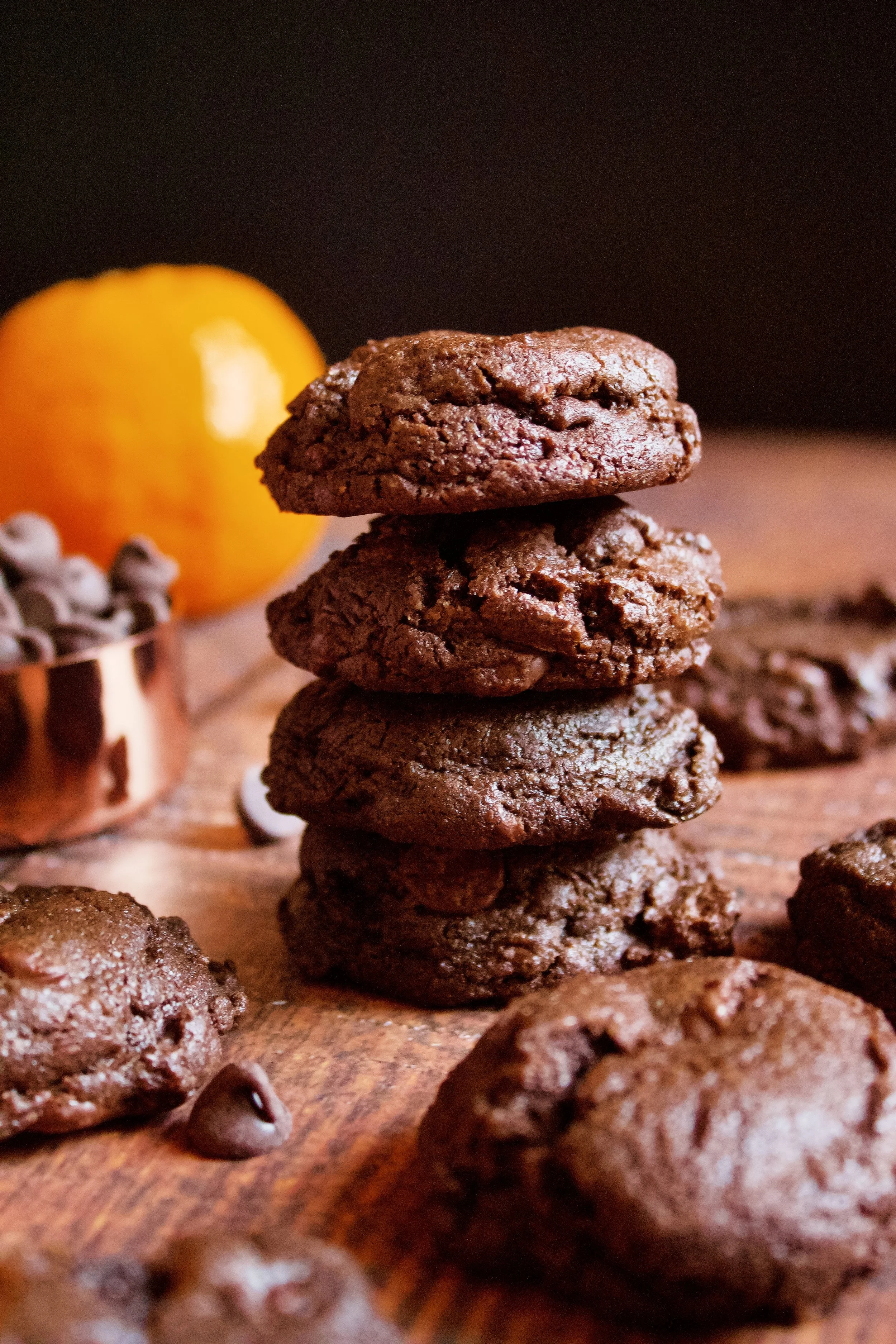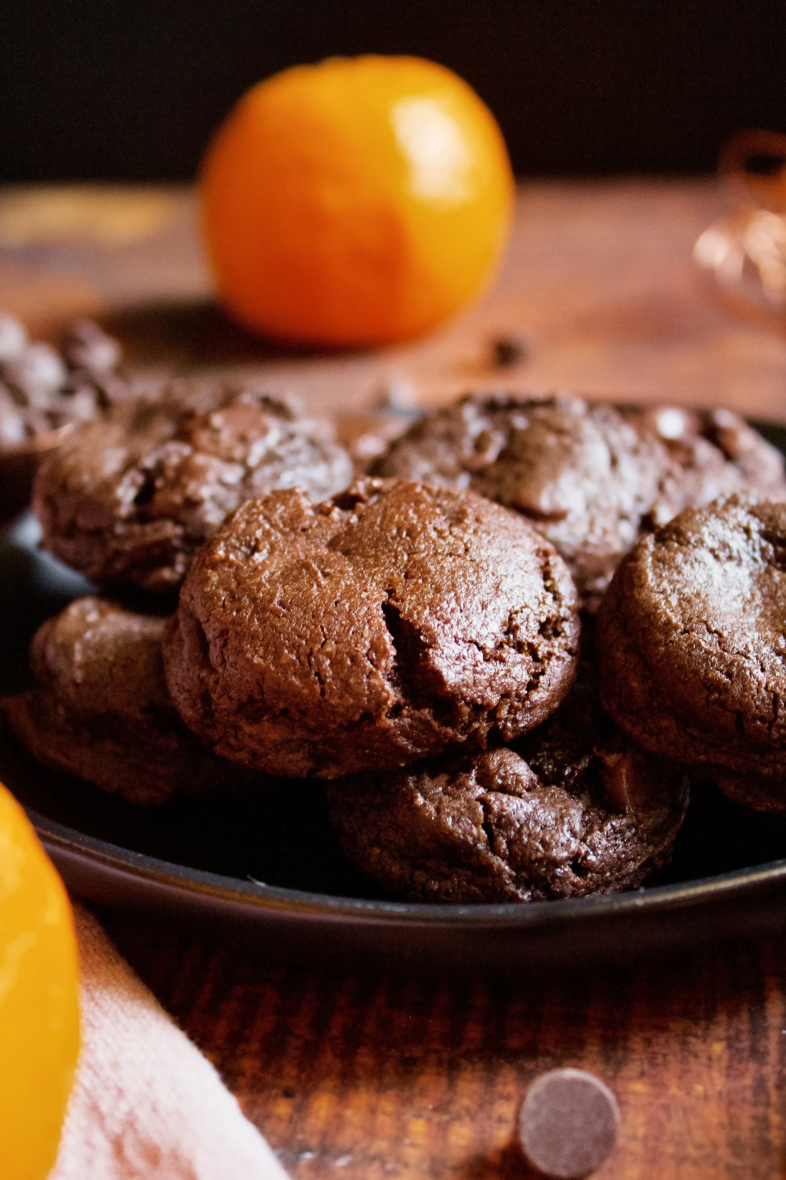 Chewy, rich double chocolate cookies with a bright hint of orange. With a crispy edge and gooey center, these cookies have that perfect cookie texture combined with a classic Christmas flavor, great for any holiday party or cookie tray!