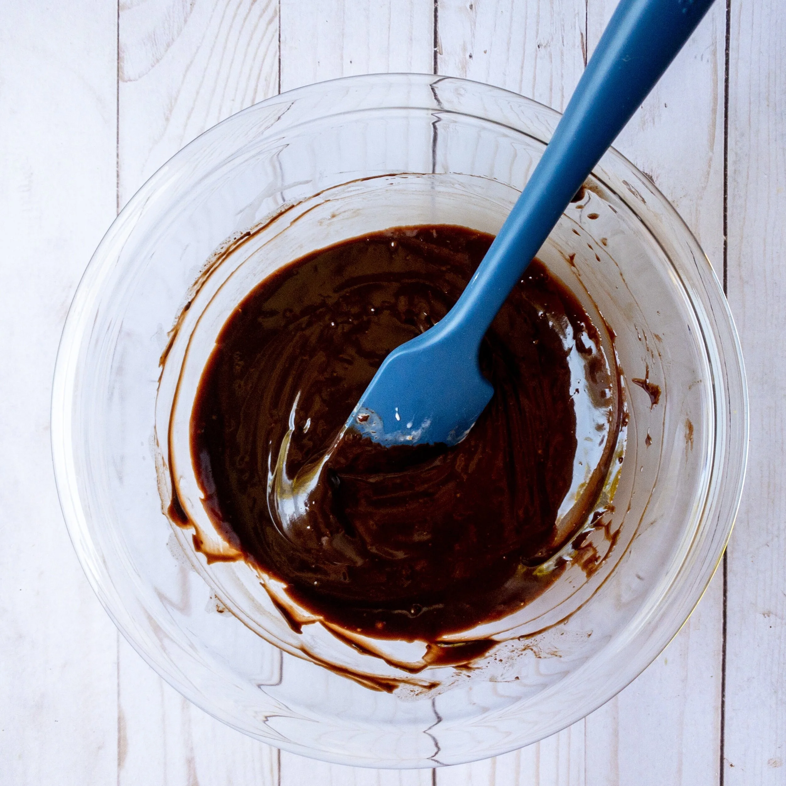 - Stove top method: in a saucepan that will allow the bowl of chocolate to sit about halfway in the pan (so all or most of the chocolate is within the pan), add 2” water and heat on high until simmering then turn down to medium-low. Place the bowl of chocolate on the pan, making sure the bottom is at least 1” above the water line. Stir with a rubber spatula until melted and completely smooth, adjusting temperature to keep the water simmering but not a rolling boil.