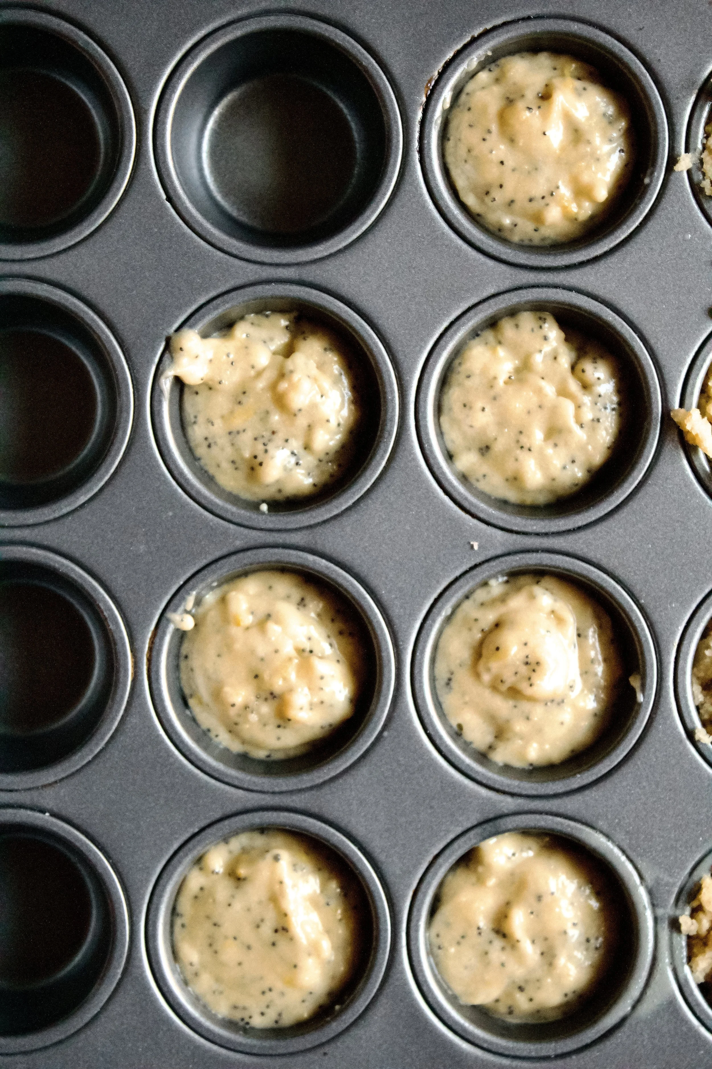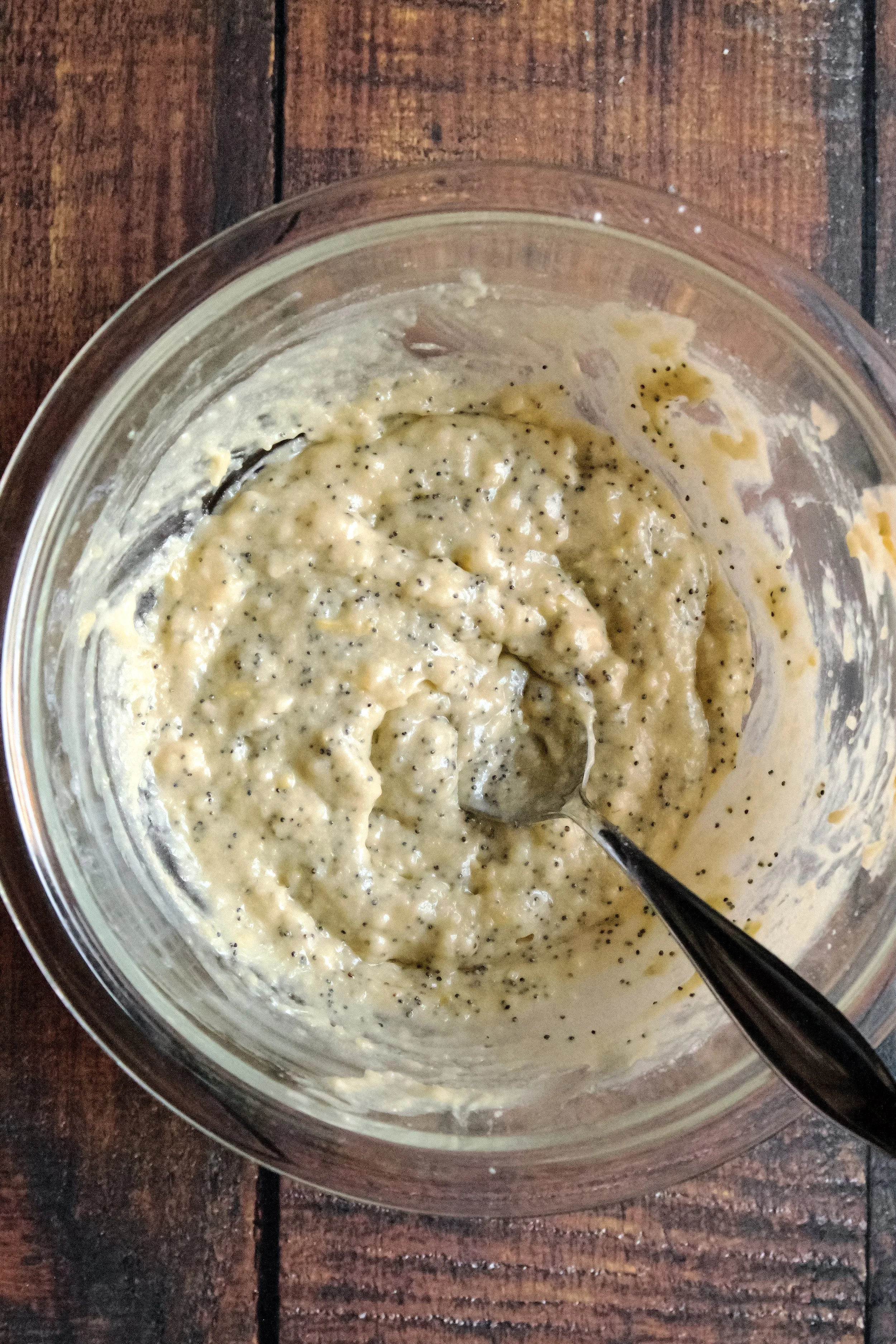 6. Fold in dry ingredients and poppyseeds. It will be lumpy, but don’t worry! It all bakes out nicely.
