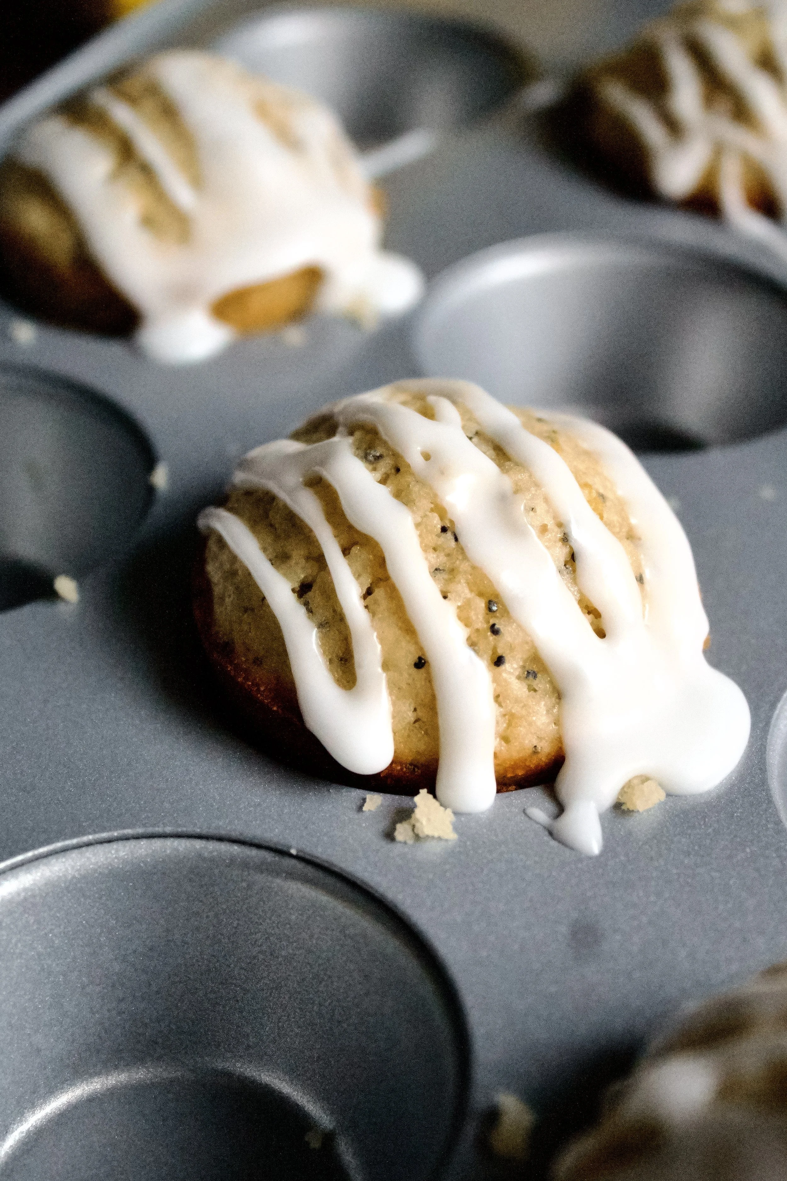 10. Drizzle on cooled muffins. You can drizzle warm muffins with glaze, but it will spread out and melt into them, so just be aware if you just can’t wait!