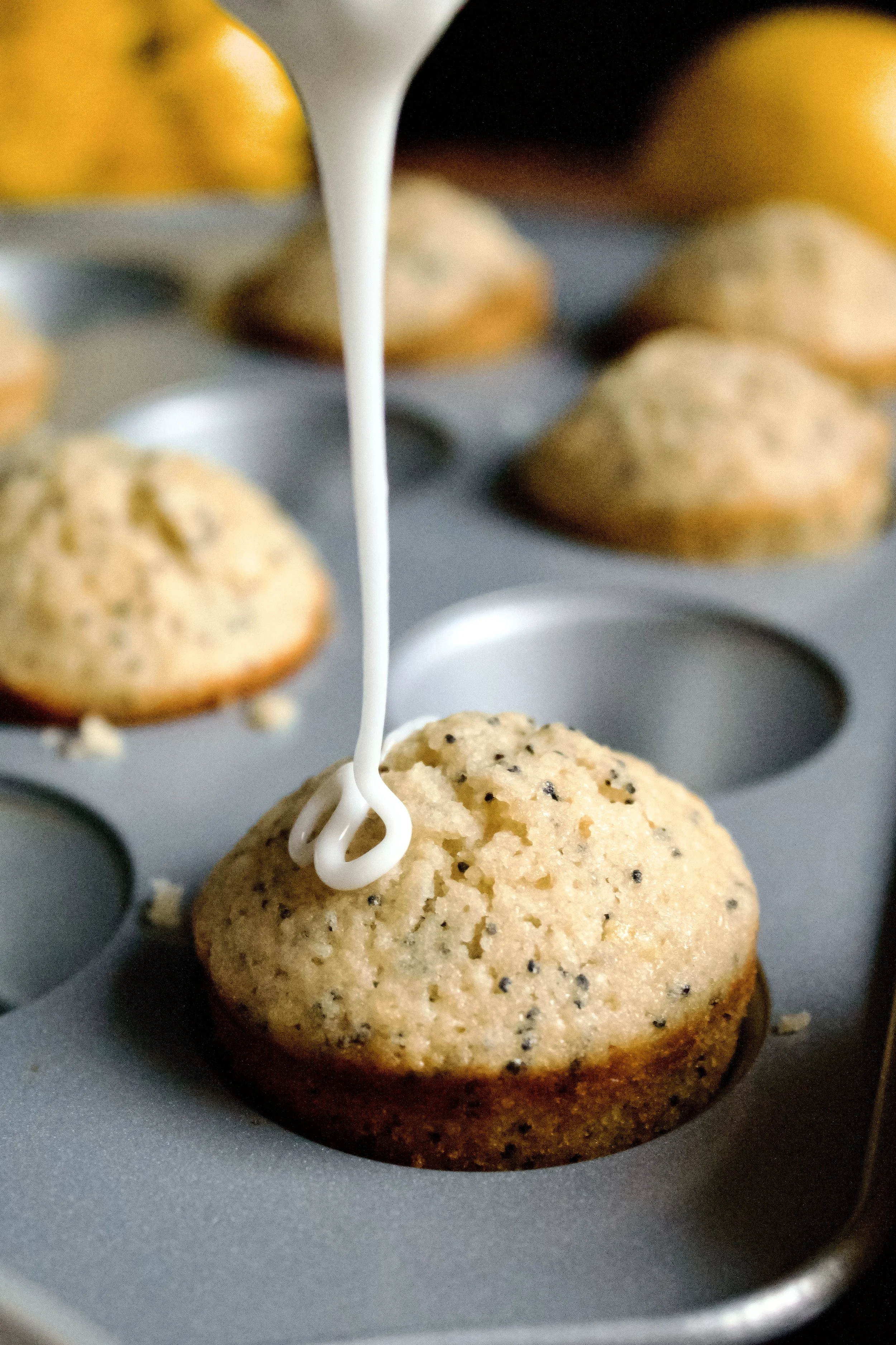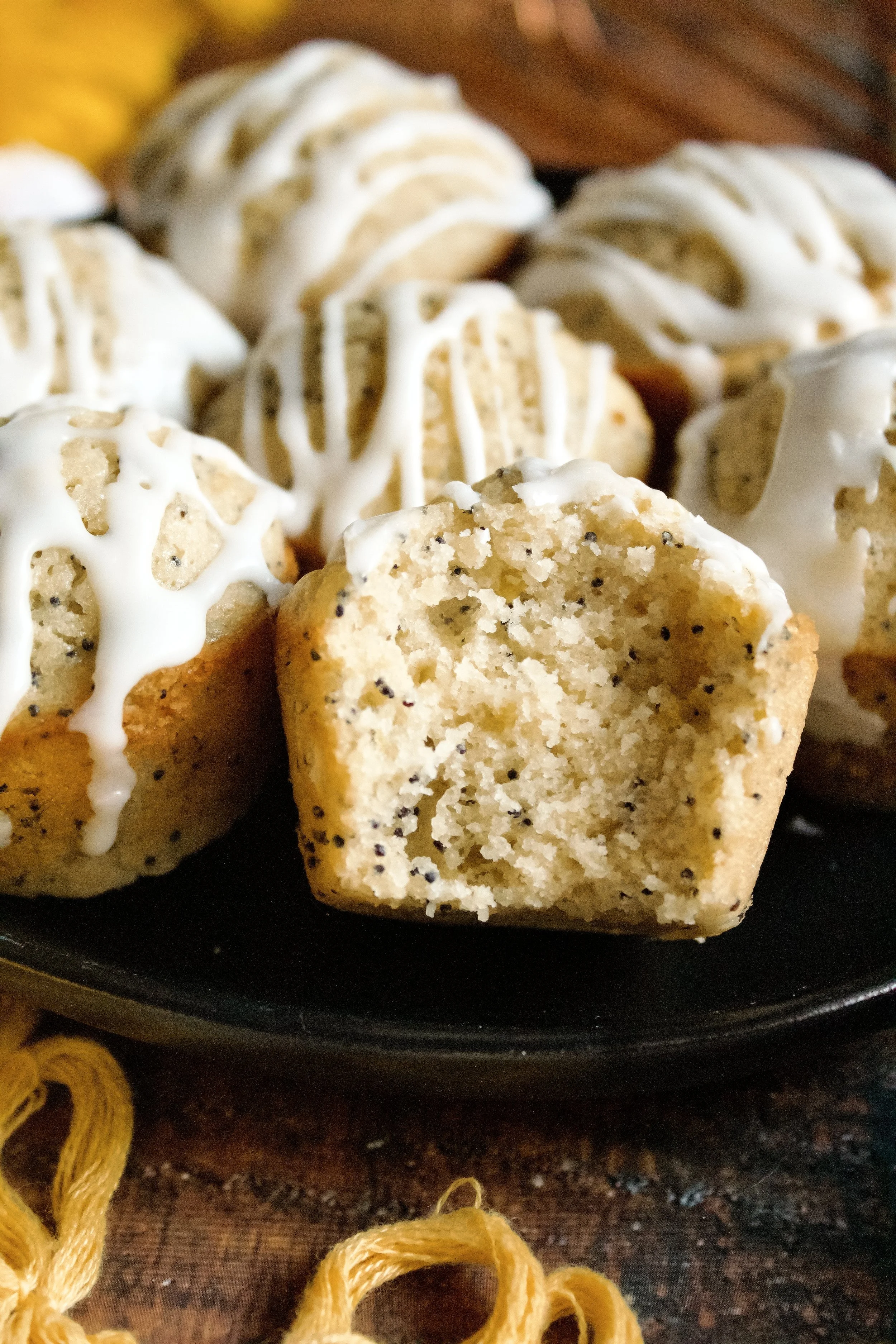 And then the flavor. I made sure to use both lemon zest and lemon juice in the muffins, along with plenty of zest in the crumble. The key is mixing the zest with the sugar to help release the oils (and thus the flavor). The result was just the right hint of lemon that is bright but not cloying. In addition, using lemon juice in the glaze really brings out that sweet/tart contrast that is so addicting in lemon treats! It plays perfectly with the earthy flavor of the poppyseeds, making these a well-rounded muffin!
