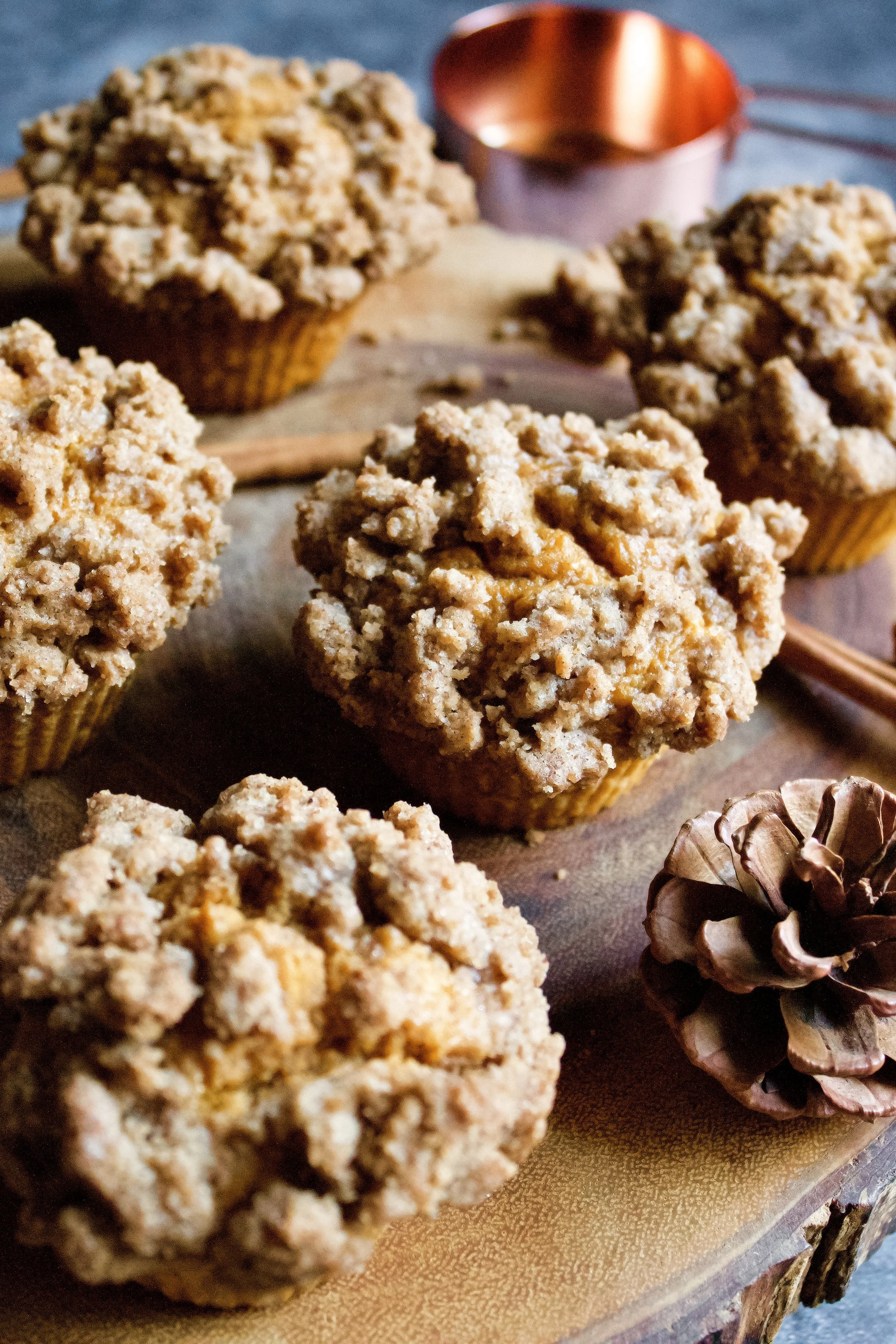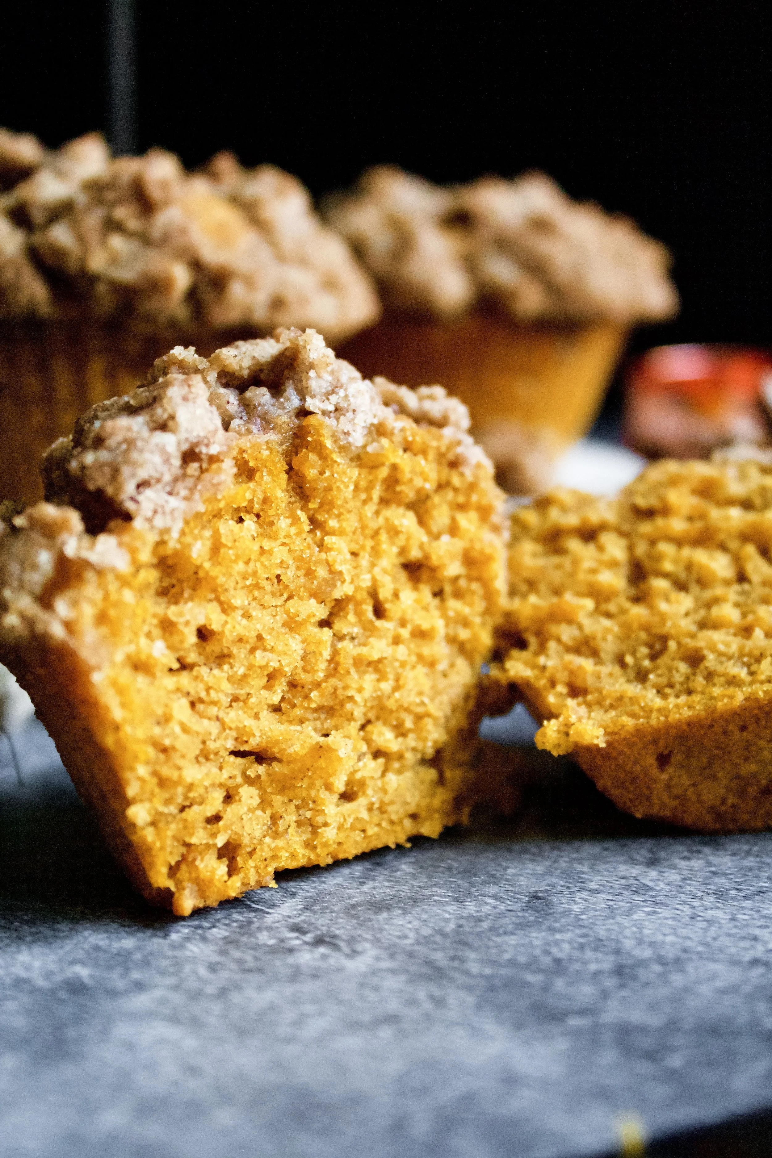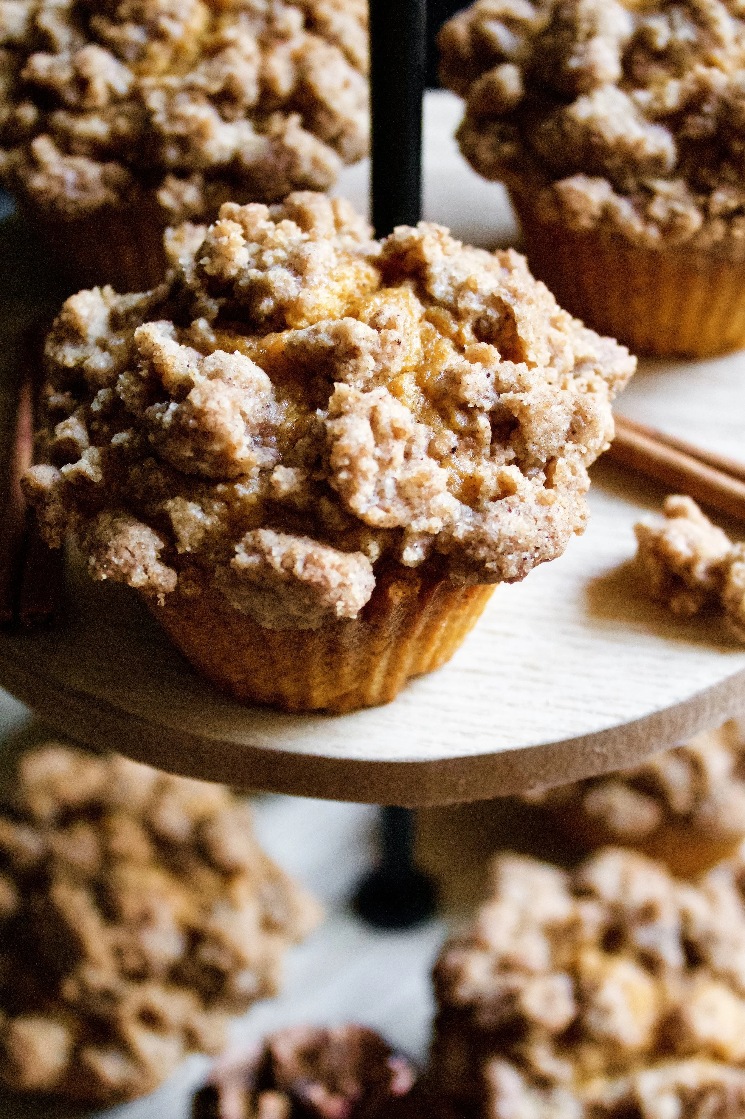Tender, flavorful pumpkin muffins topped with a delicious pumpkin spice streusel. These muffins will keep for days and are perfect with your morning pumpkin spice latte or with a lovely fall brunch.