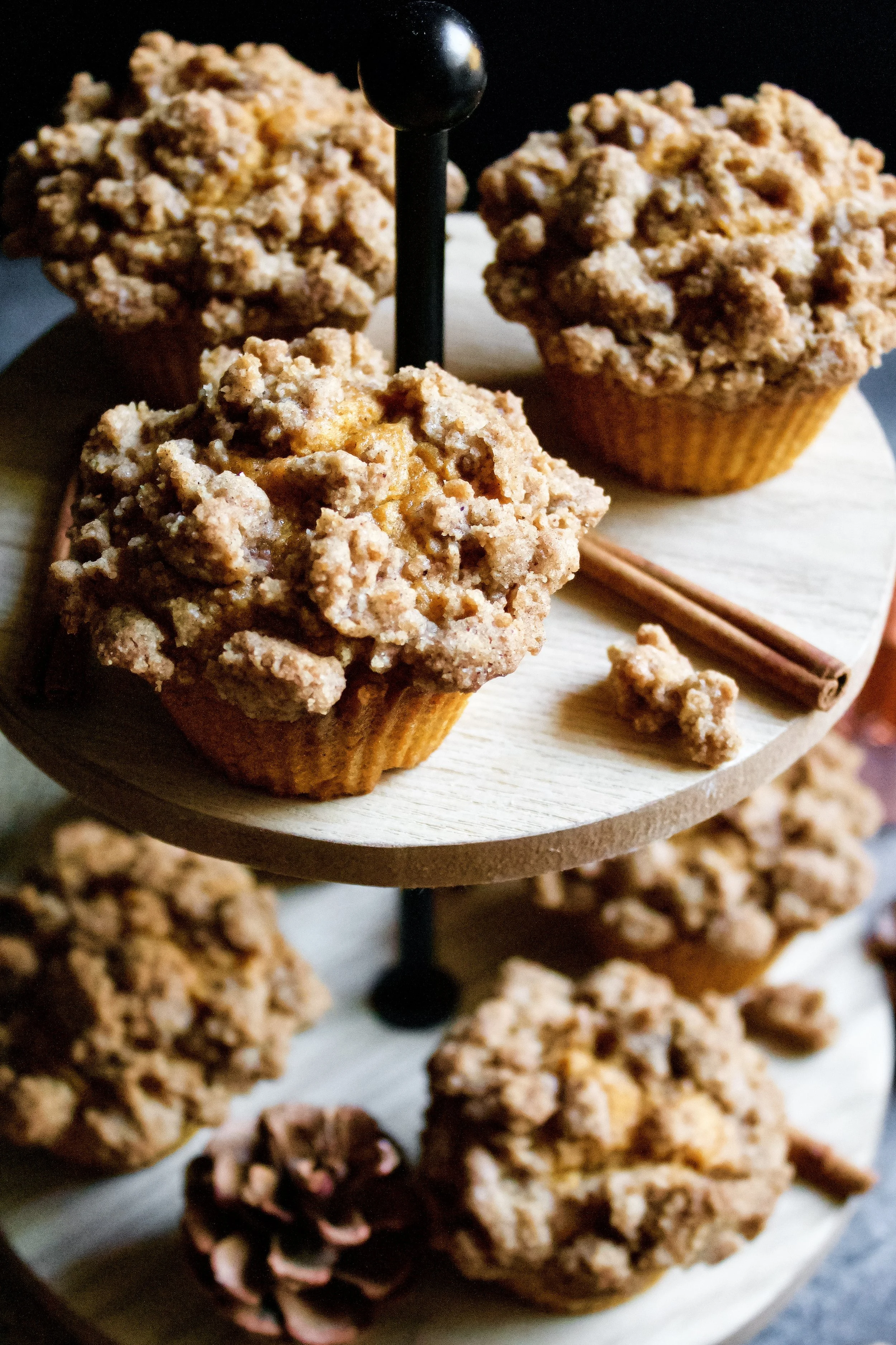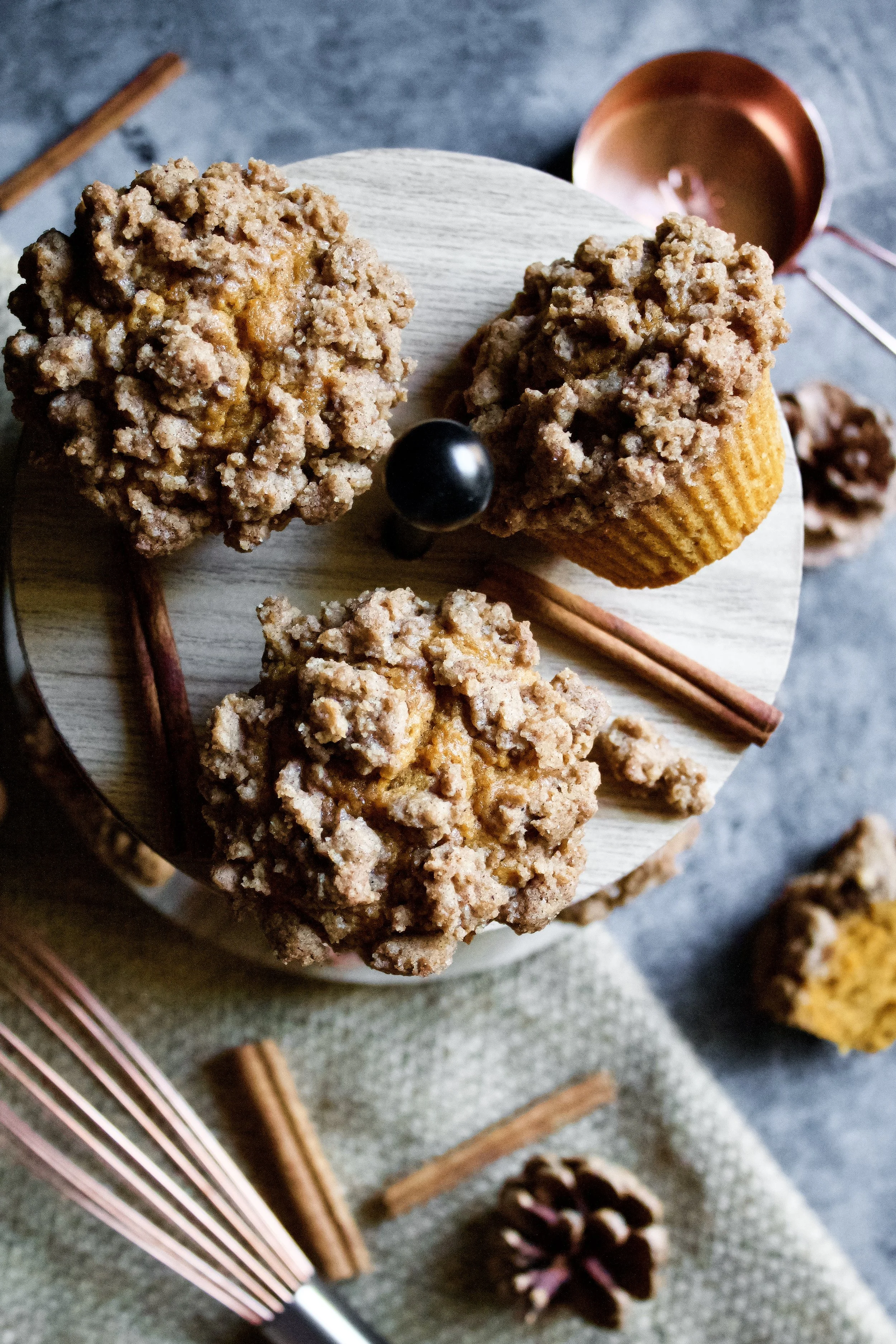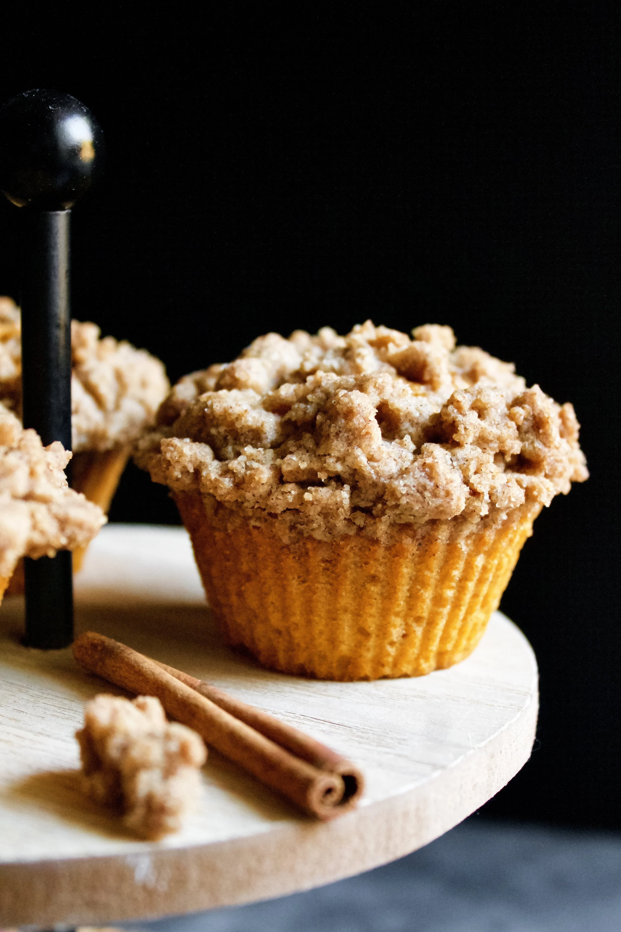 Tender, flavorful pumpkin muffins topped with a delicious pumpkin spice streusel. These muffins will keep for days and are perfect with your morning pumpkin spice latte or with a lovely fall brunch.