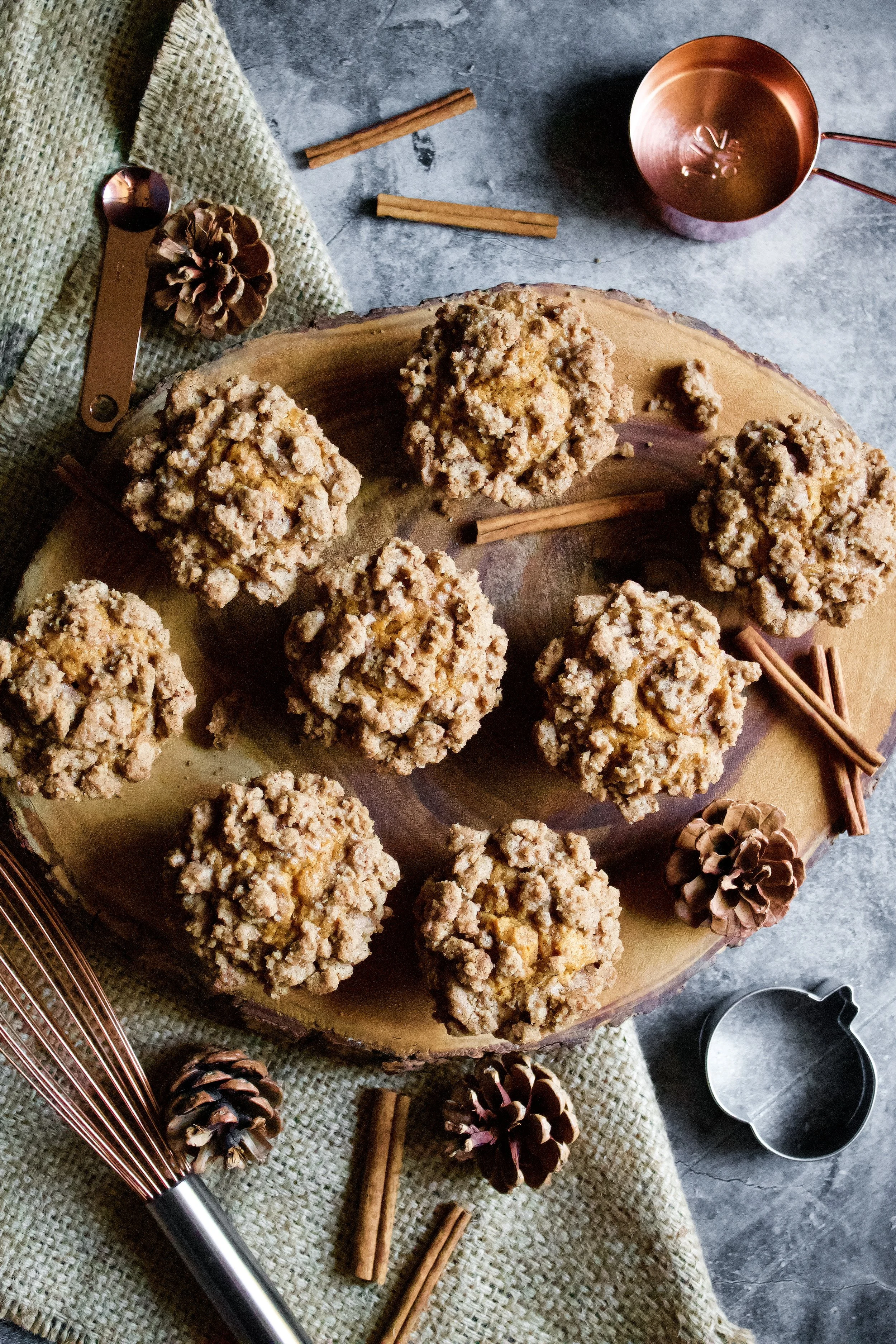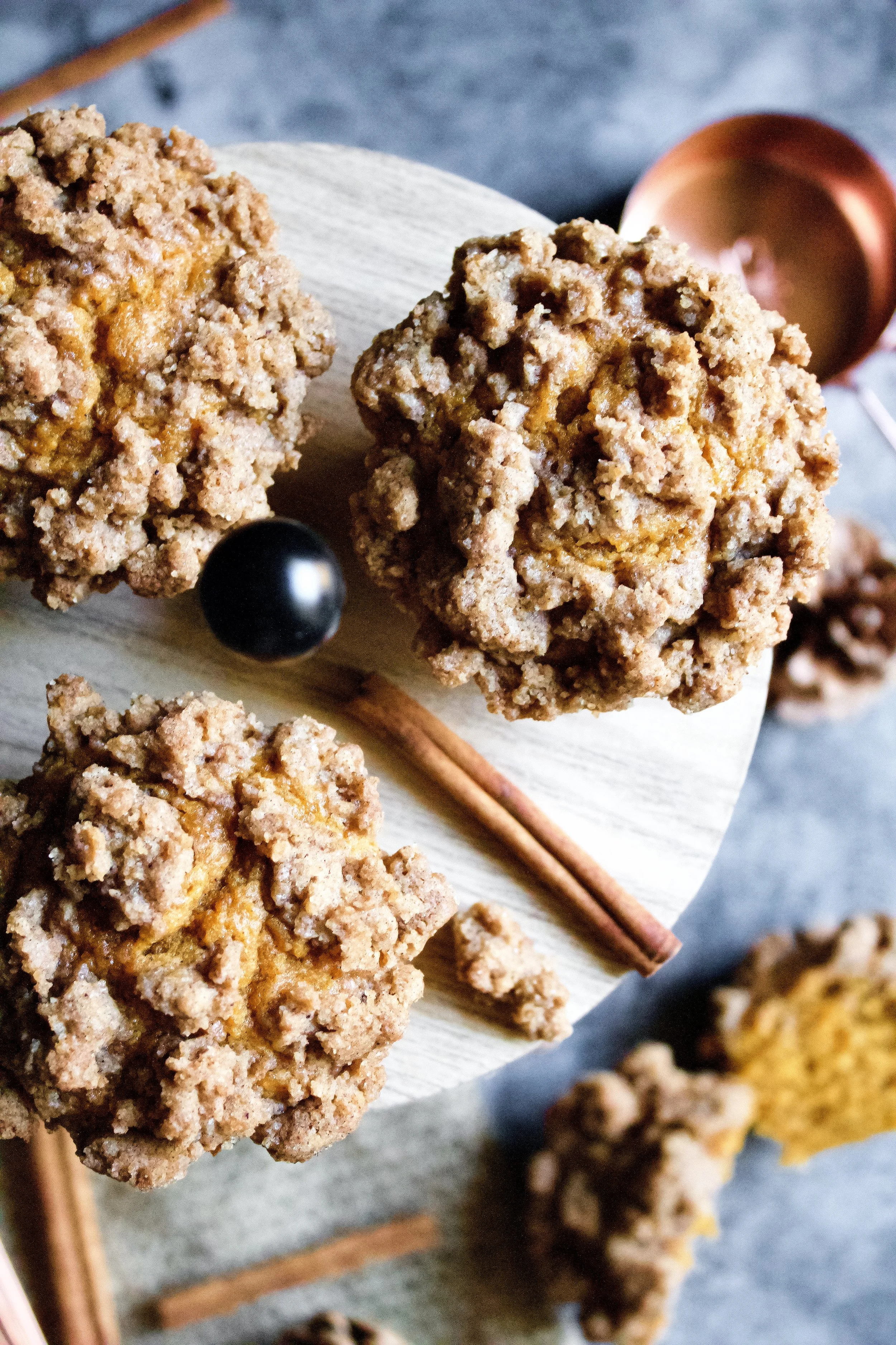Then there’s the cinnamon streusel. I love this streusel. It’s my go-to, because it’s simple yet bakes up with a lovely crunchy texture and has just the right amount of pumpkin pie spice, with extra cinnamon. It can sometimes fall off the muffins a little, but I don’t see this as a problem so much as a little treat I get to sneak off the pan as they cool.