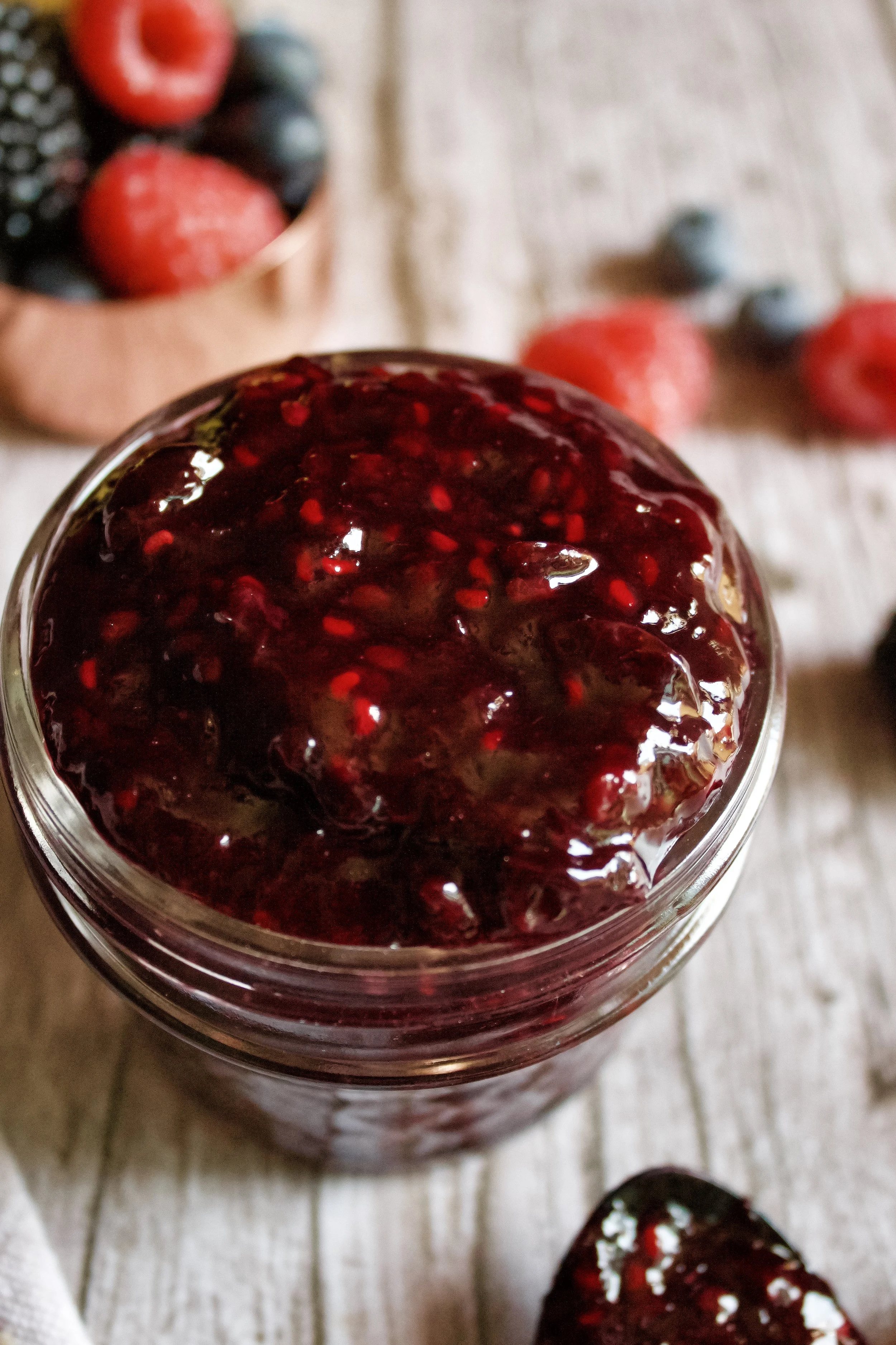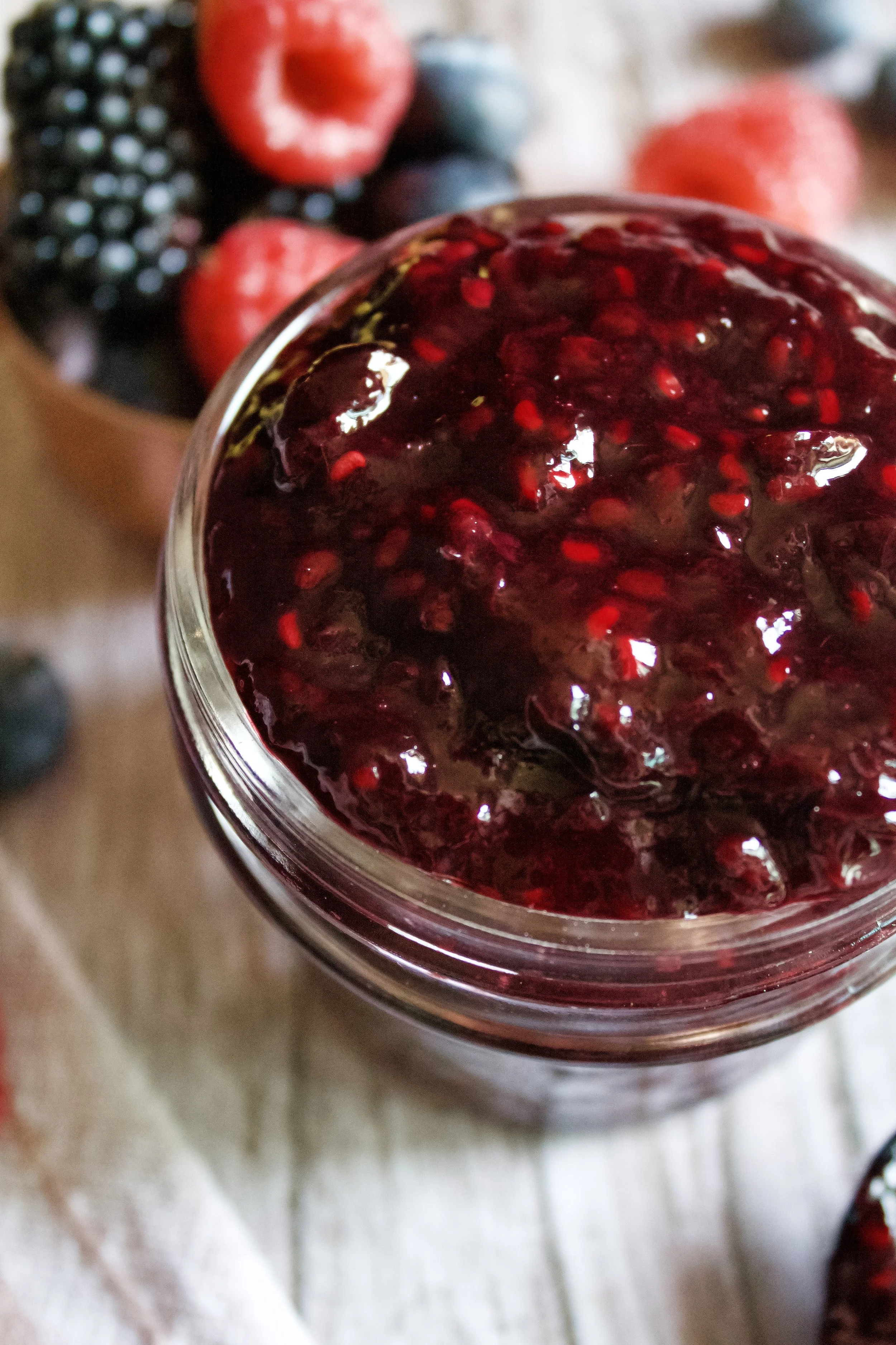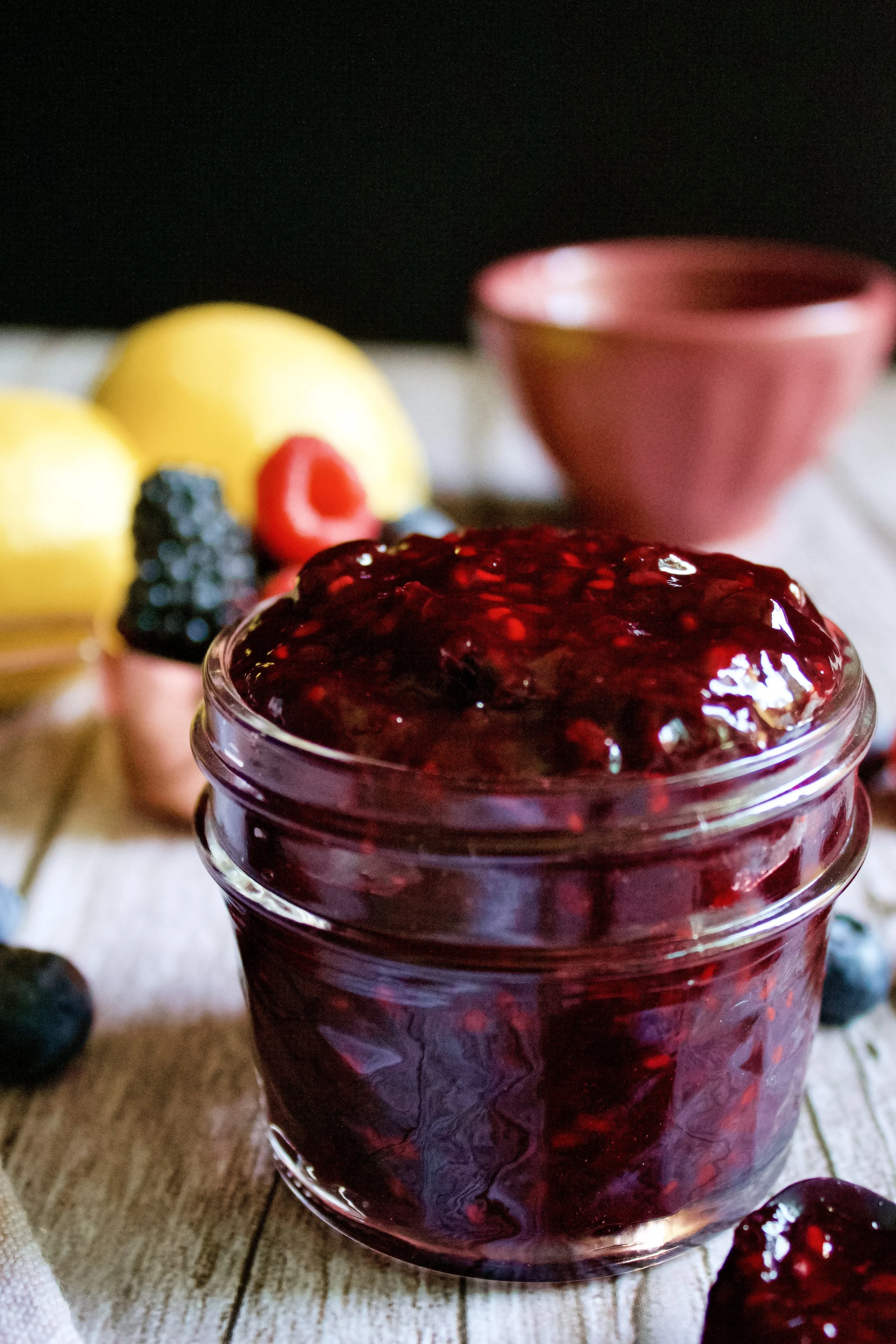 A simple mixture of raspberries, blackberries, and blueberries, cooked into the most delicious compote. Use this on biscuits or scones, to fill cakes, or swirl into ice cream. The possibilities are endless with this versatile, always yummy spread.