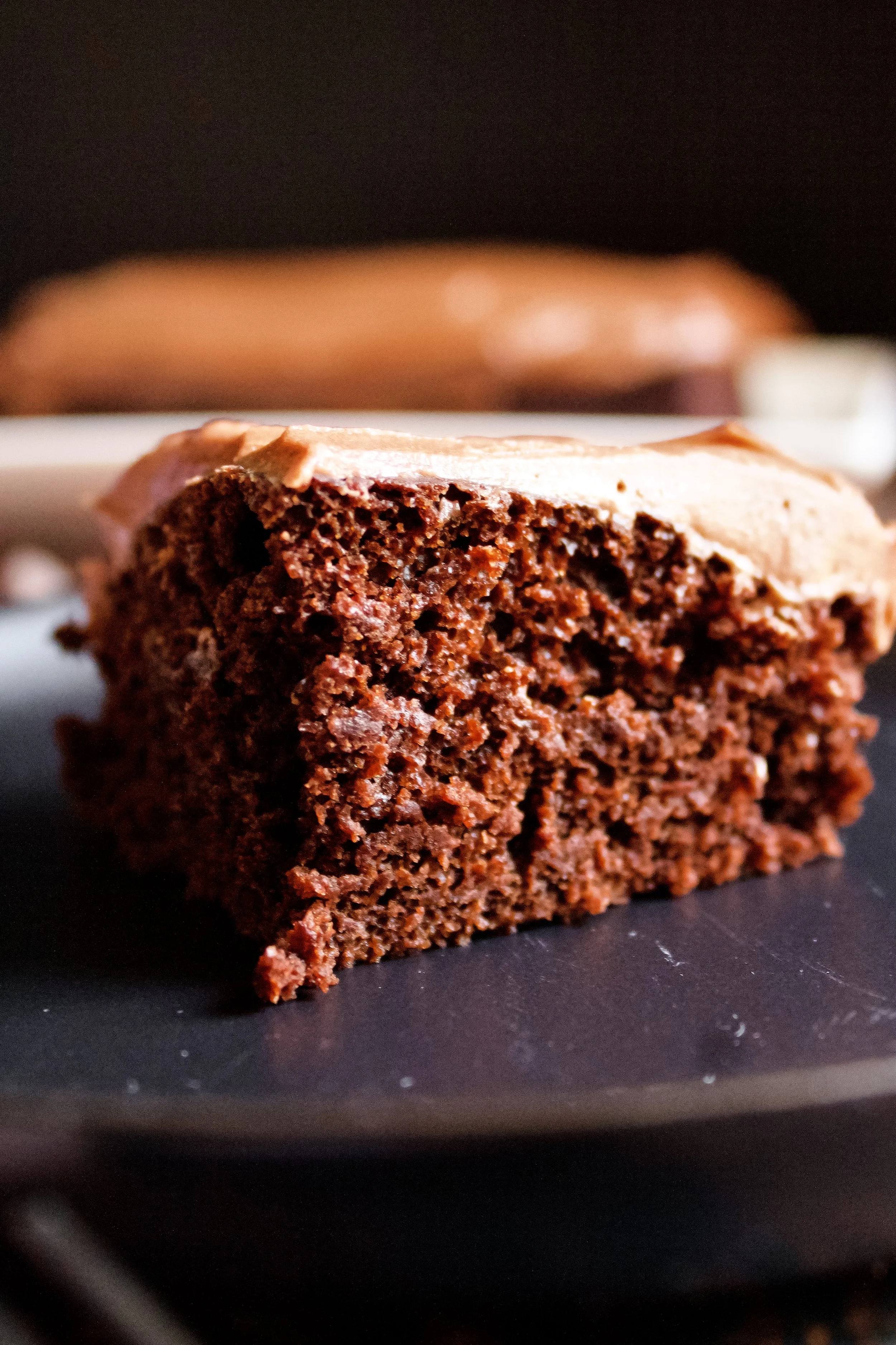 Sifting dry ingredients is KEY in baking, especially for baking cakes and extra important with chocolate cakes. You always want to ensure the cocoa is sifted because it can create little pockets of cocoa that never get mixed in and thus don’t bake. The one time I made this cake without sifting the dry ingredients, it turned out dense and chewy and just not good. So trust me—sift!