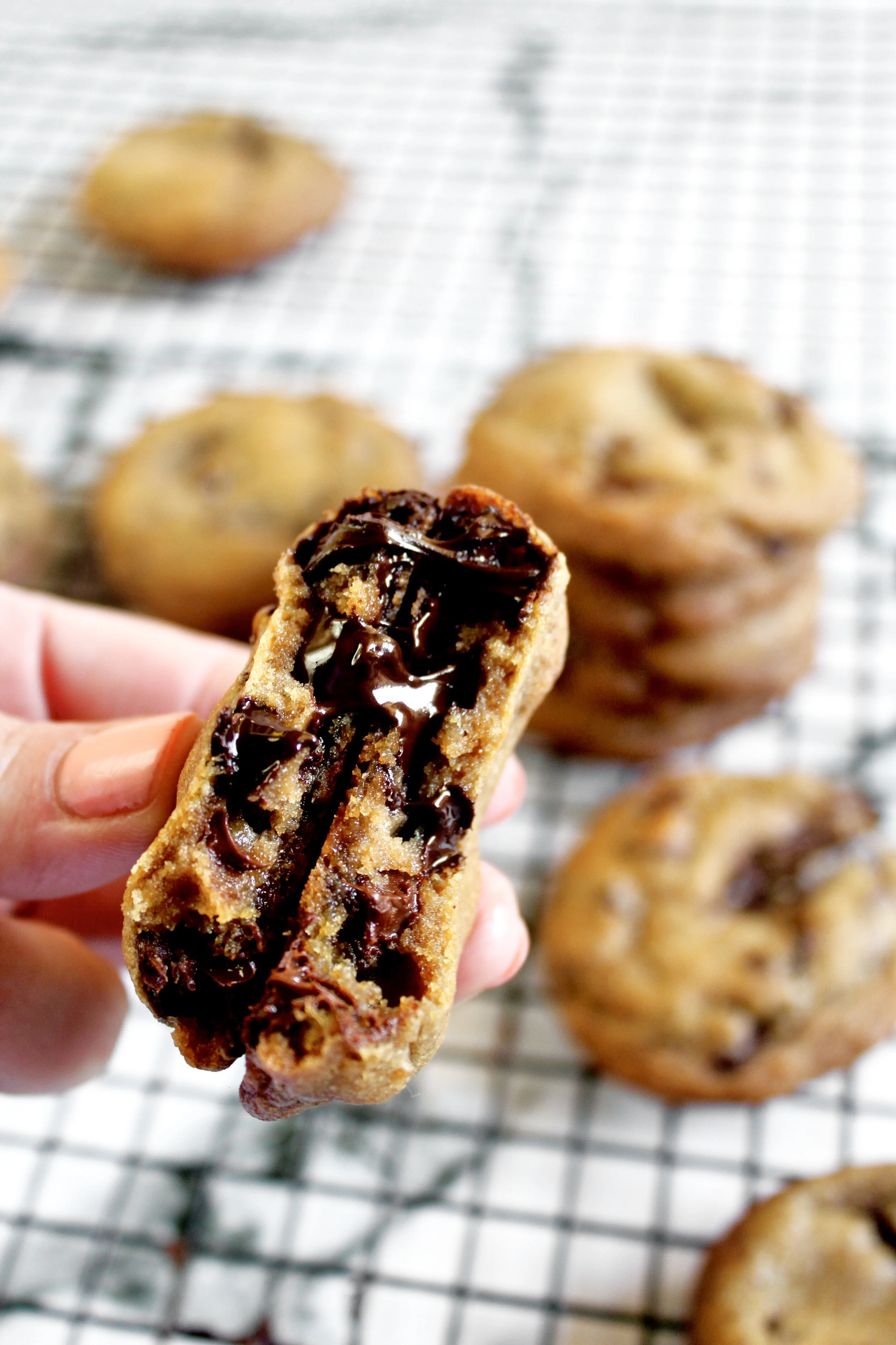 Browned butter gives these cookies crispy edge and gooey center along with a delicious depth of flavor that is perfectly complemented by the chocolate chips. These are my go-to cookie, a favorite to keep on hand or serve at parties!