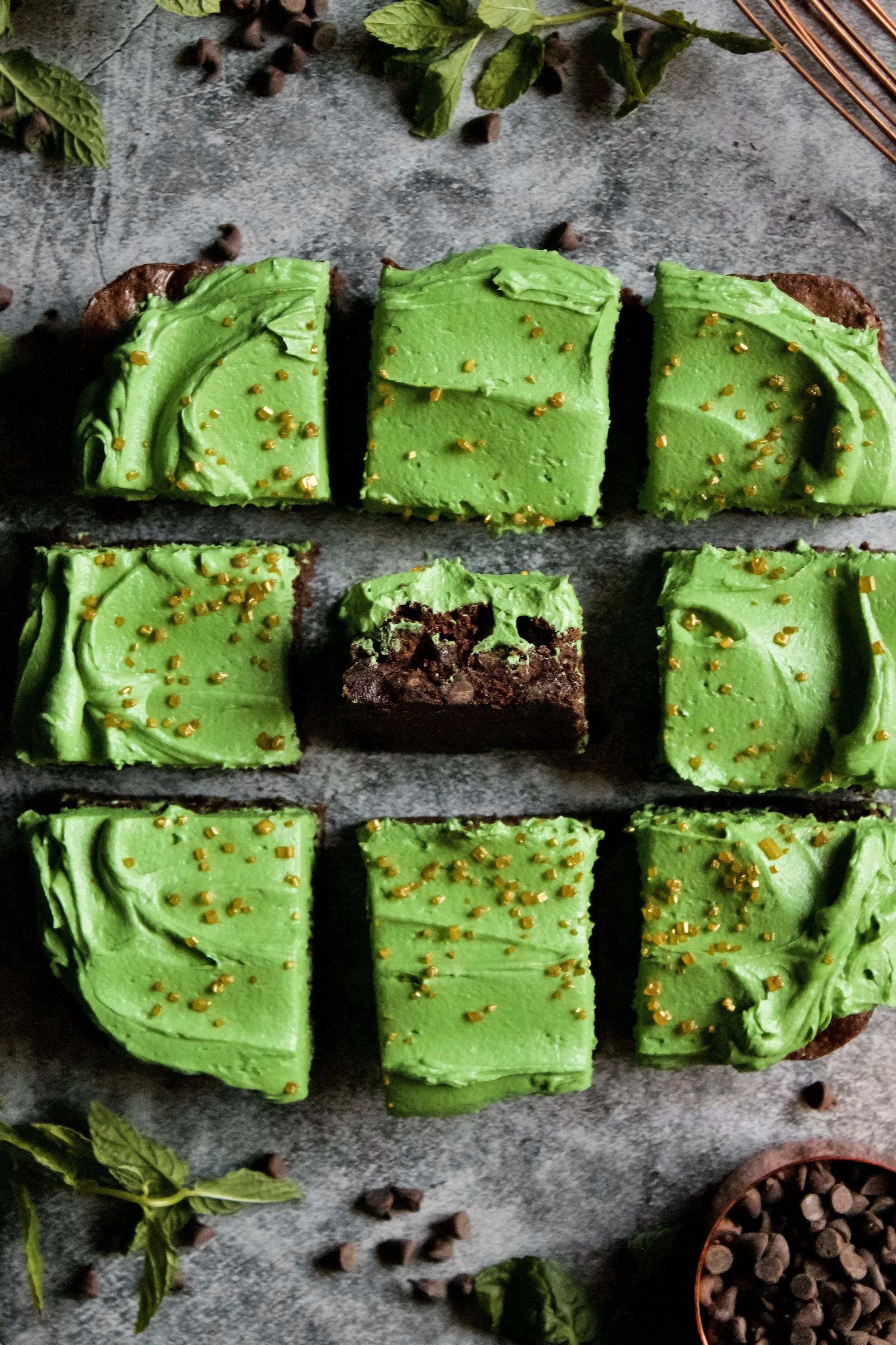 Fudgy fresh mint brownies topped with green mint buttercream. These are a perfect St. Patrick’s Day treat for kids and adults alike!