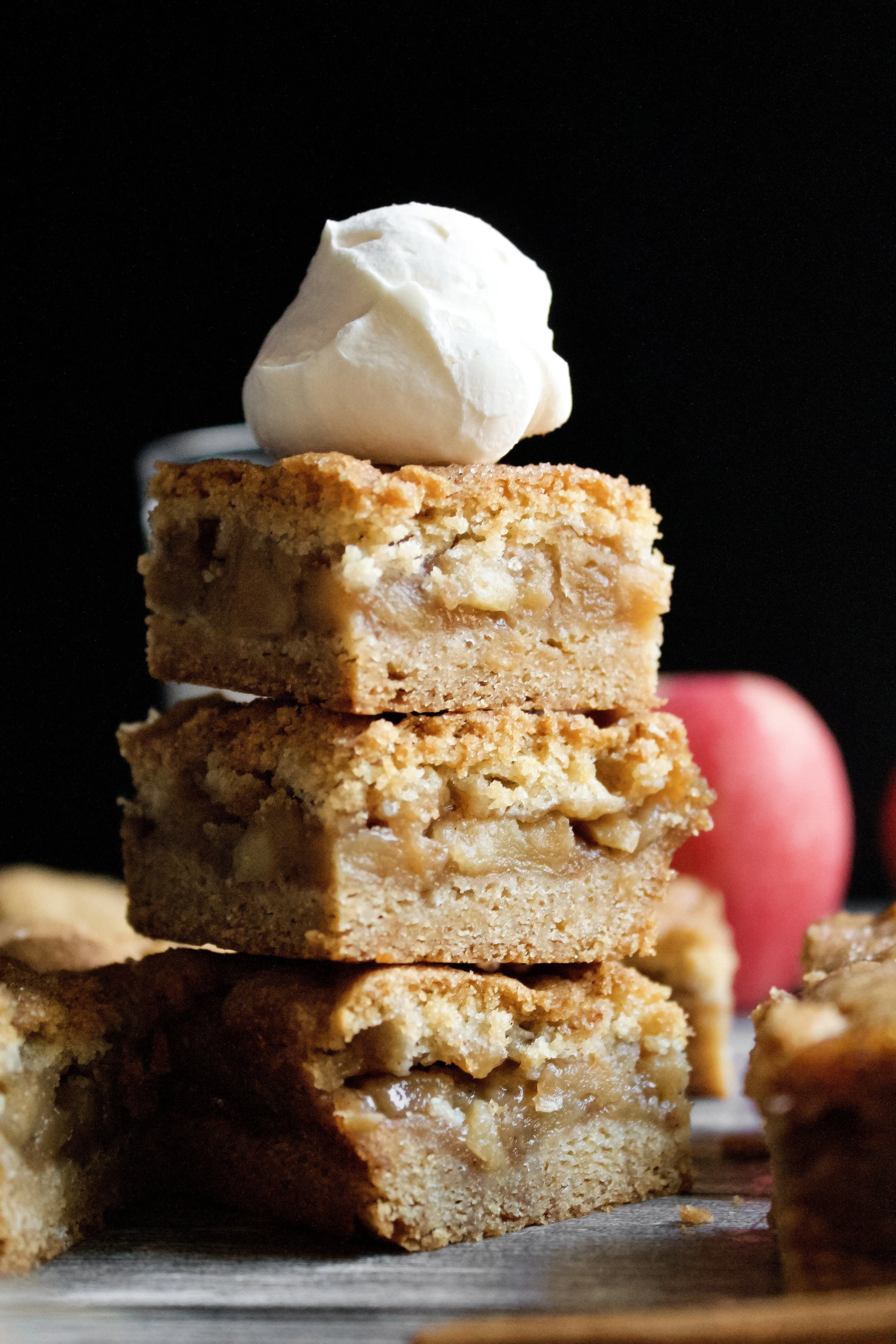 Delicious double cinnamon snickerdoodle cookie dough filled with apple pie filling and baked until perfectly crispy on the edge and chewy in the middle. These easy bars are bursting with vibrant fall flavors and have such a lovely variety of textures. They’re like apple pie with the best twist ever!