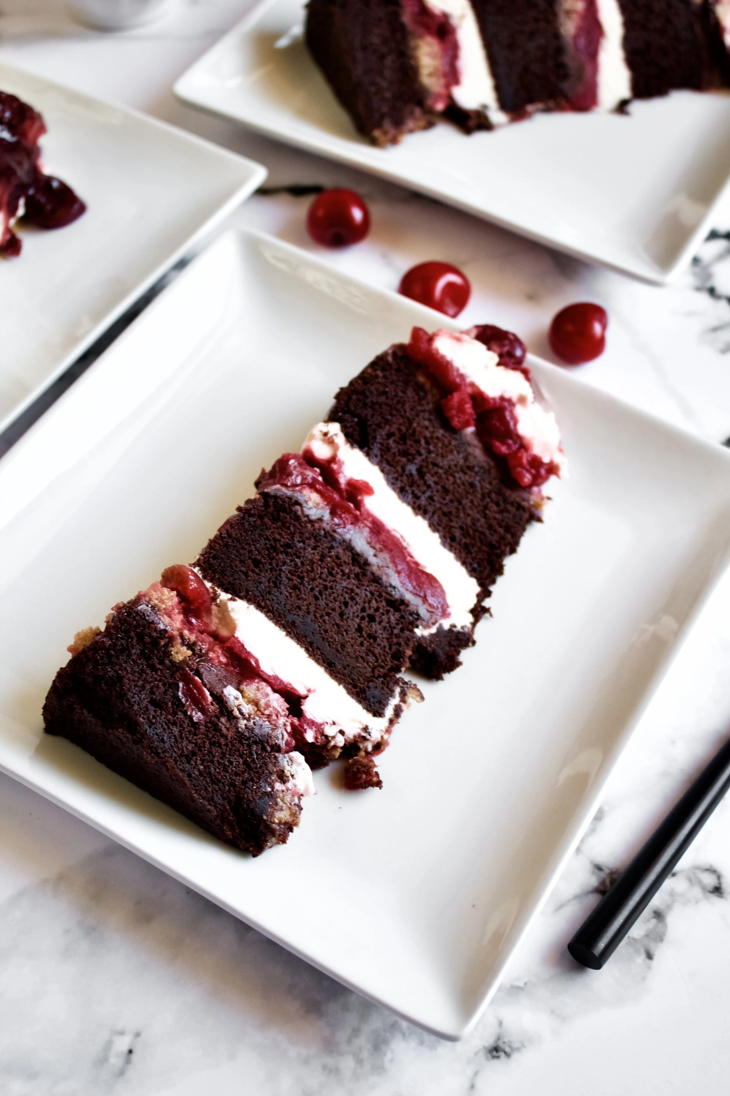 Moist chocolate cake layered with cheesecake and cherry pie fillings, graham cracker crumbles, and rich chocolate ganache. This cake is a bit like a Black Forest Cake meets cherry cheesecake. It can easily be made ahead of time so you can enjoy this decadent (yet fairly simple) cake for any big event—or just because!