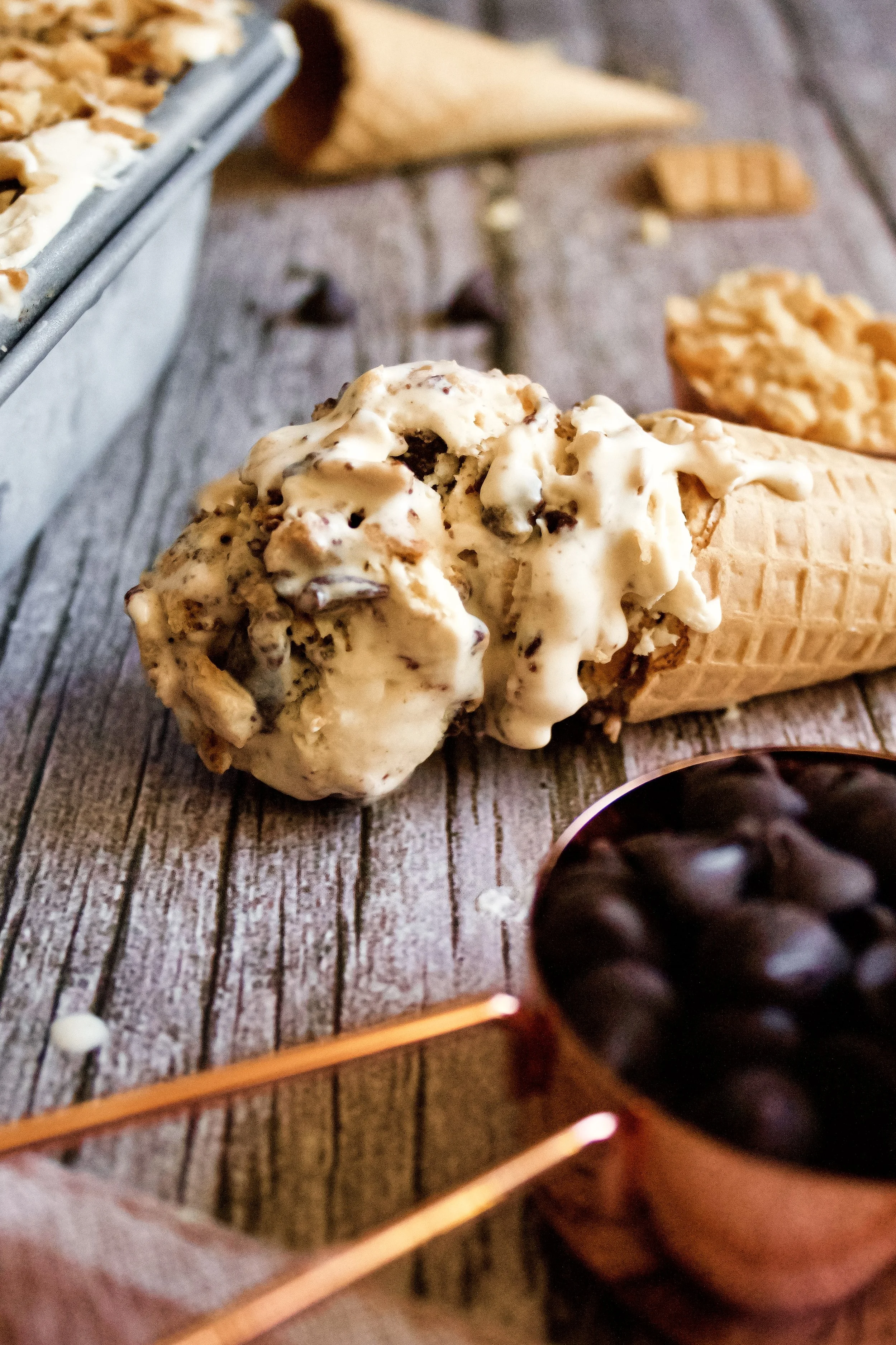 Creamy cinnamon spice ice cream swirled with apple pie filling and graham cracker crust. This flavorful ice cream is perfect when you want both a cold treat and the taste of fall!