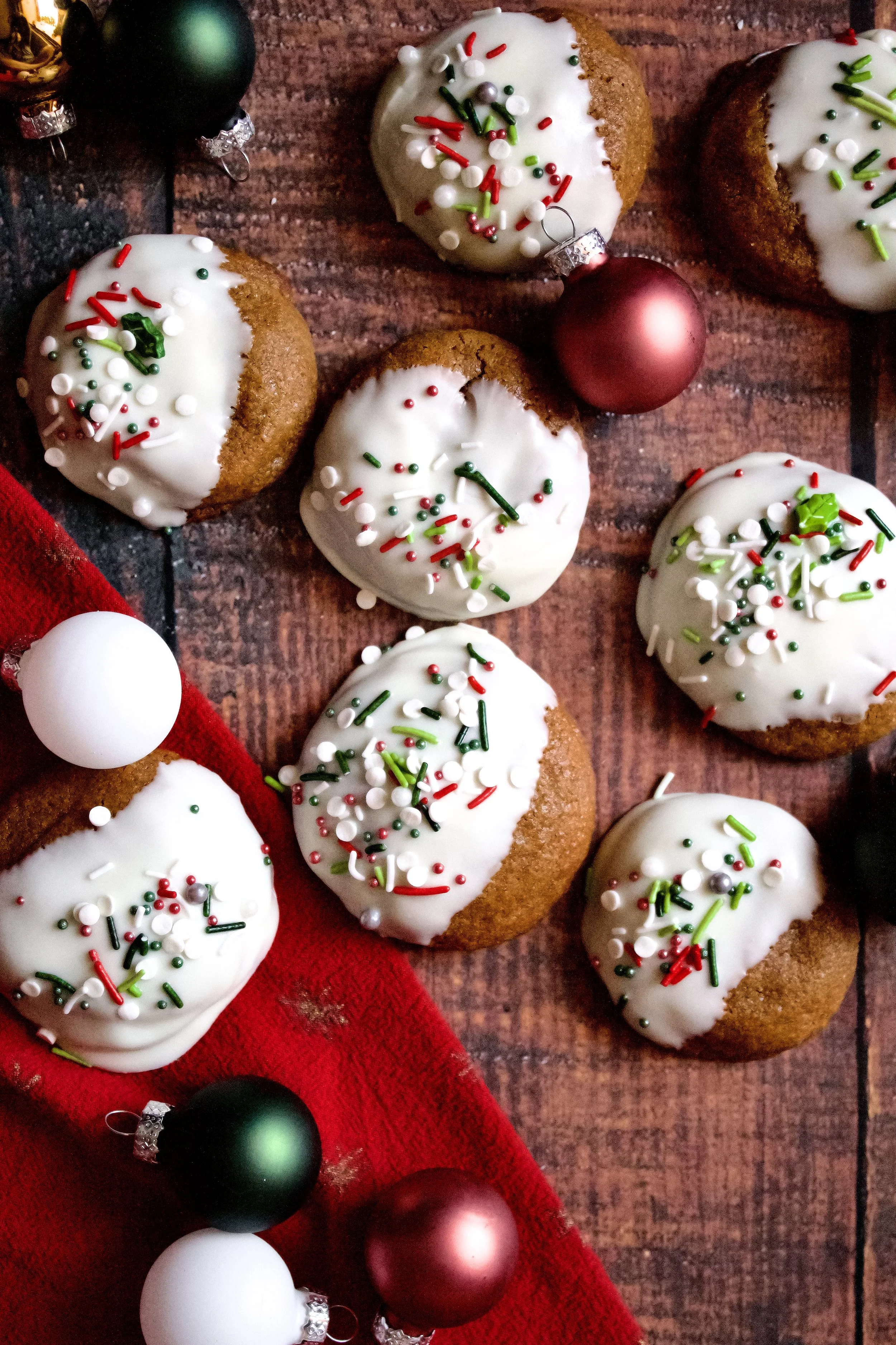 White Chocolate Dipped Chewy Gingerbread Cookies