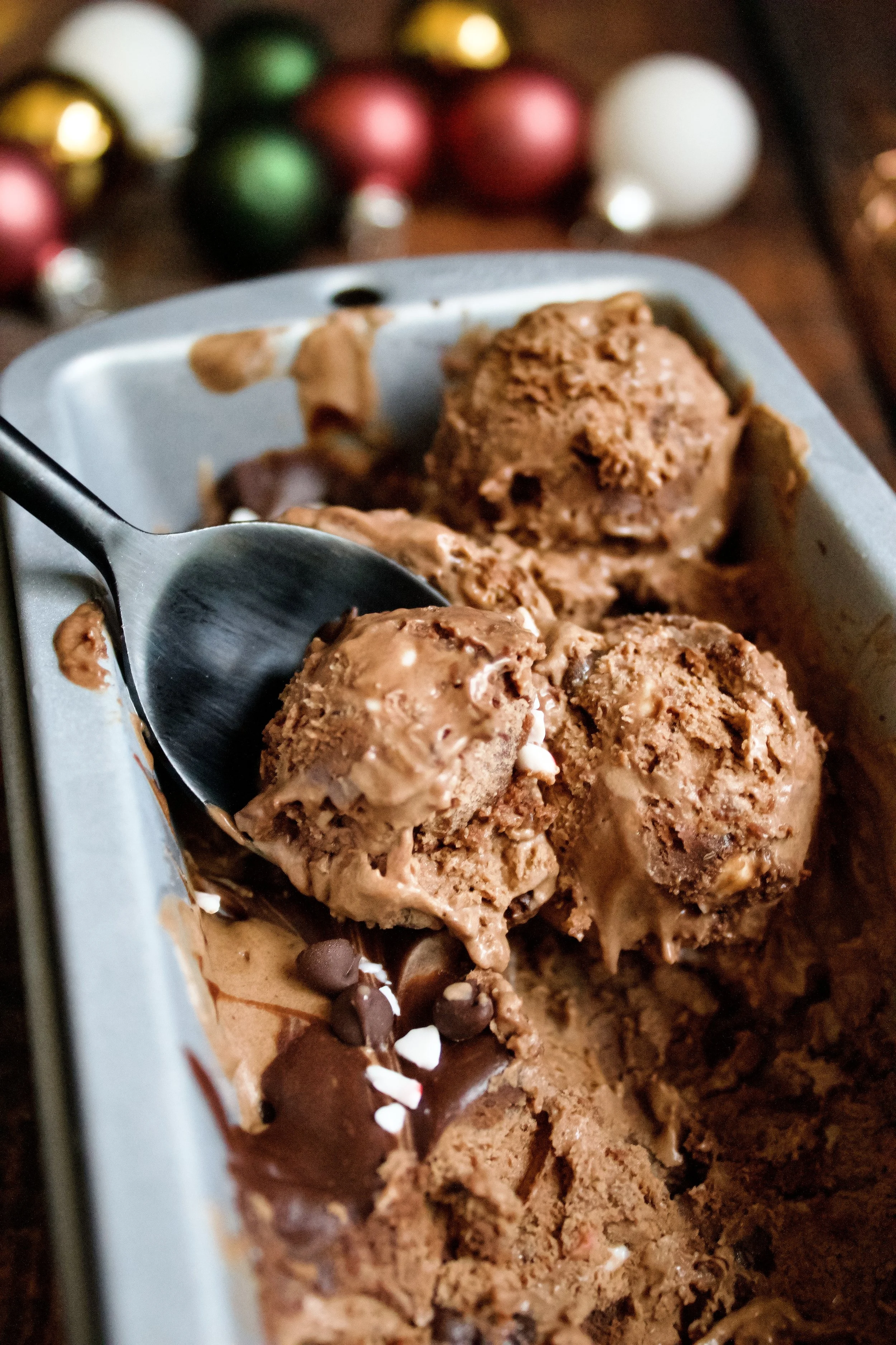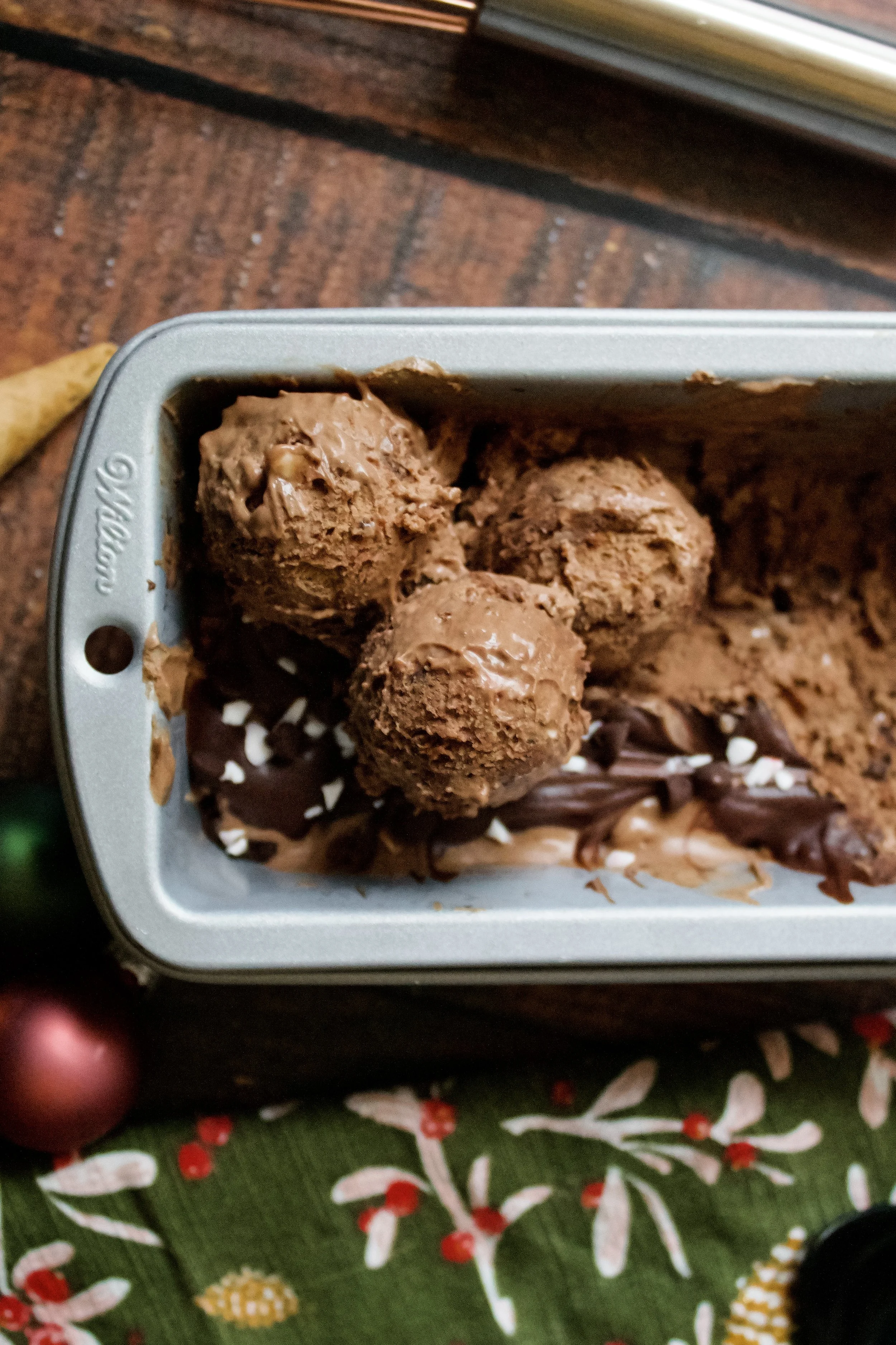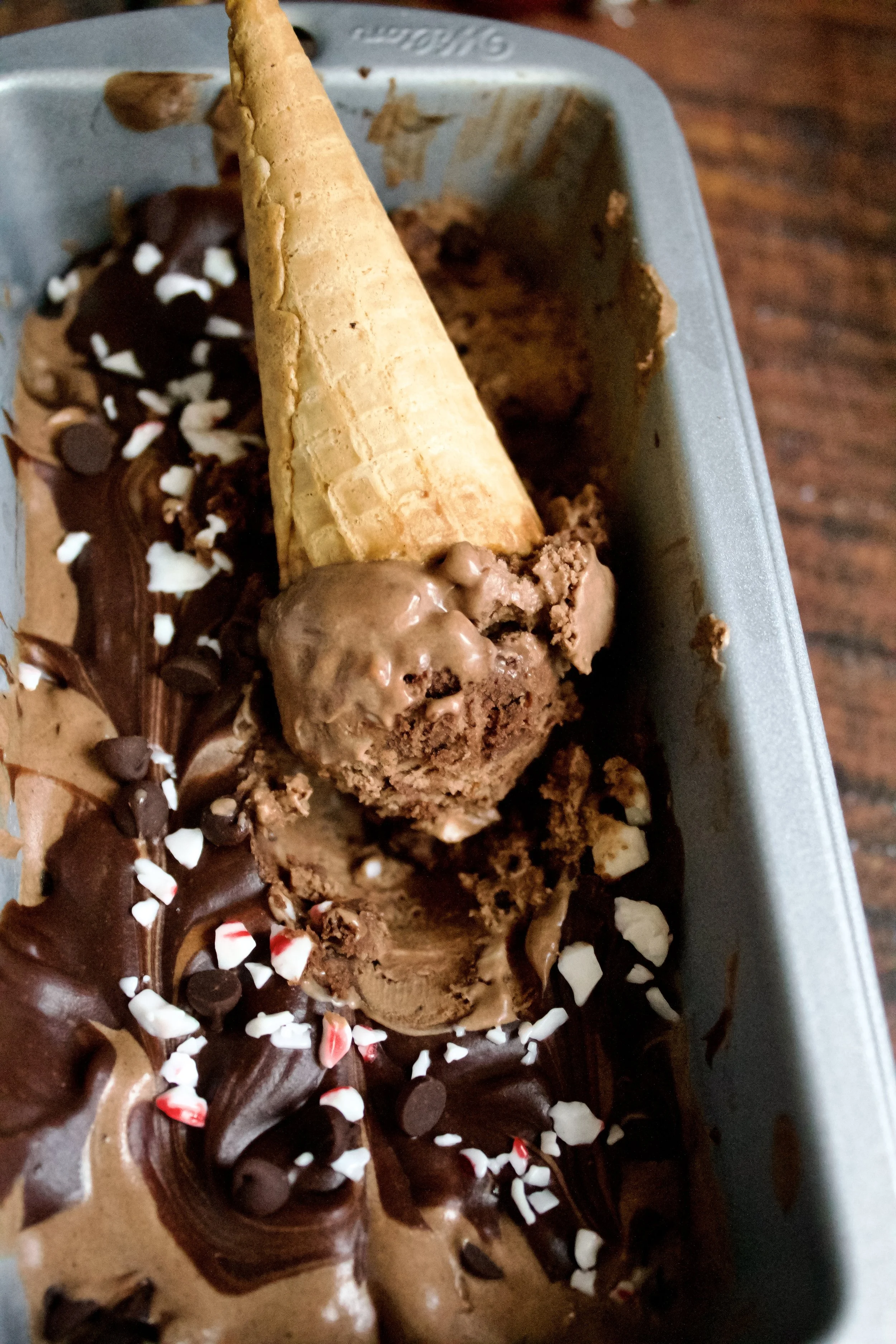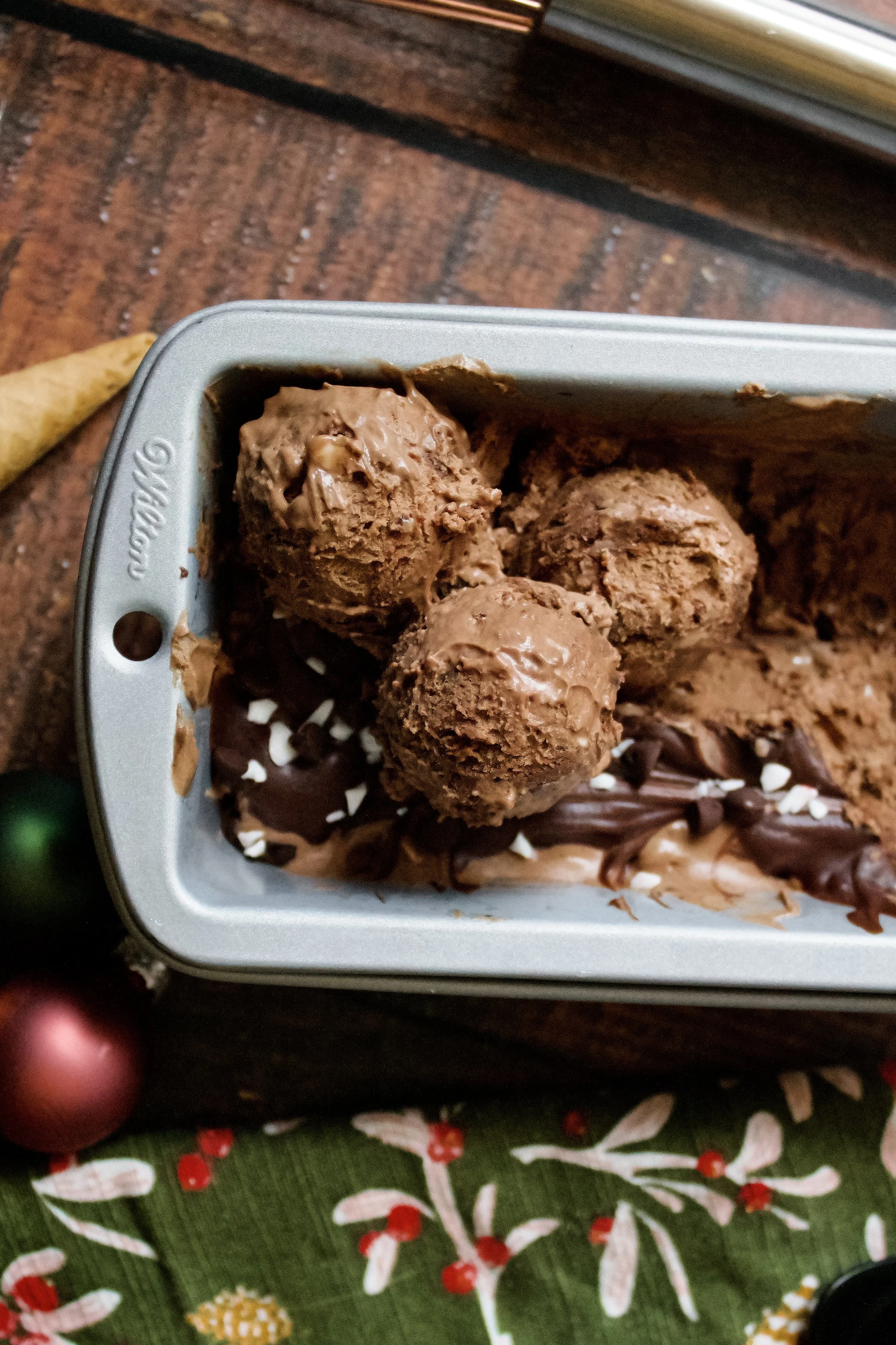 That creamy, silky chocolate ice cream pairs perfectly with the candy cane pieces. You have creamy, you have crunchy, you have sweet, you have minty—you have all the things.