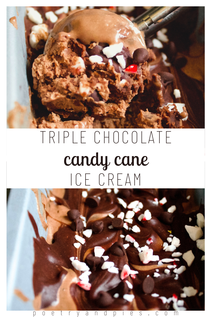 Rich and creamy slow-churned triple chocolate ice cream filled with candy cane bits for that holiday flavor and crunch! Simple to make and always a hit, this is a perfect hit for ice cream lovers during the holidays!