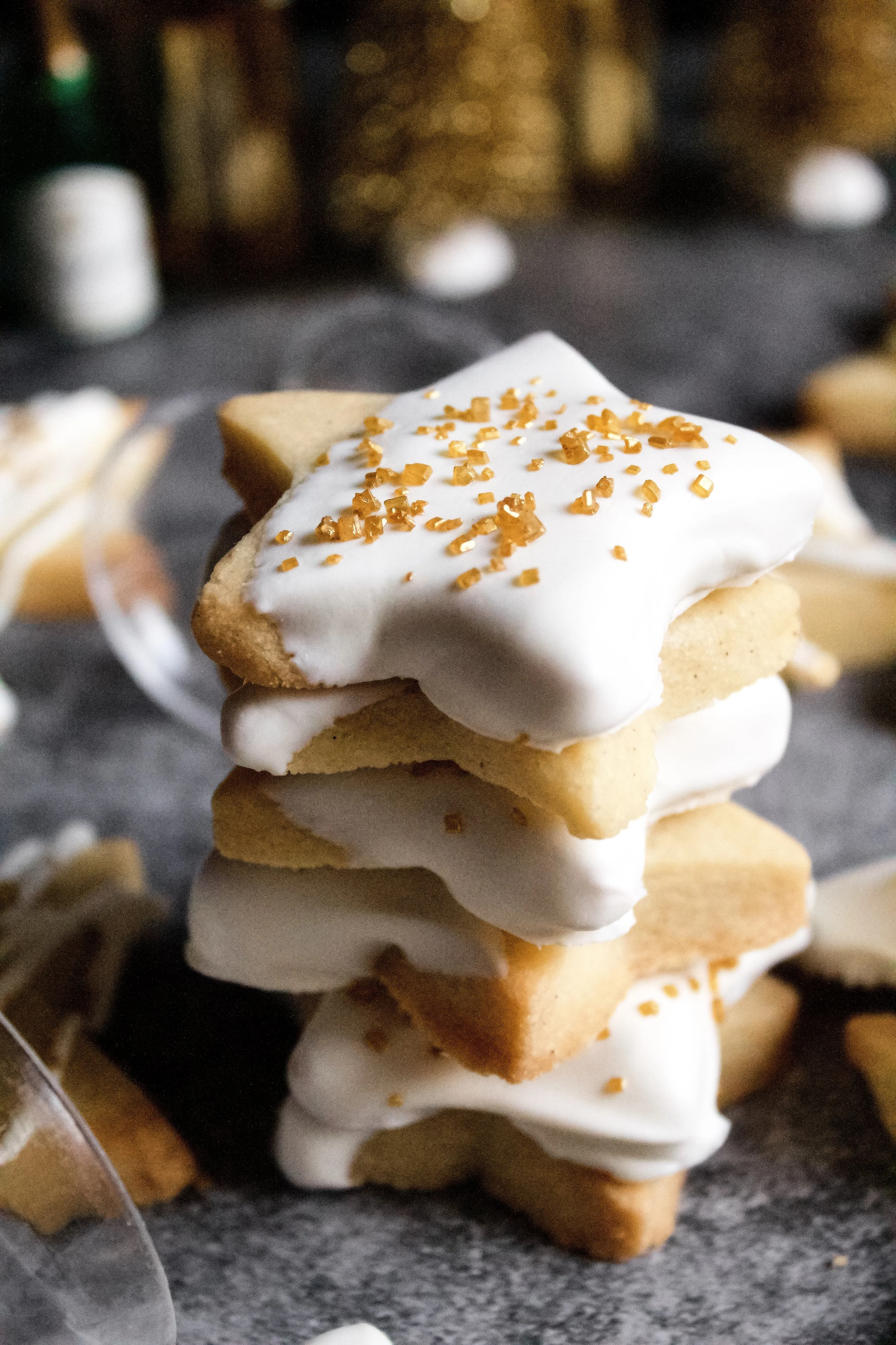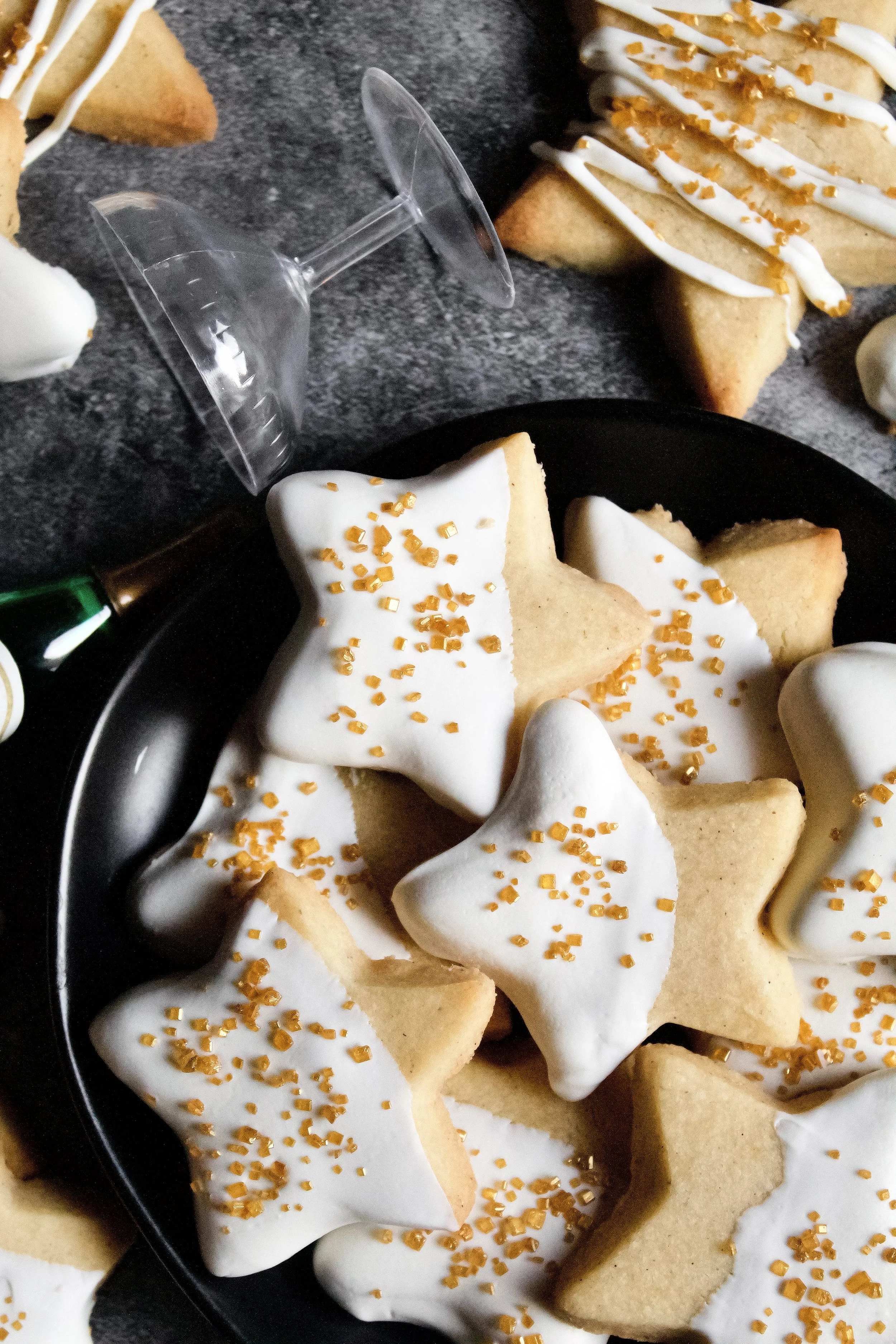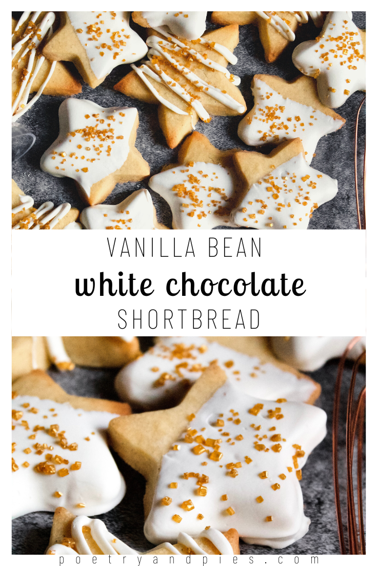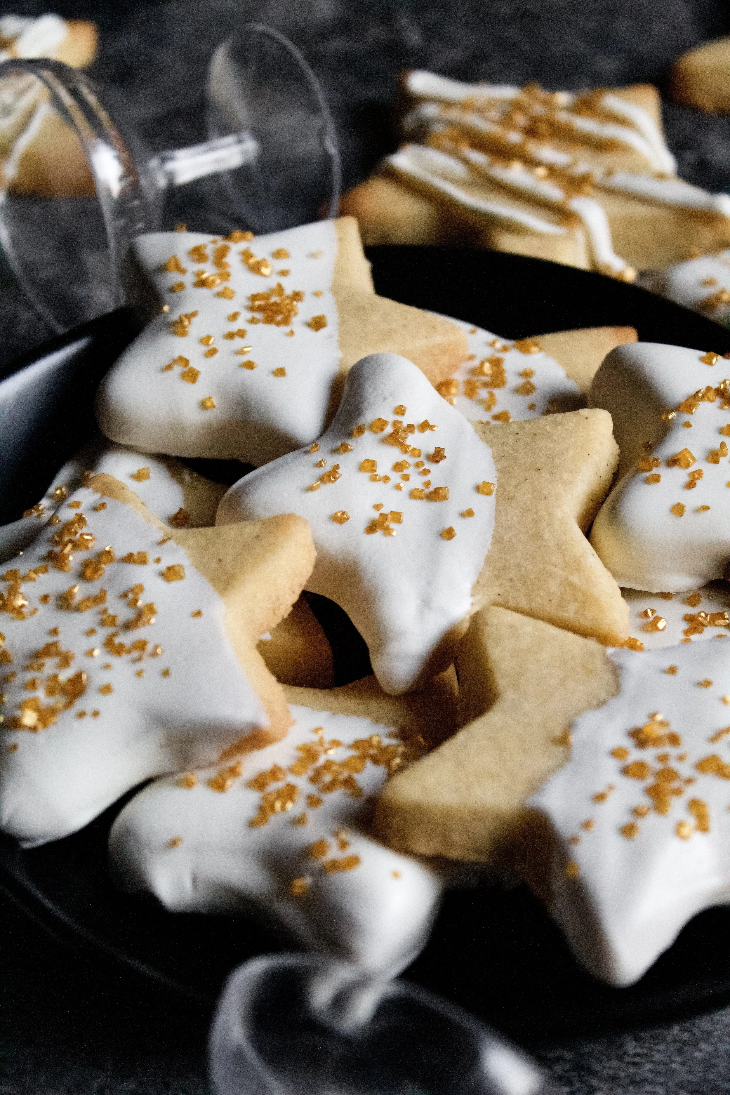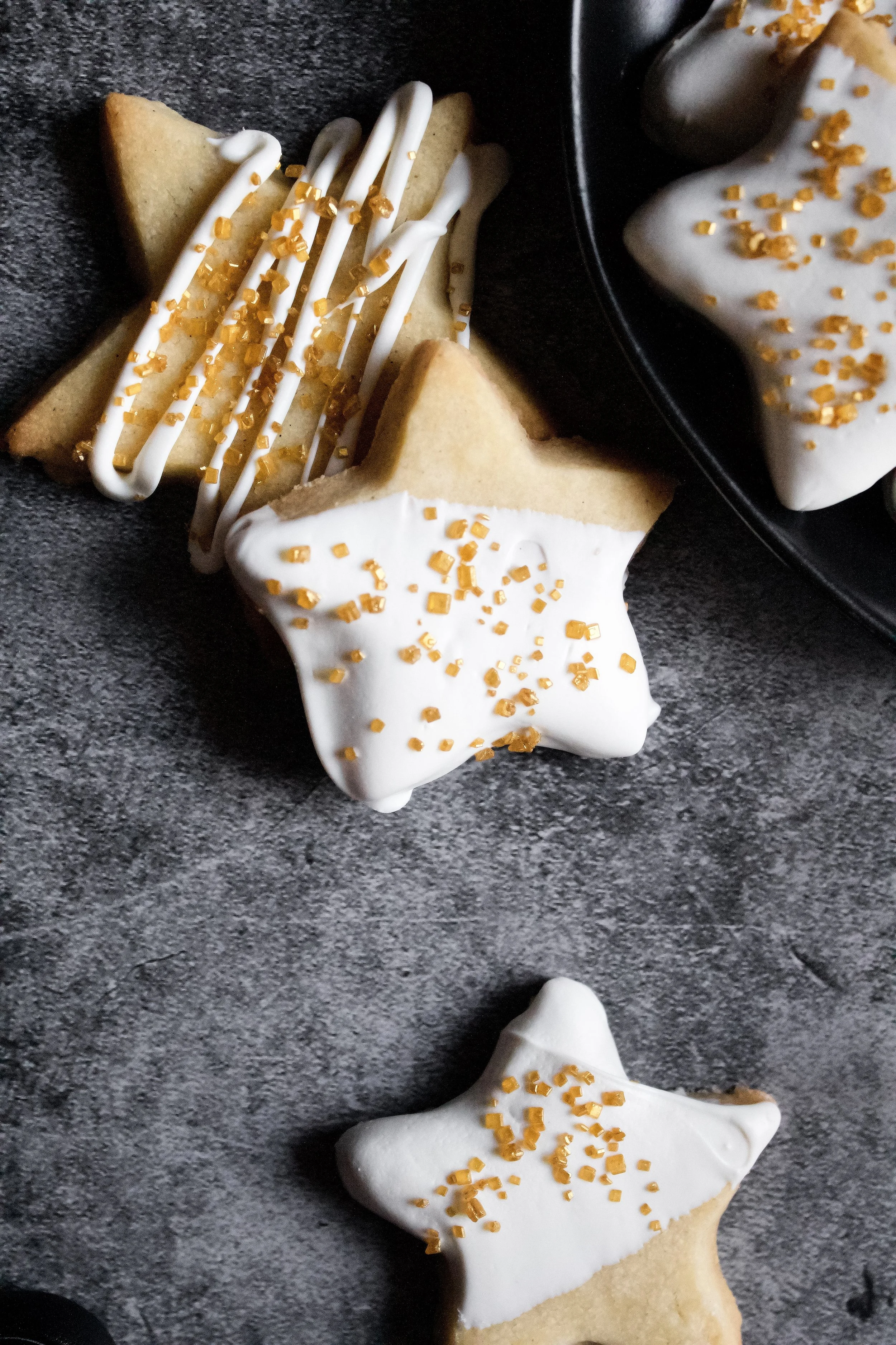 So, instead, I made one of my easiest recipes: shortbread. But not just any shortbread—vanilla bean shortbread. I cut them into stars, dipped them in white chocolate, and sprinkled them with gold sugar.