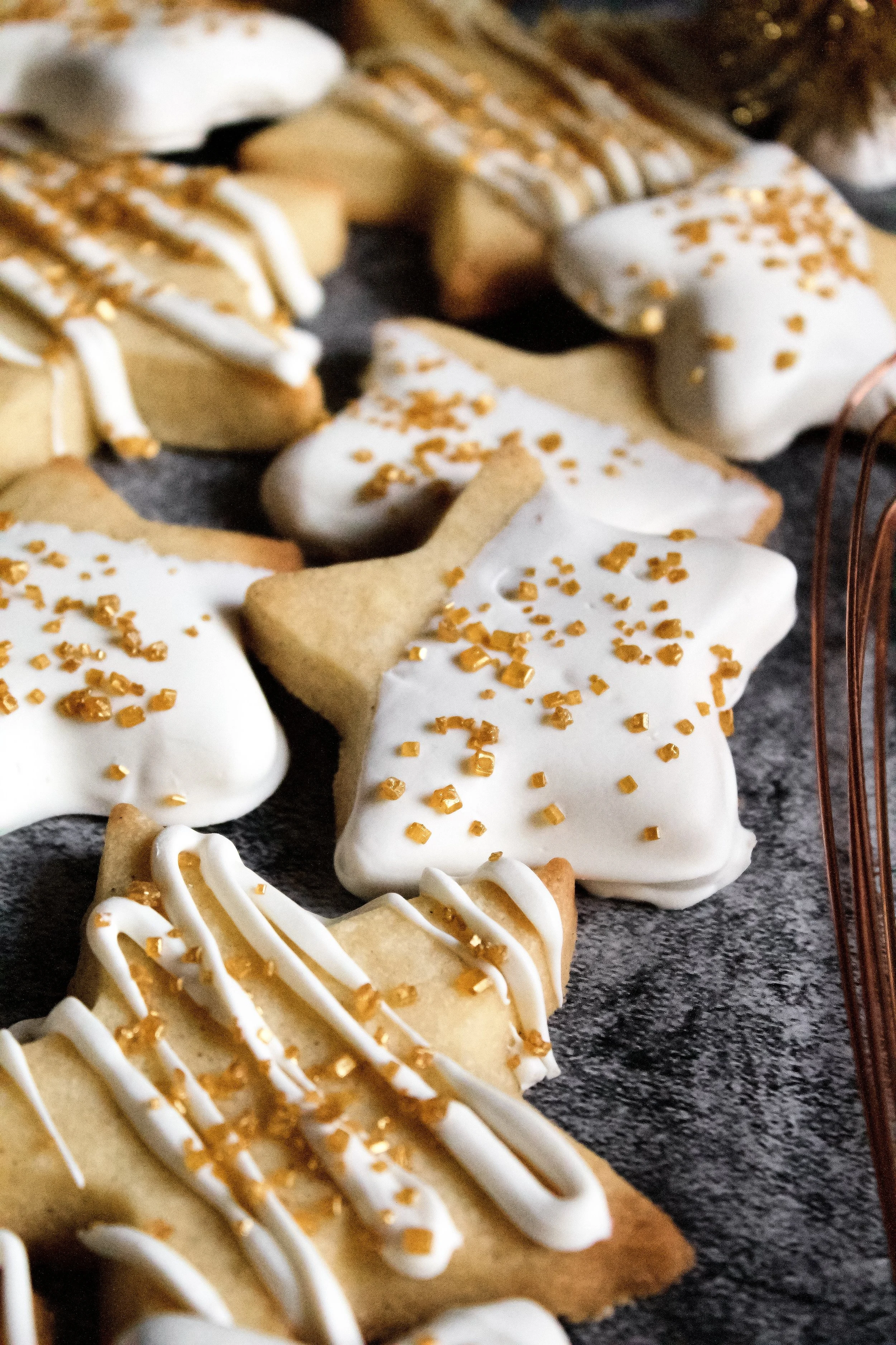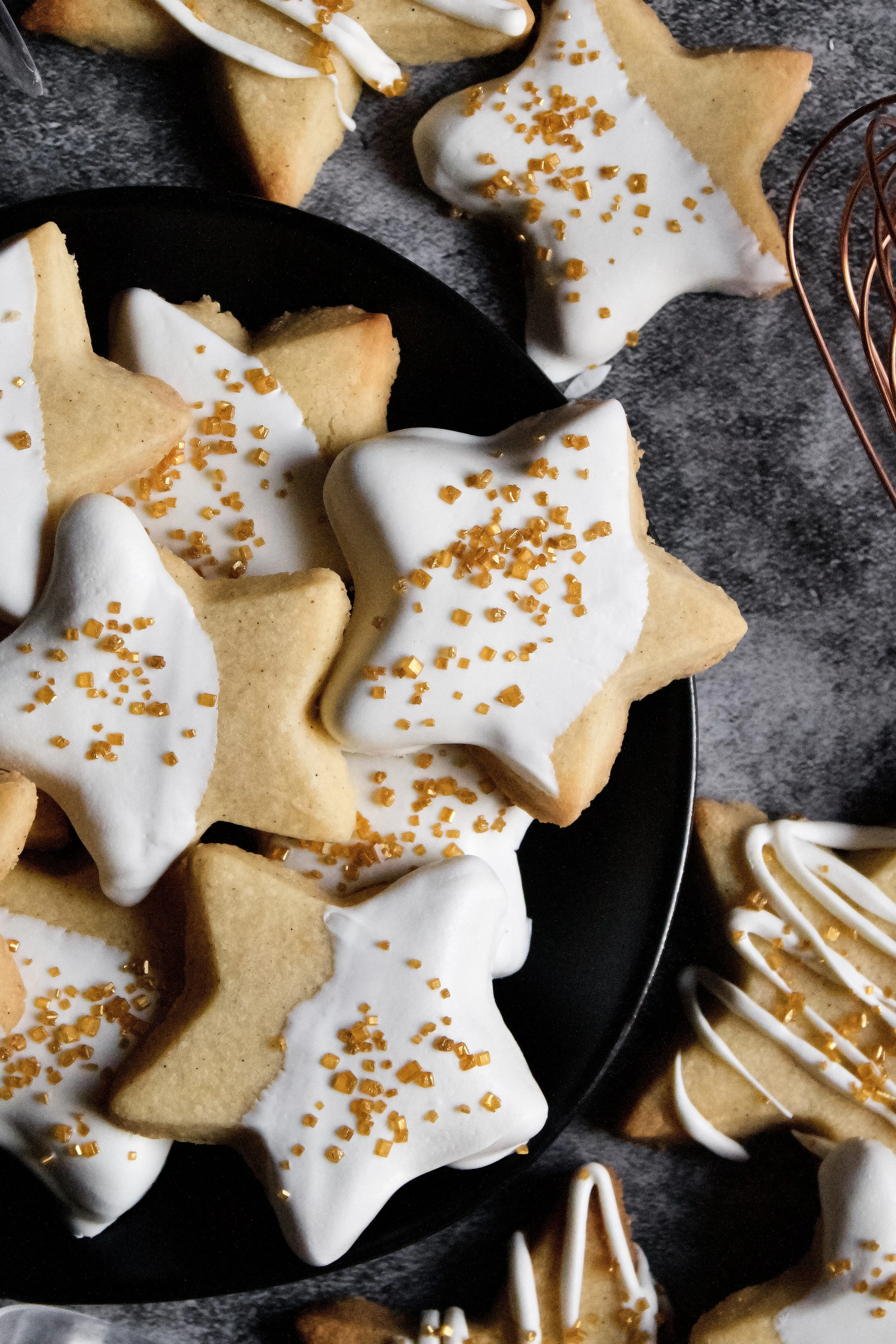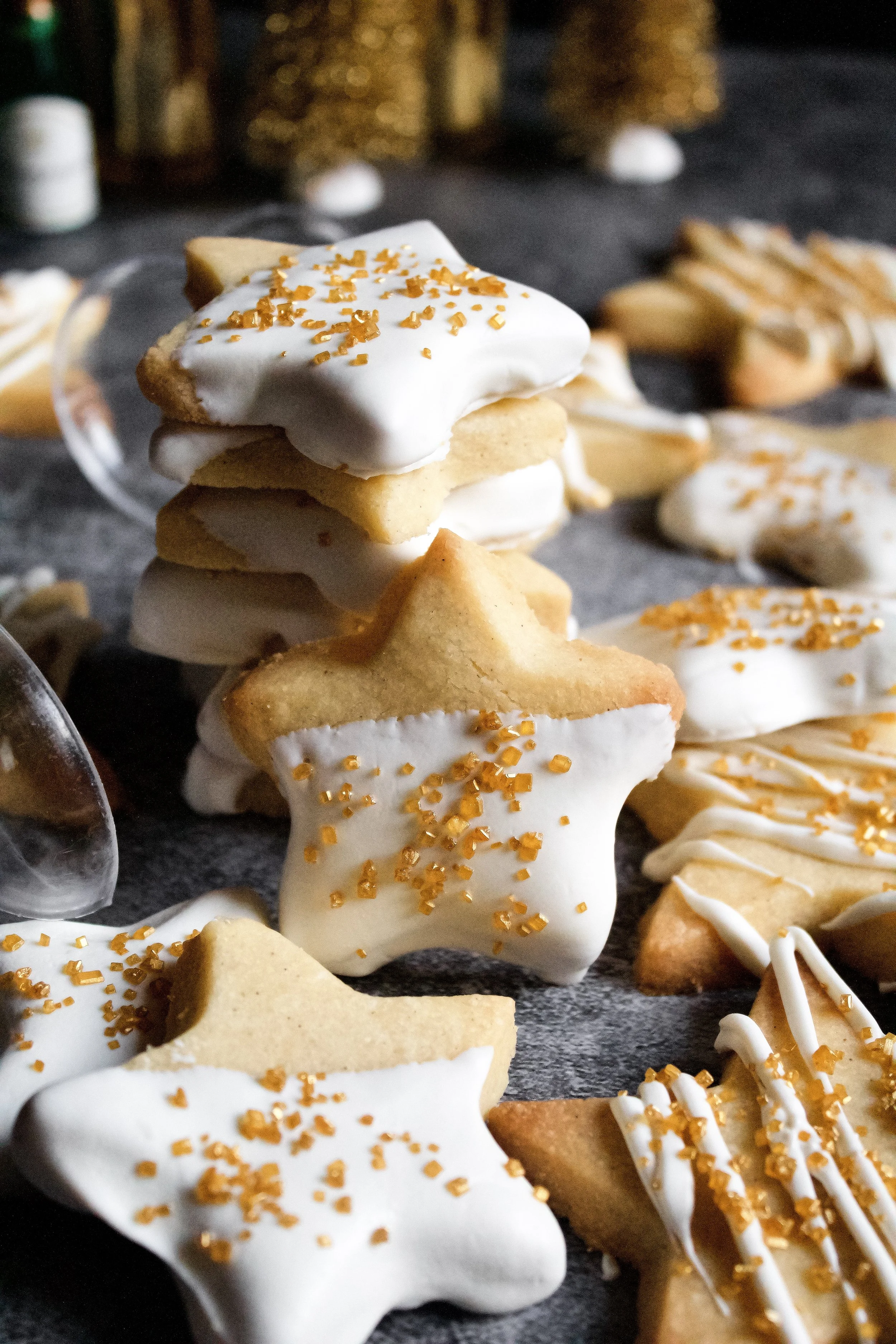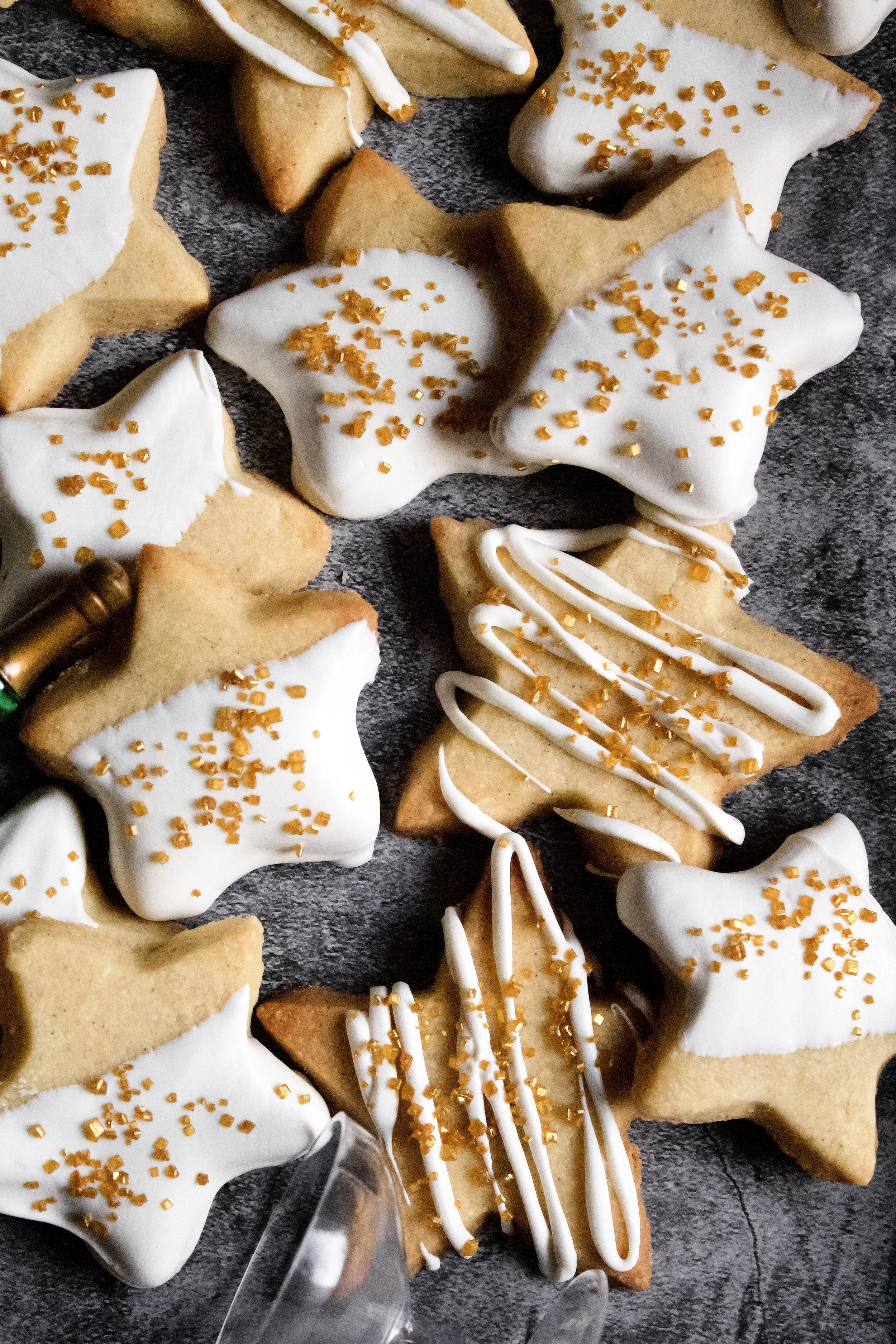 So, instead, I made one of my easiest recipes: shortbread. But not just any shortbread—vanilla bean shortbread. I cut them into stars, dipped them in white chocolate, and sprinkled them with gold sugar.
