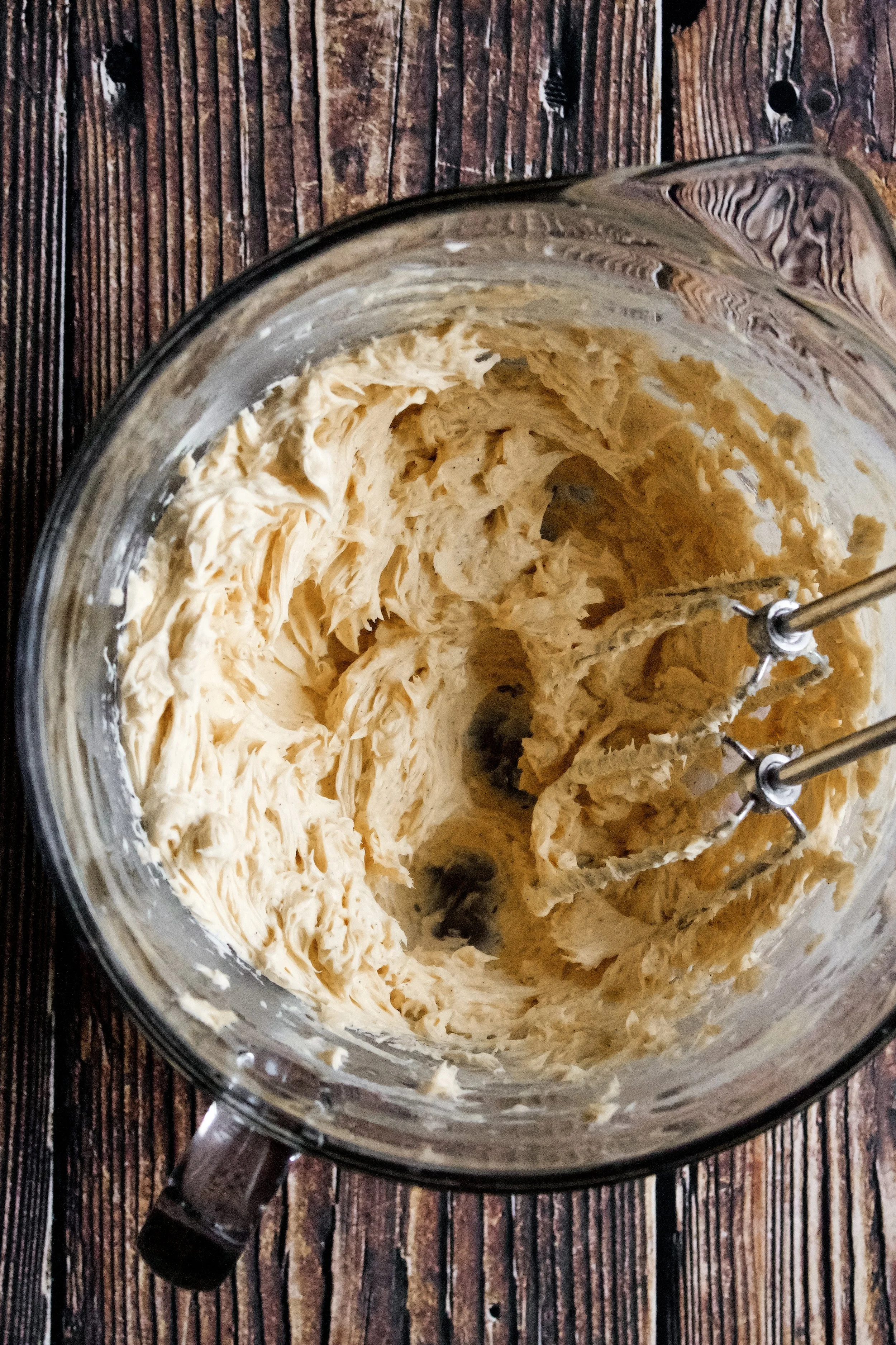1. Cream butter and powdered sugar. You don’t need to beat it for a long time, just make sure it’s well-combined and perfectly smooth.
